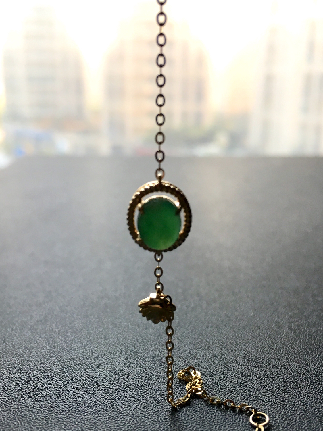 冰种阳绿翡翠蛋面手链18k黄金镶嵌