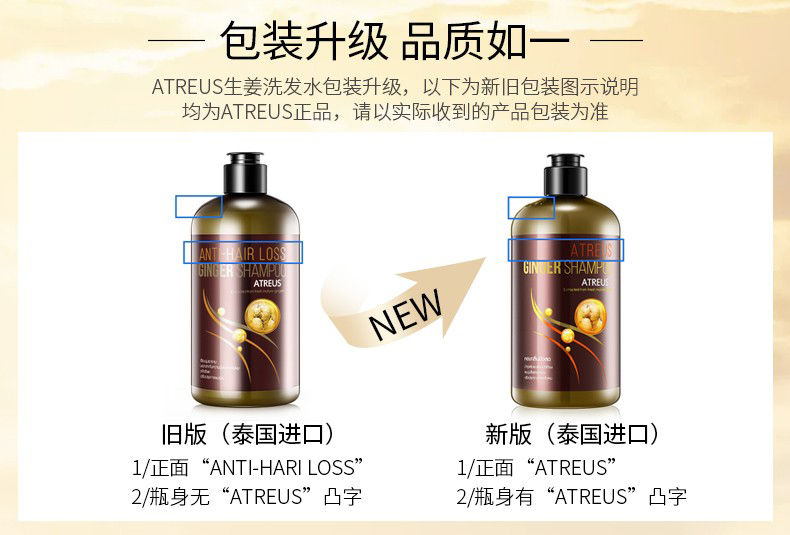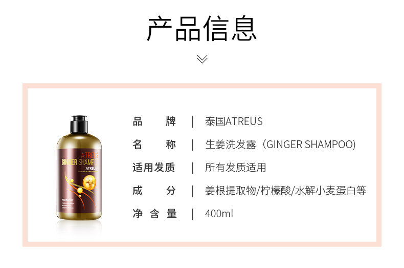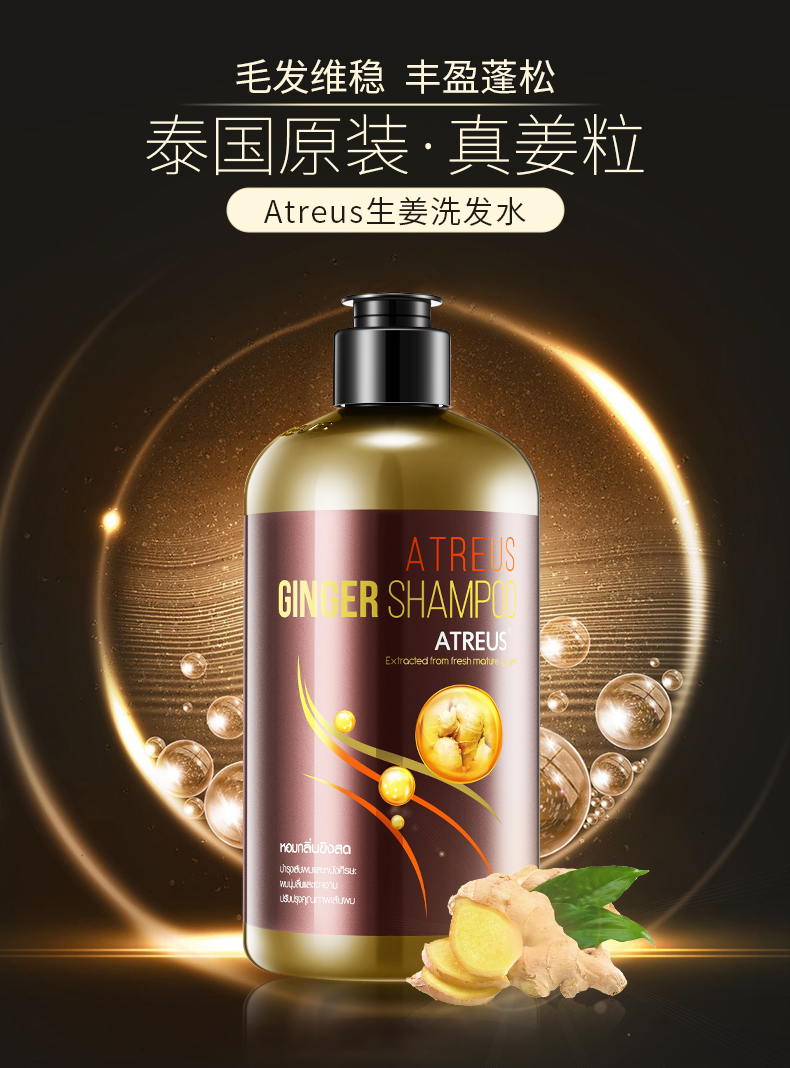 【新年特惠】一般贸易泰国进口ATREUS无硅油生姜洗发水去屑控油蓬松400ml 带防伪
