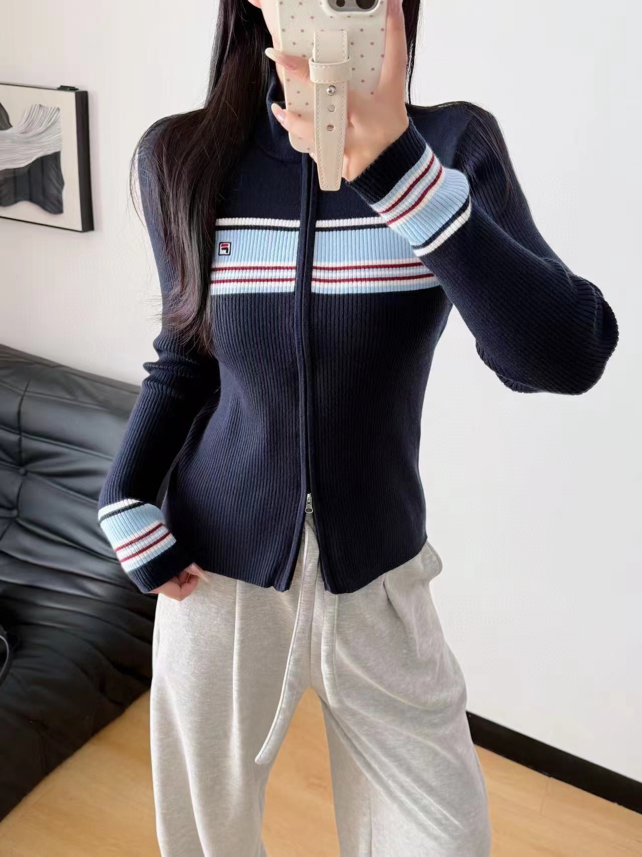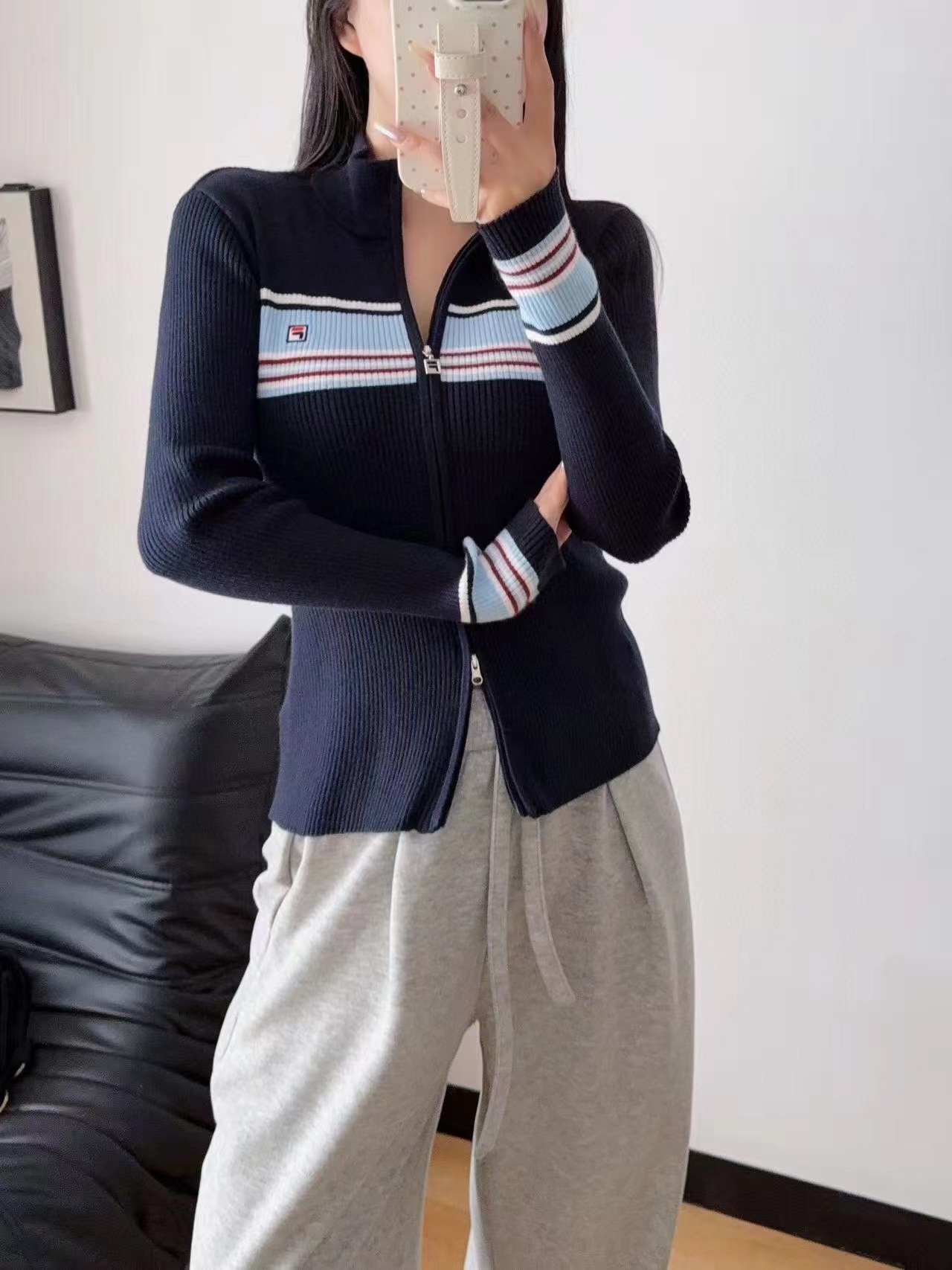 秋冬季新款女子修身拼色拉链开衫外套编织衫毛衣 ,修身小外套,炒鸡显身材,弹力很大,很显瘦的竖纹编织,双开头拉链设计,复古精典配色,巨百搭,不挑人不挑身材,软软糯糯上身超舒服,胸口和袖口撞色条纹设计点缀,更添活力。时尚运动风,轻松拿捏!无论日常出行还是旅游逛街,,一件解锁所有场合。姐妹们赶快入手吧,这个真的不需要犹豫,妥妥的自留款。强烈推荐