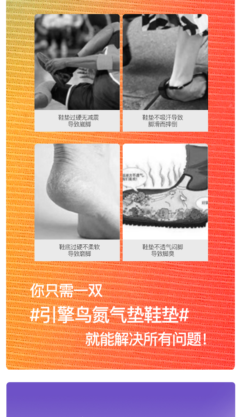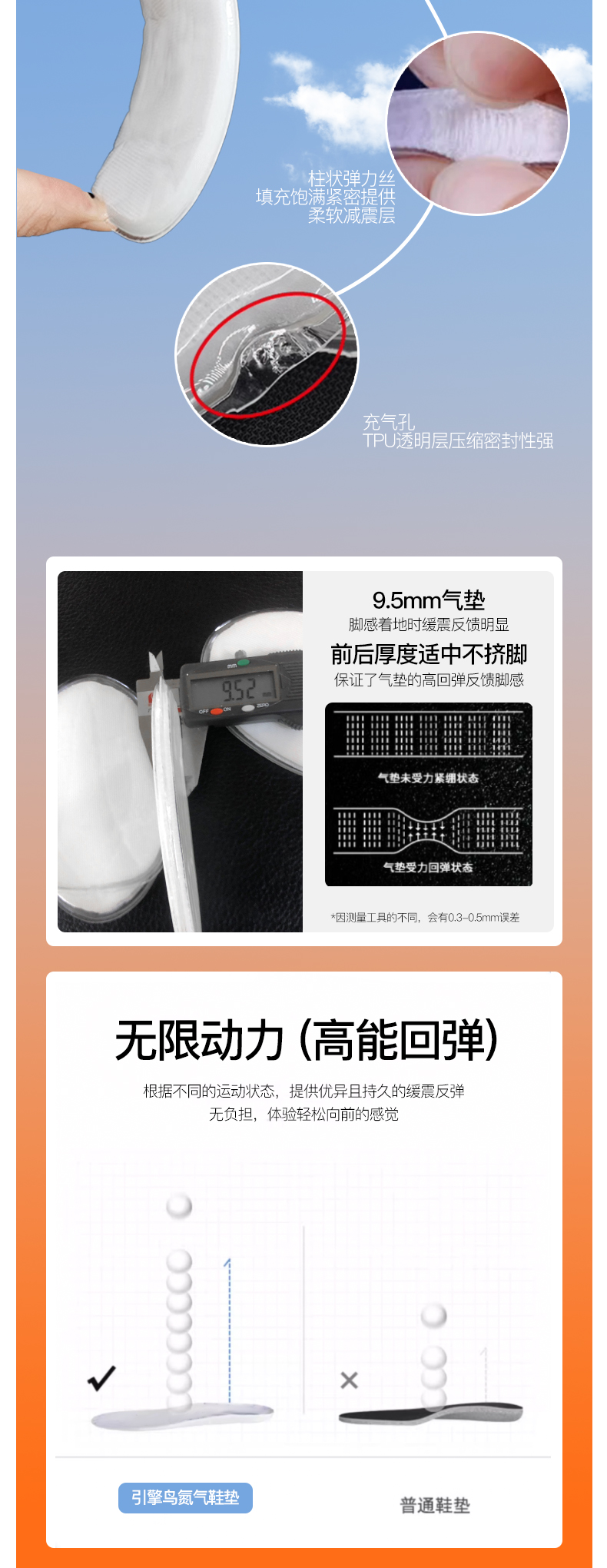 引擎鸟Q弹缓冲排湿蜂窝孔氮气垫鞋垫