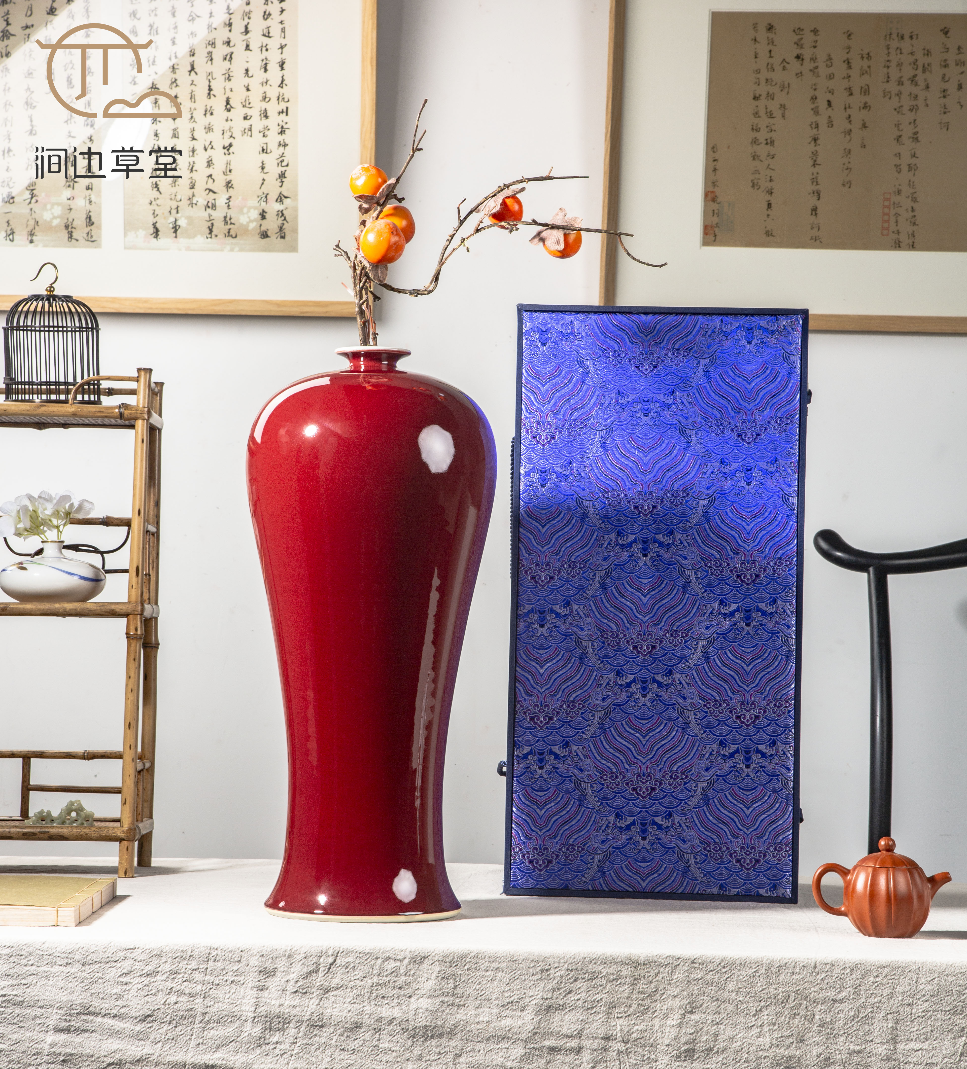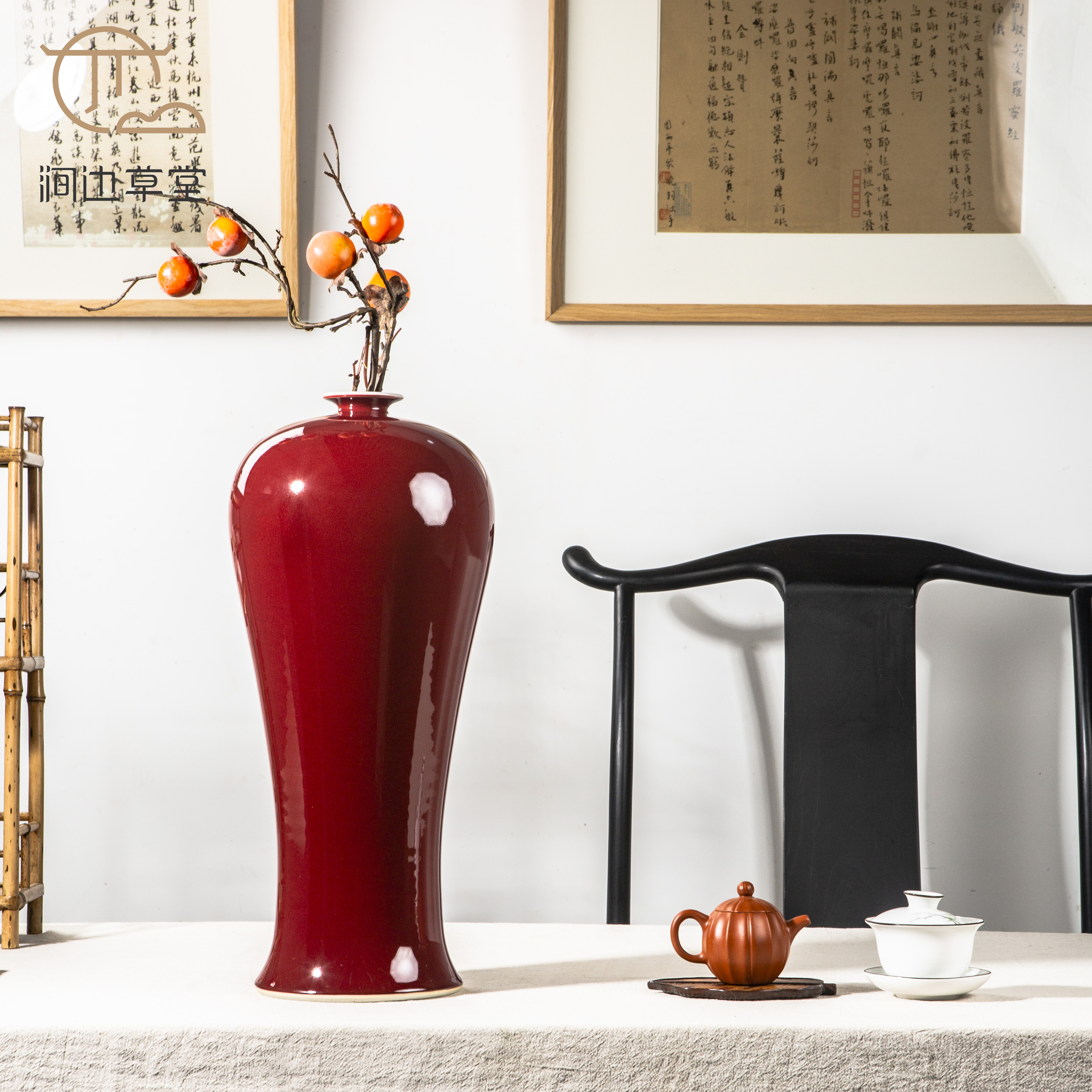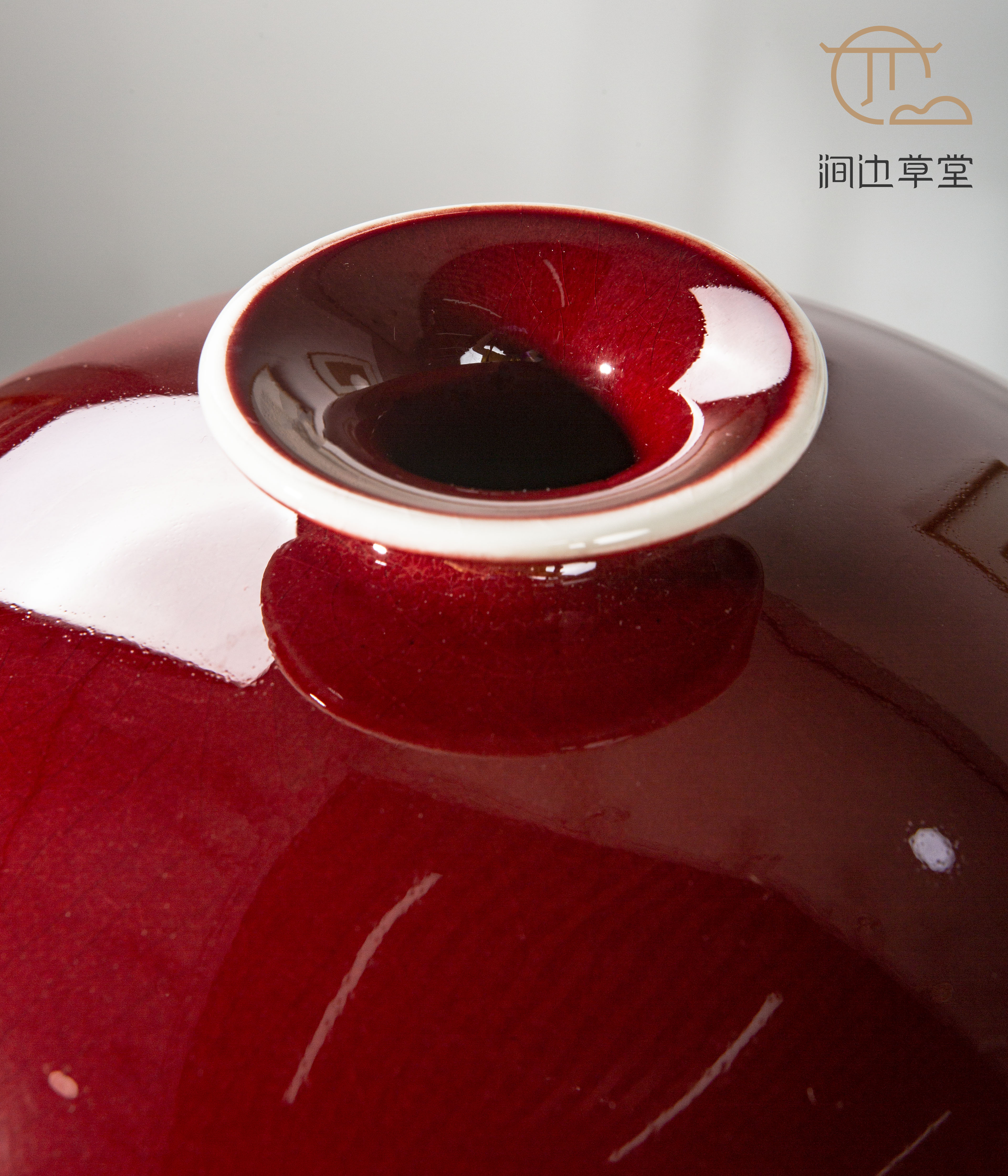 纯手工拉坯大尺寸祭红梅瓶,器型高雅端庄,釉色纯正,配有高档锦盒,祭红色在单色釉瓷器中是很难烧成的颜色,此梅瓶十分难得。