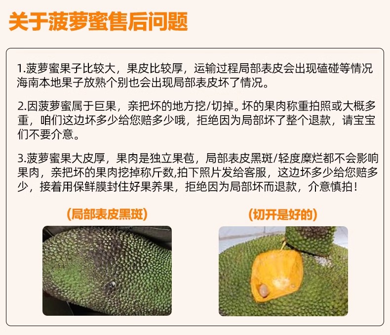 新鲜水果 菠萝蜜整个整果不切 1枚(单果重7.8~8.8斤)