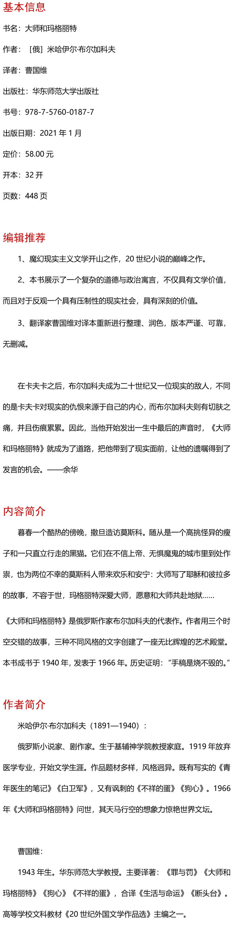 大师和玛格丽特 外国长篇小说 魔幻现实主义文学 正版 华东师范大学出版社