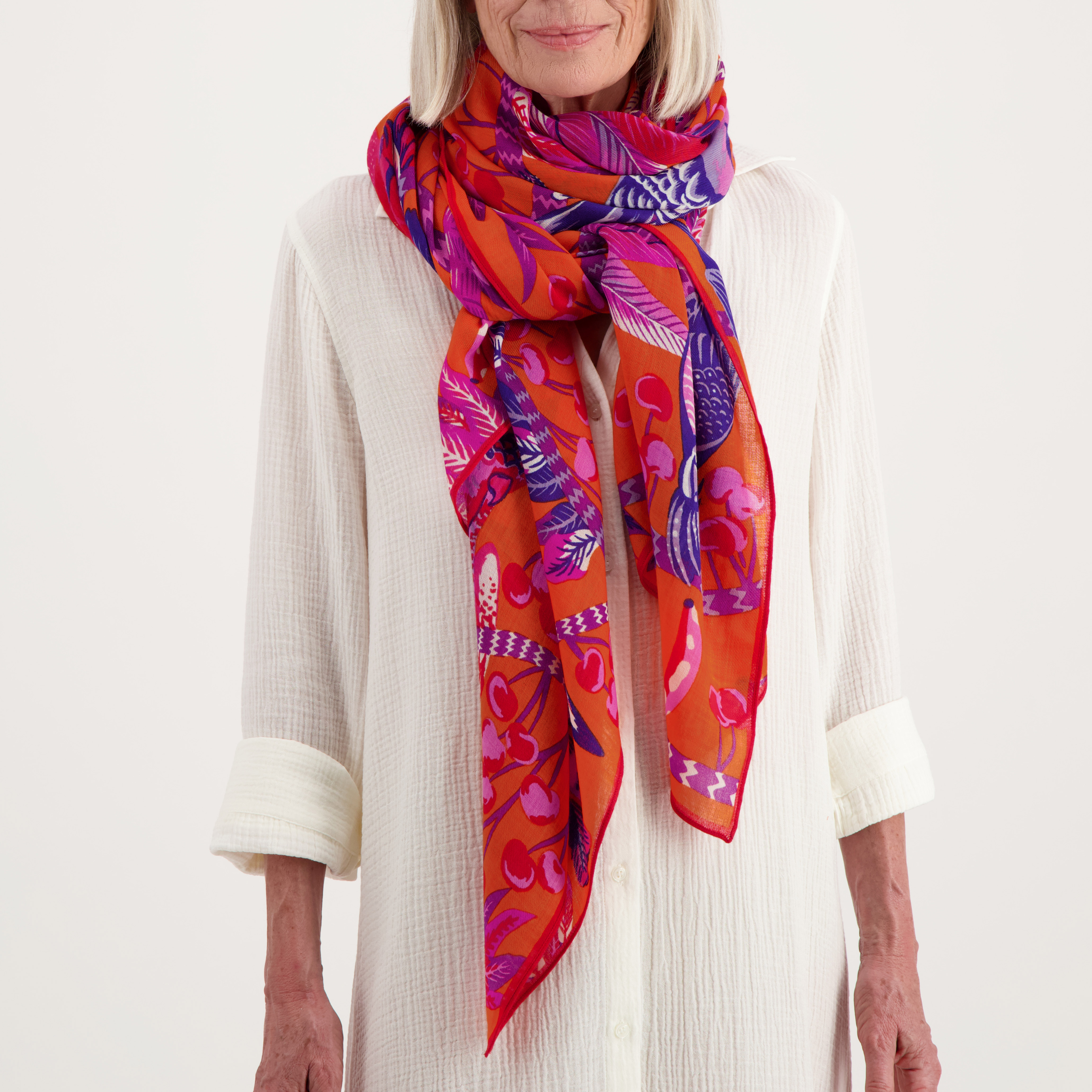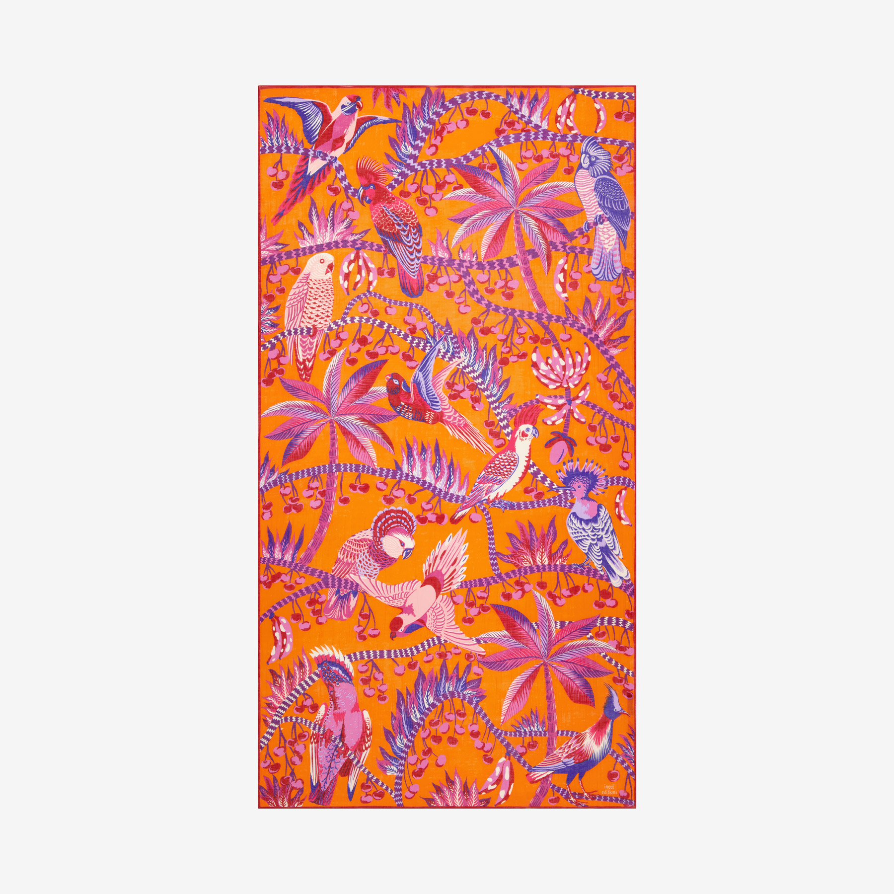 北京仓|Inoui Editions-Square 100 WOOL CERISE-橘色 鸟语丛林 方巾[法国设计师]