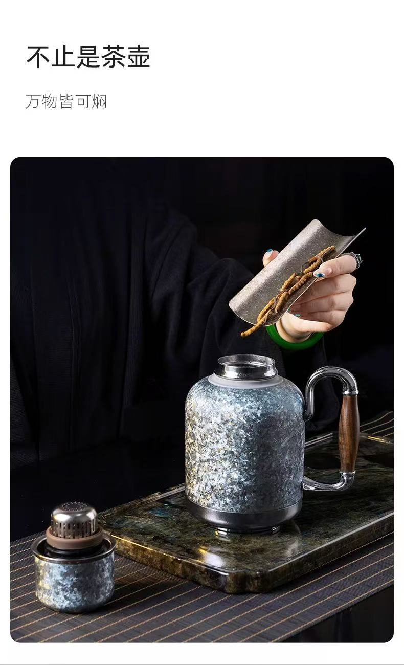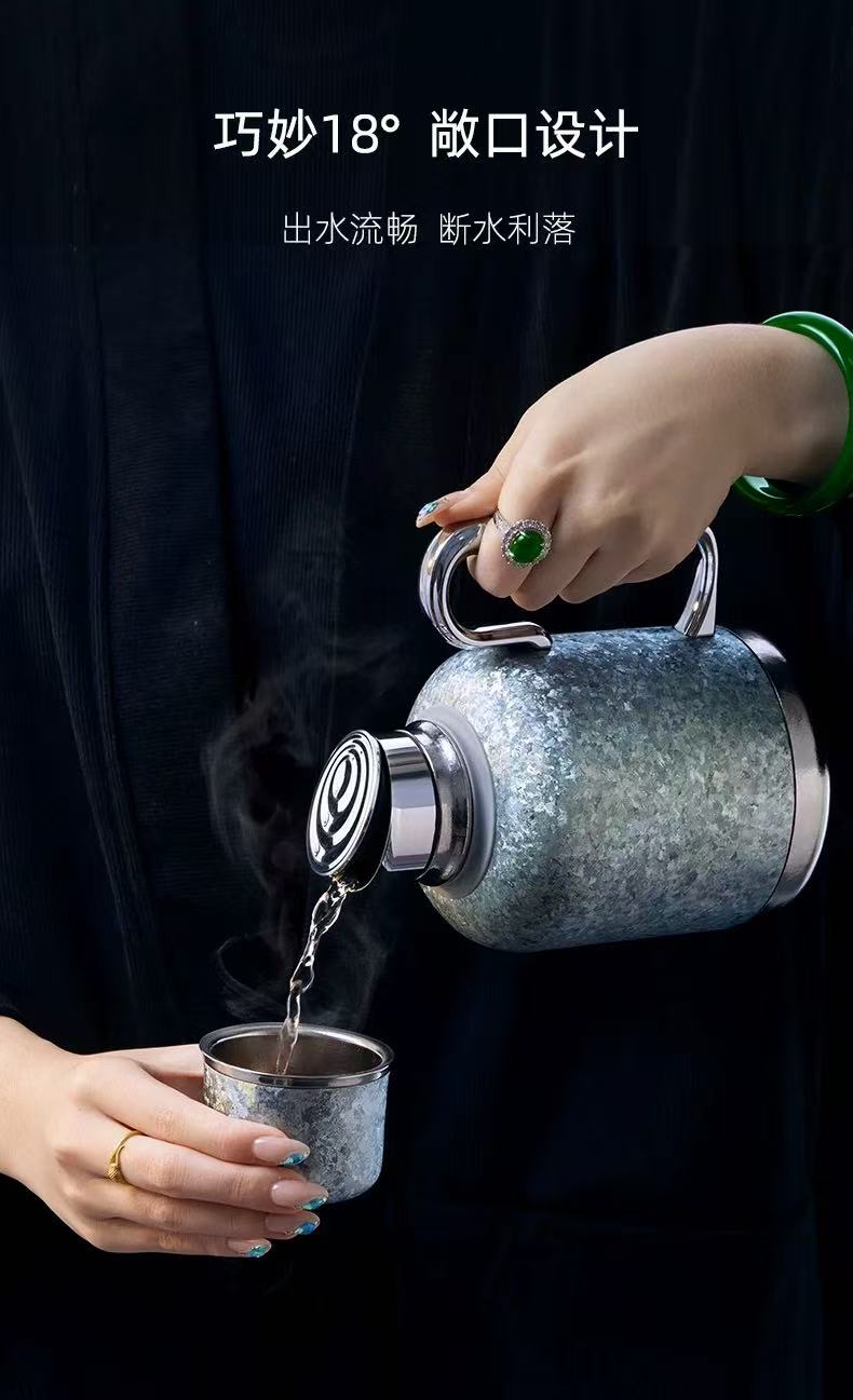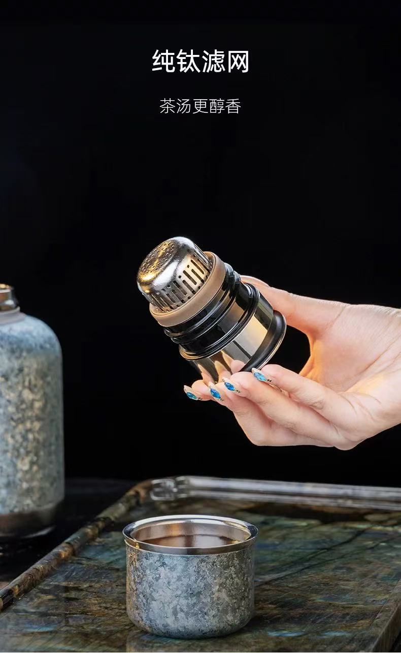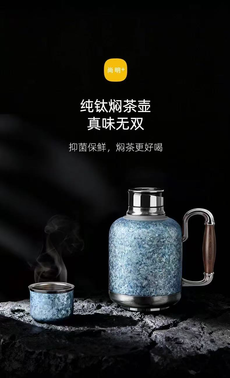 尚明纯钛保温热水壶新款茶水分离家用户外便携老白茶焖茶壶~