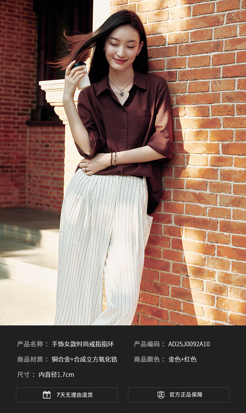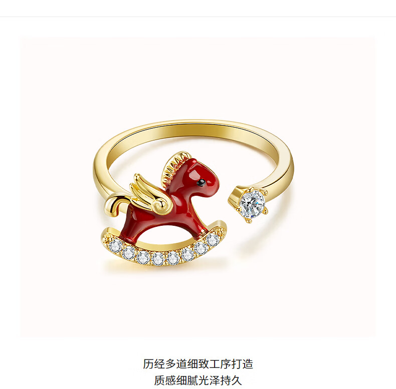 AJIDOU阿吉豆戒指女款金色小马指环尾戒AD25J0092A10【预售:9号以后发货】