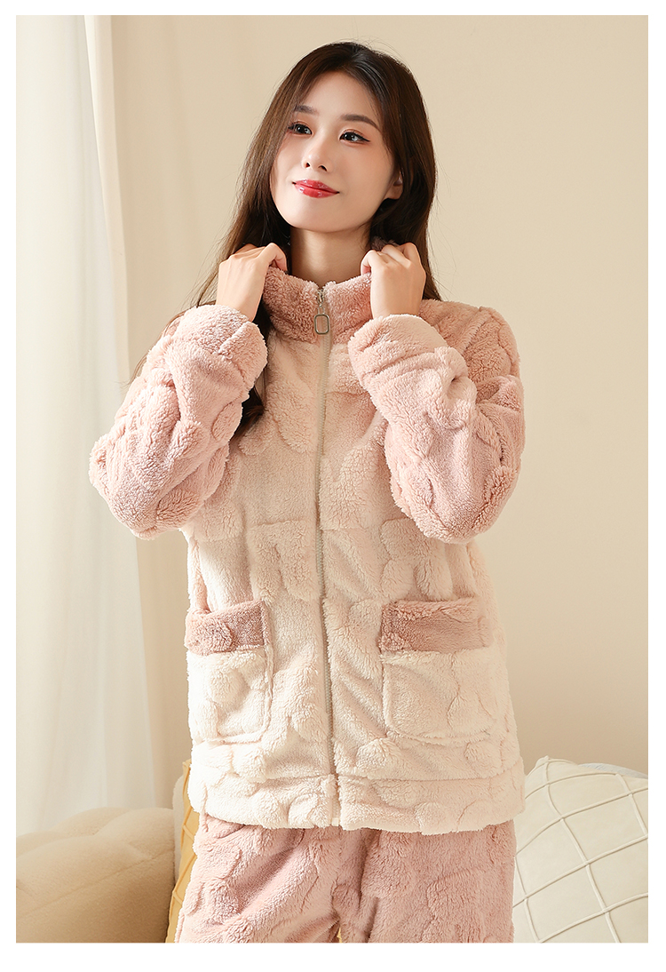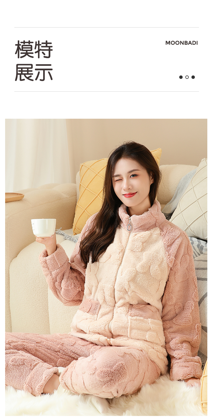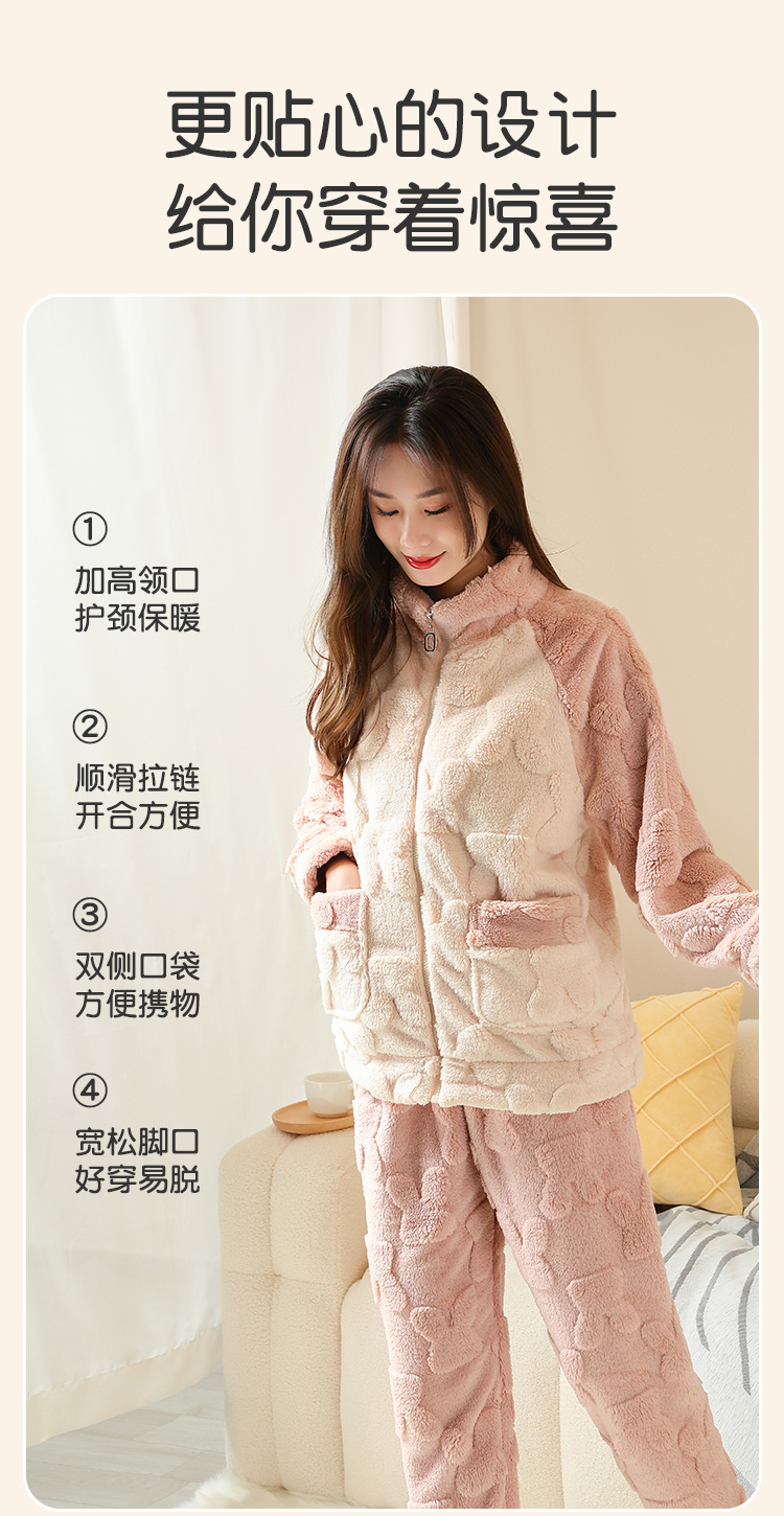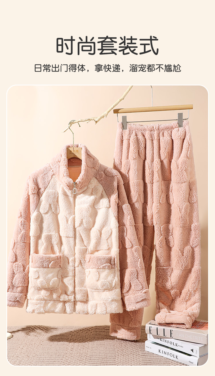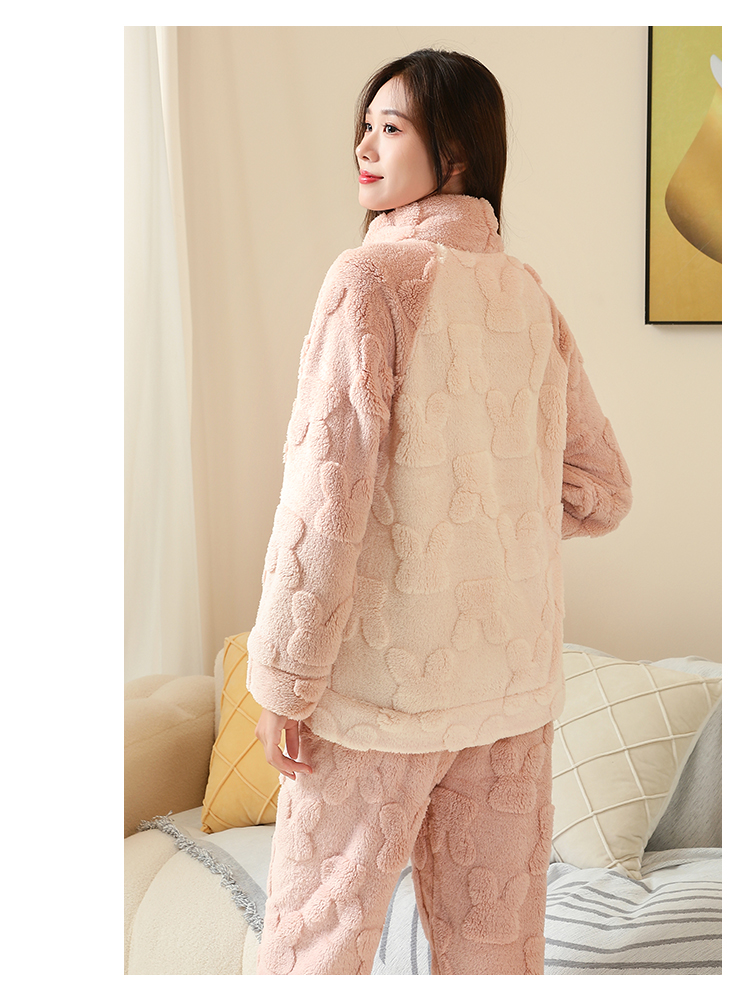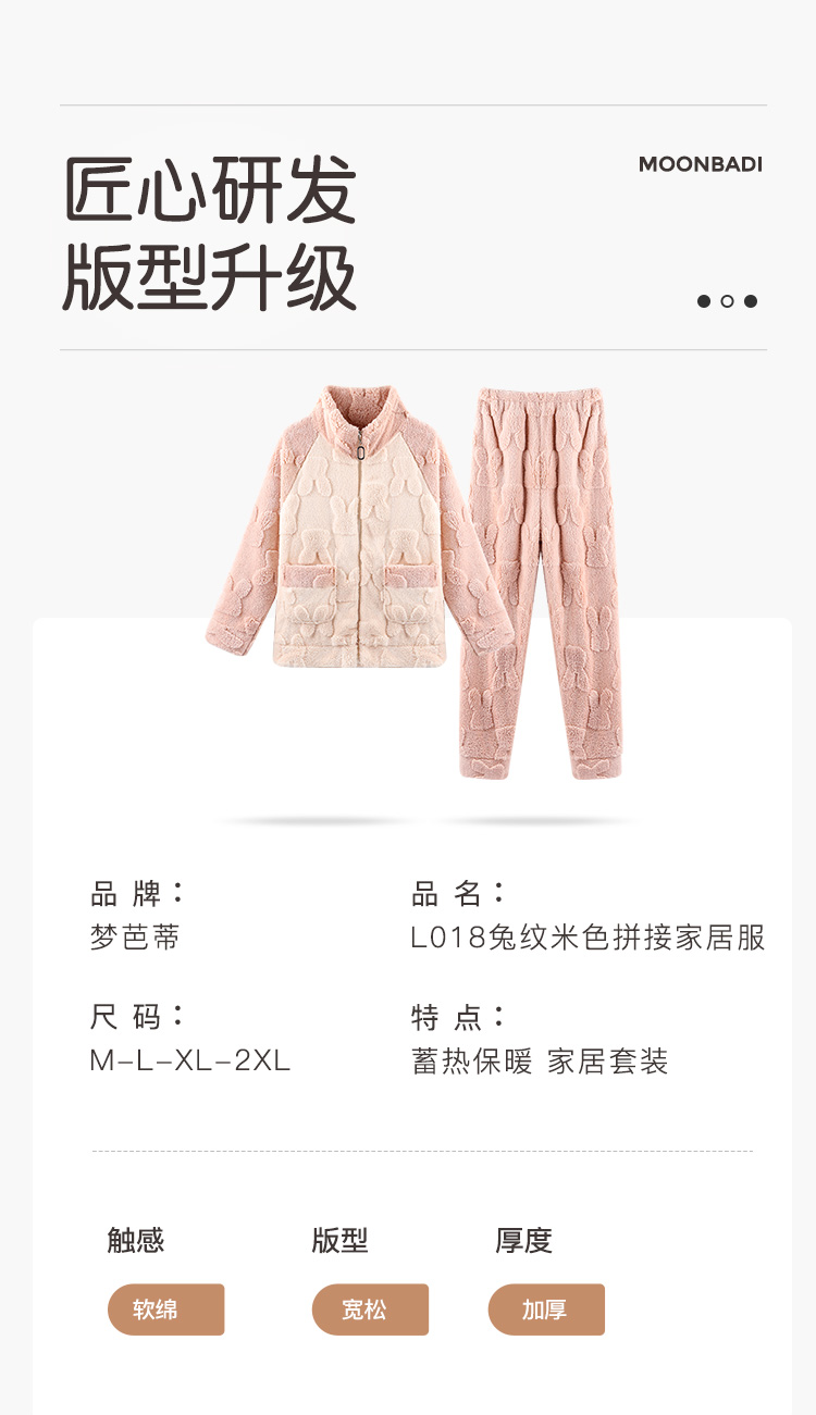 【加绒加厚 半高领】时尚休闲珊瑚绒家居服女套装宽松舒适可外穿兔纹米色拼接家居服
