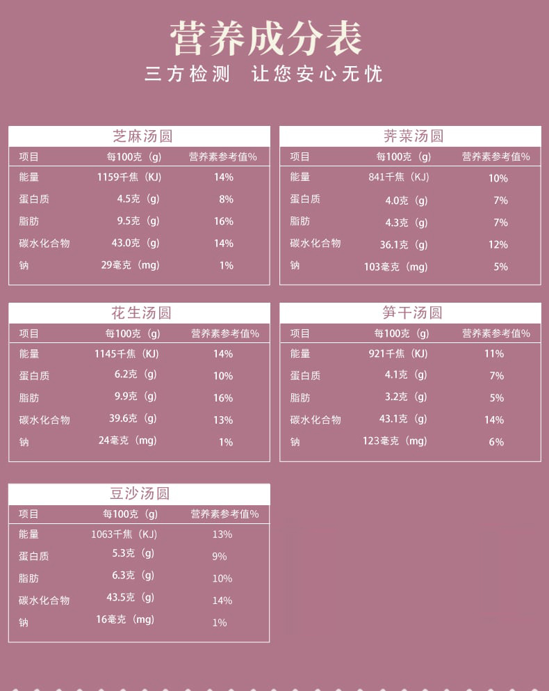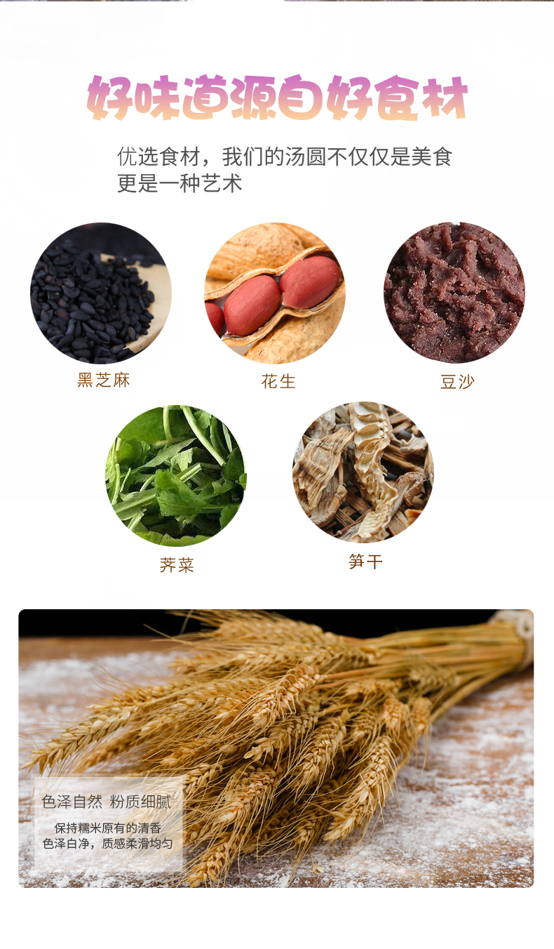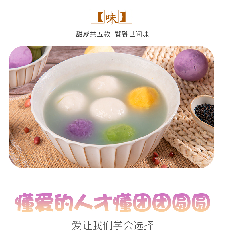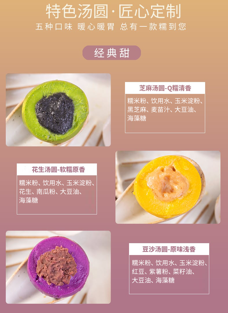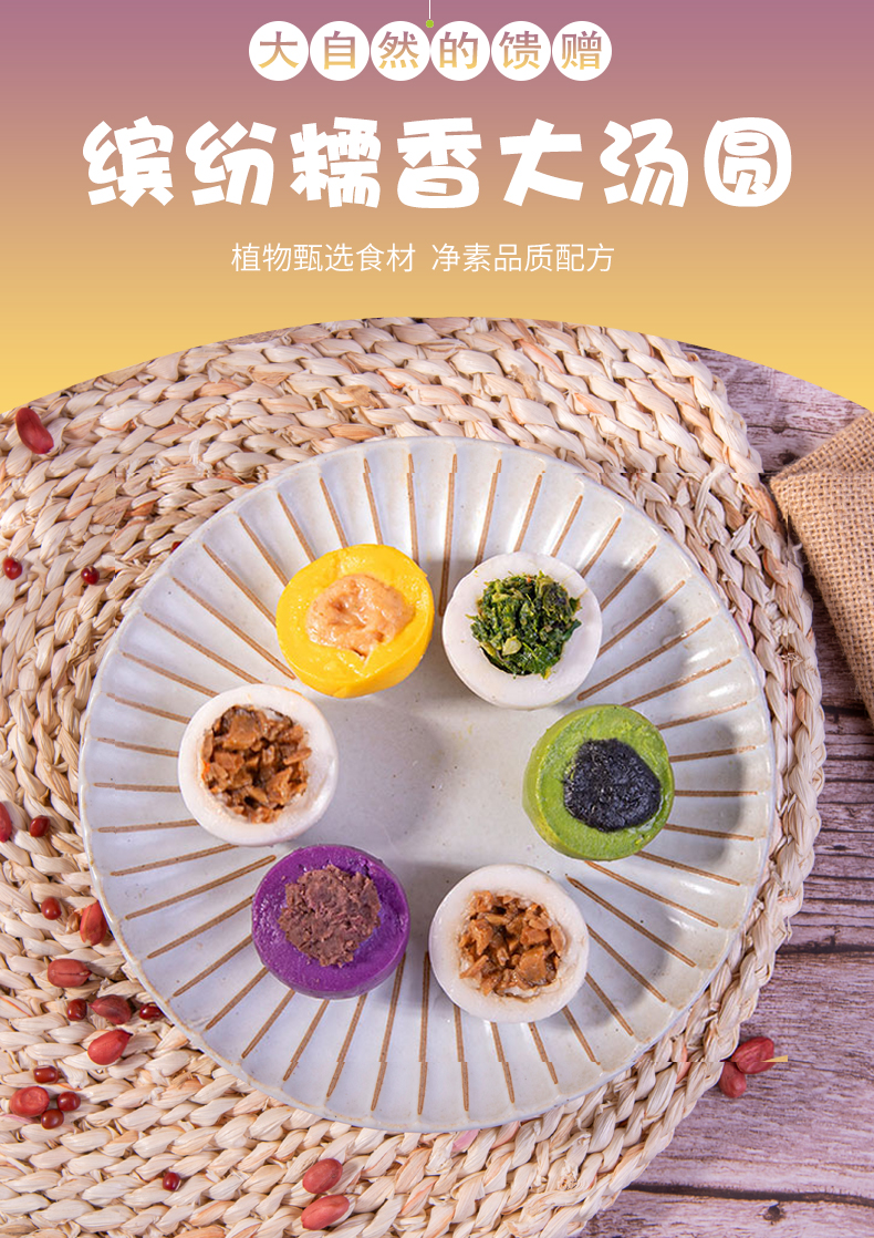 素食特色大汤圆 净素配方 芝麻 花生 豆沙 荠菜 笋干五种口味
