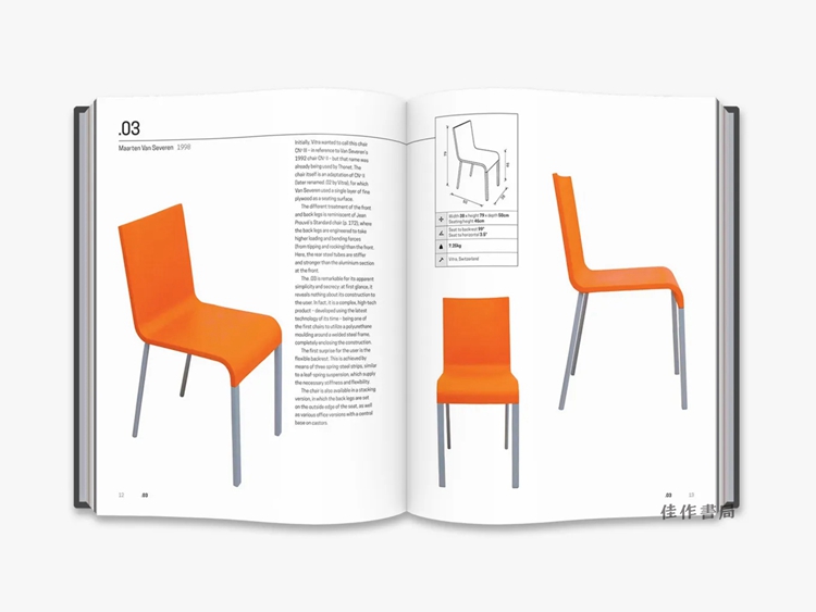 Chair Anatomy reveals in photos and illustrations the form and the construction details – the anatomy – of a selection of fifty chairs chosen from the last 150 years of modern chair design. It also introduces the designers behind these chairs, their backgrounds and their routes to creating the chairs. In reducing chairs to their constituent parts, the book gets to the heart of each design: how pieces are designed and produced to fit together; why a certain material imparts a certain quality, functional advance or comfort level; and how the chair’s structure can withstand stress while being elegant and economical to produce. In short, a chair is architecture in miniature.