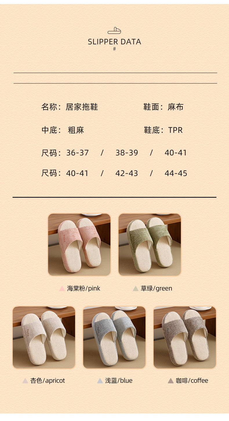 【品名】【超值2双装】窠窠良品 keke -muji风 木质感居家外穿 静音透气 棉麻拖鞋 【规格】海棠粉、草绿色、杏色、咖啡色、浅蓝色 【产地】国内 【发货包装】独立包装 【发货地】浙江 【发货快递】中通、韵达随机发 【不发货区域】新疆、西藏、港澳台 【发货时效】48-72小时,周末节假日顺延 |