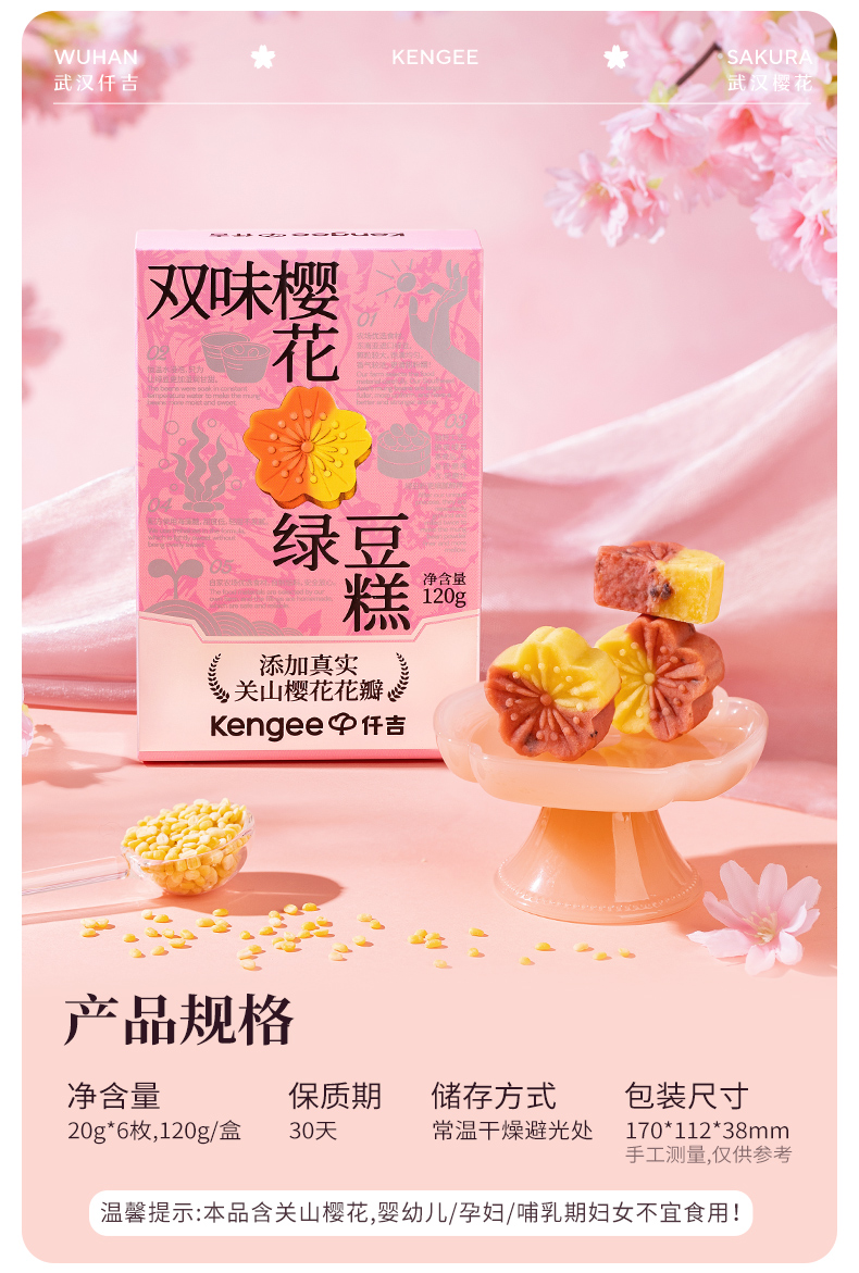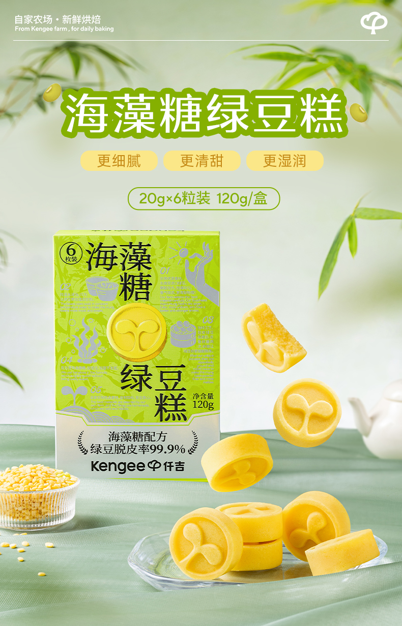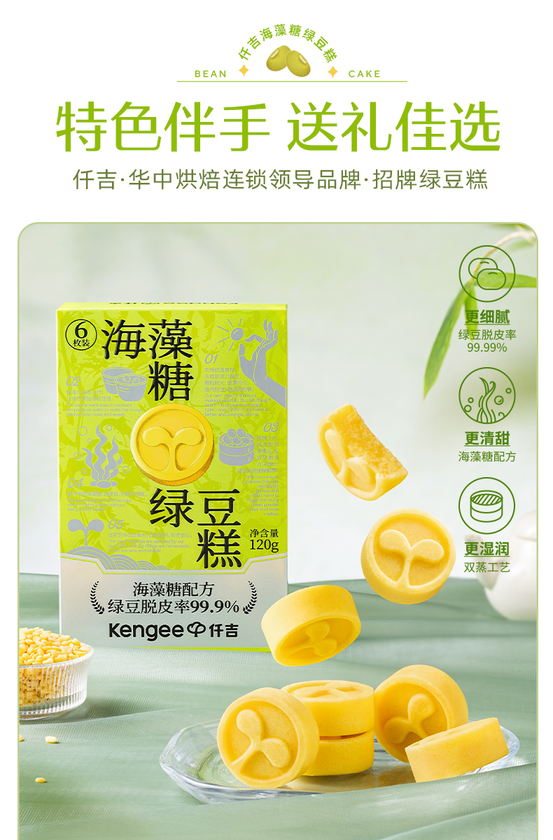 【全新升级】仟吉 海藻糖绿豆糕 120g/盒 常温储存