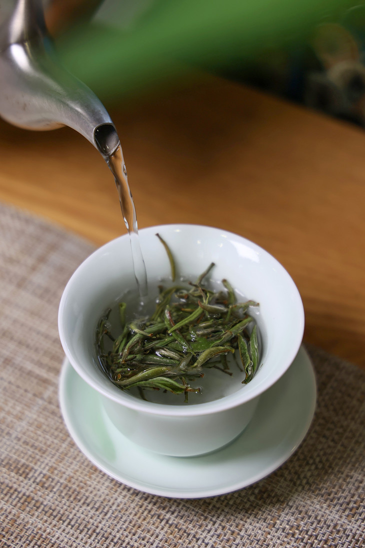 汤色:沸水冲泡,第一泡即汤色透亮,白毫游动