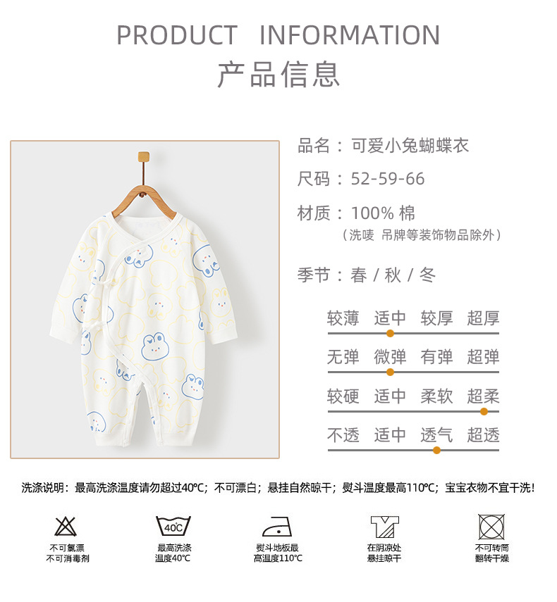 【新生儿全棉舒柔蝴蝶衣】春秋宝宝连体衣纯棉a类衣服宝宝和尚服系带婴儿哈衣