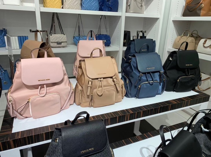 MK大号Abbey尼龙拼皮翻盖抽绳降落伞双肩包,牛皮+尼龙。尺寸:约38cm*36cm*14cm,大号容量超实用