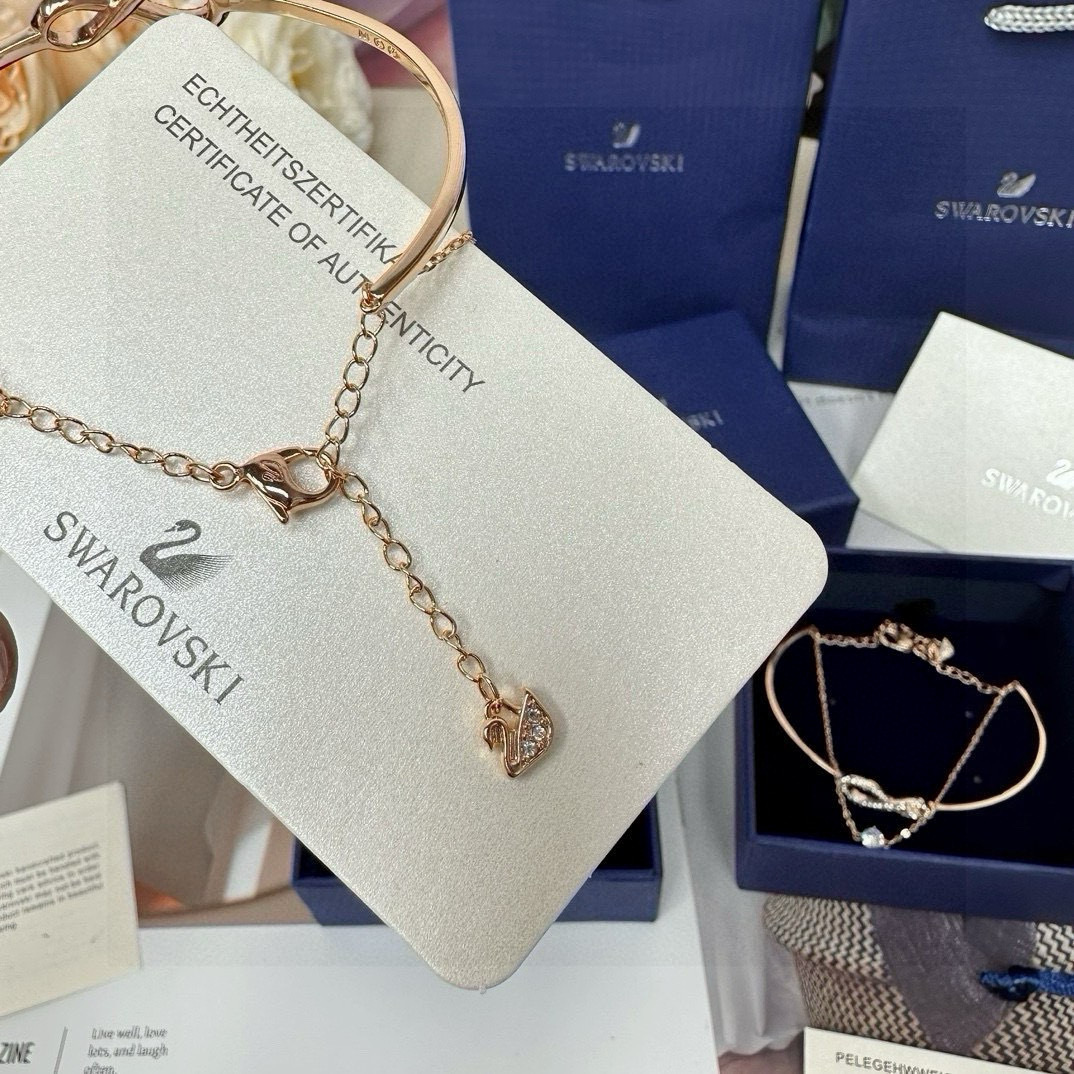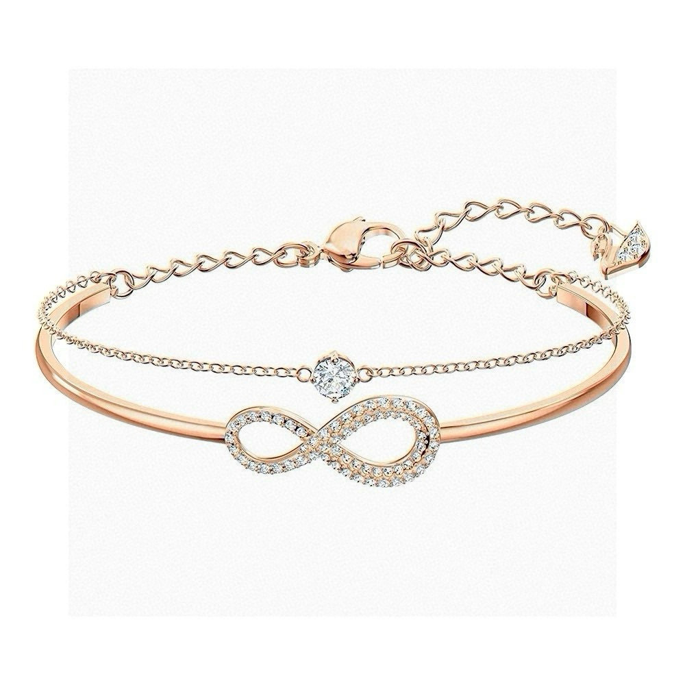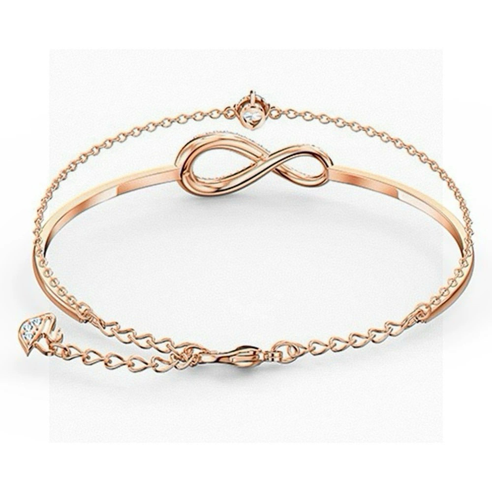 施华洛世奇永恒爱意8字手镯礼物 施华洛世奇王一博同款手镯永恒爱意 层搭设计手镯 饰有「无尽」符号的装饰,寓意爱的延续与成长,承托了对唯美爱情的期许;层搭设计,增添腕间浪漫摩登气息。配专柜全套包装 佩戴注意事项说明:施华洛世奇材质为合金镀铑(一种稀有贵金属),洗澡需要摘下,出汗及时擦干等