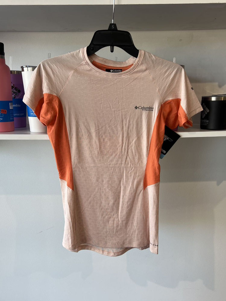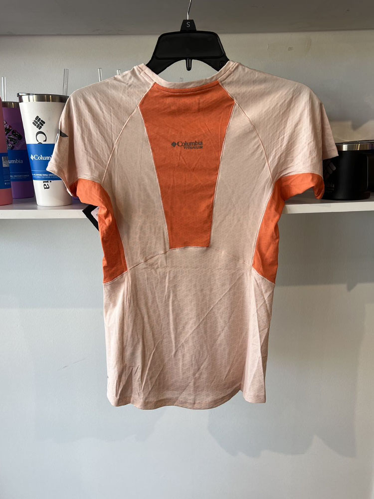 Columbia/哥伦比亚 钛金系列 女士降温吸湿速干休闲运动短袖T恤品牌:Columbia/哥伦比亚采购地:美国配件:仅吊牌尺码 胸围 衣长S 39 59M 41 60L 46 63AK1804-890粉橘
