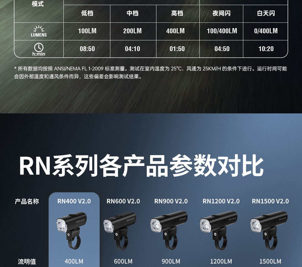 迈极炫RN400自行车灯车前灯骑行装备充电强光单车夜骑山地车灯
