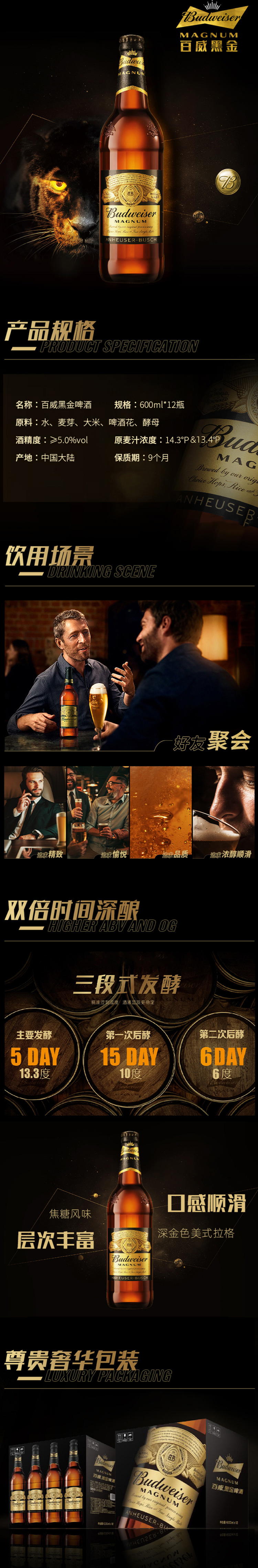 百威黑金高度啤酒 5.0%vol 600ml*12瓶