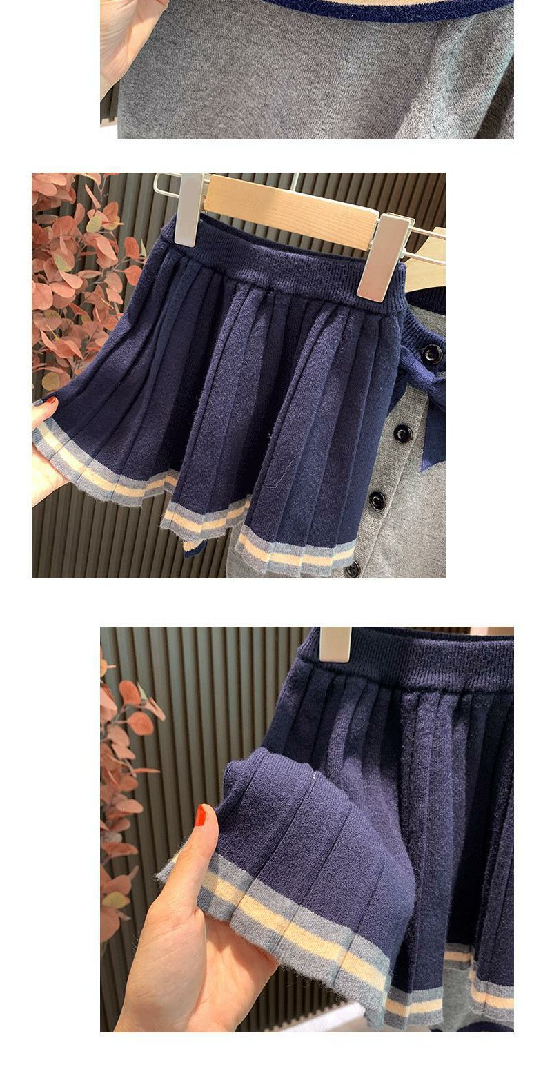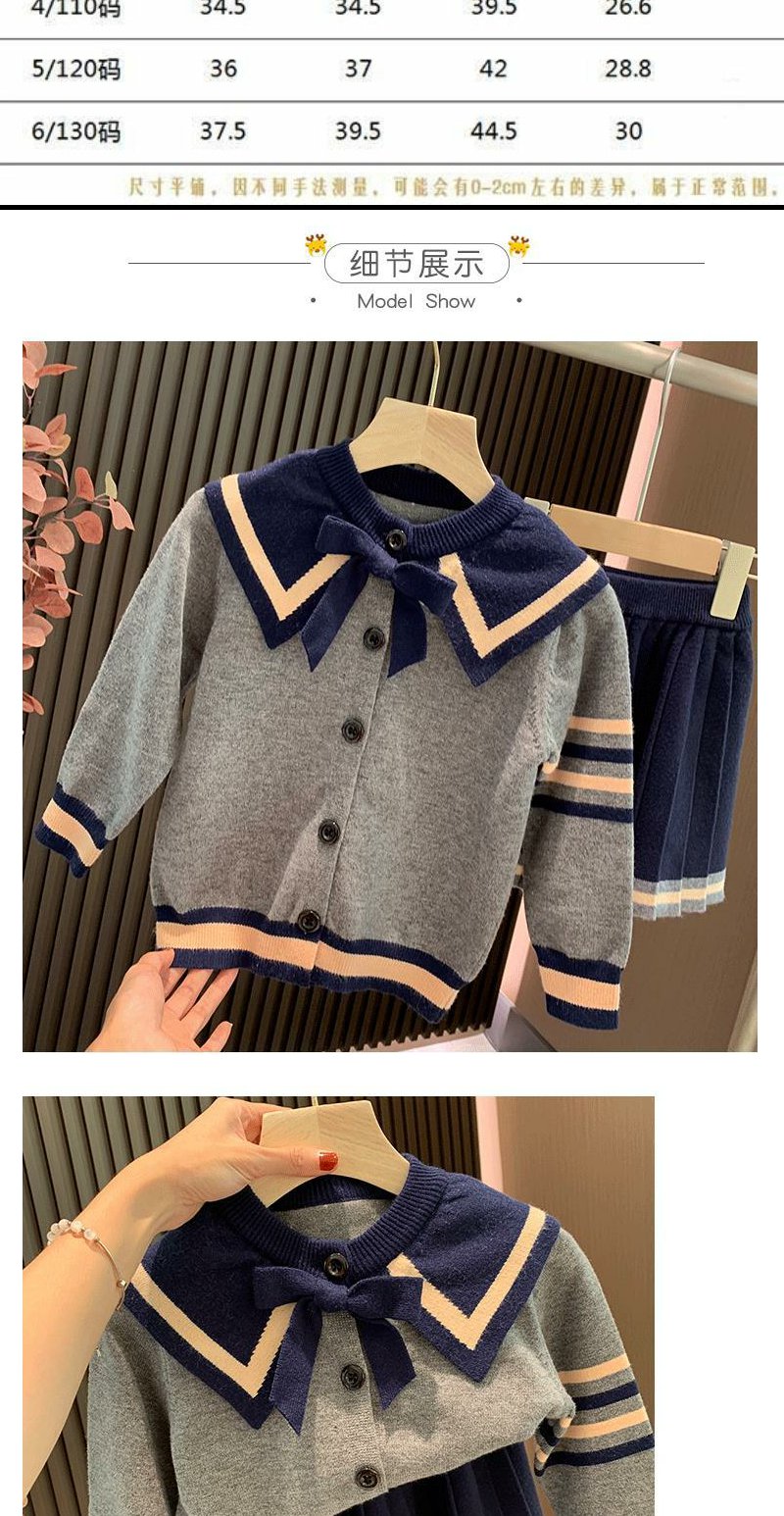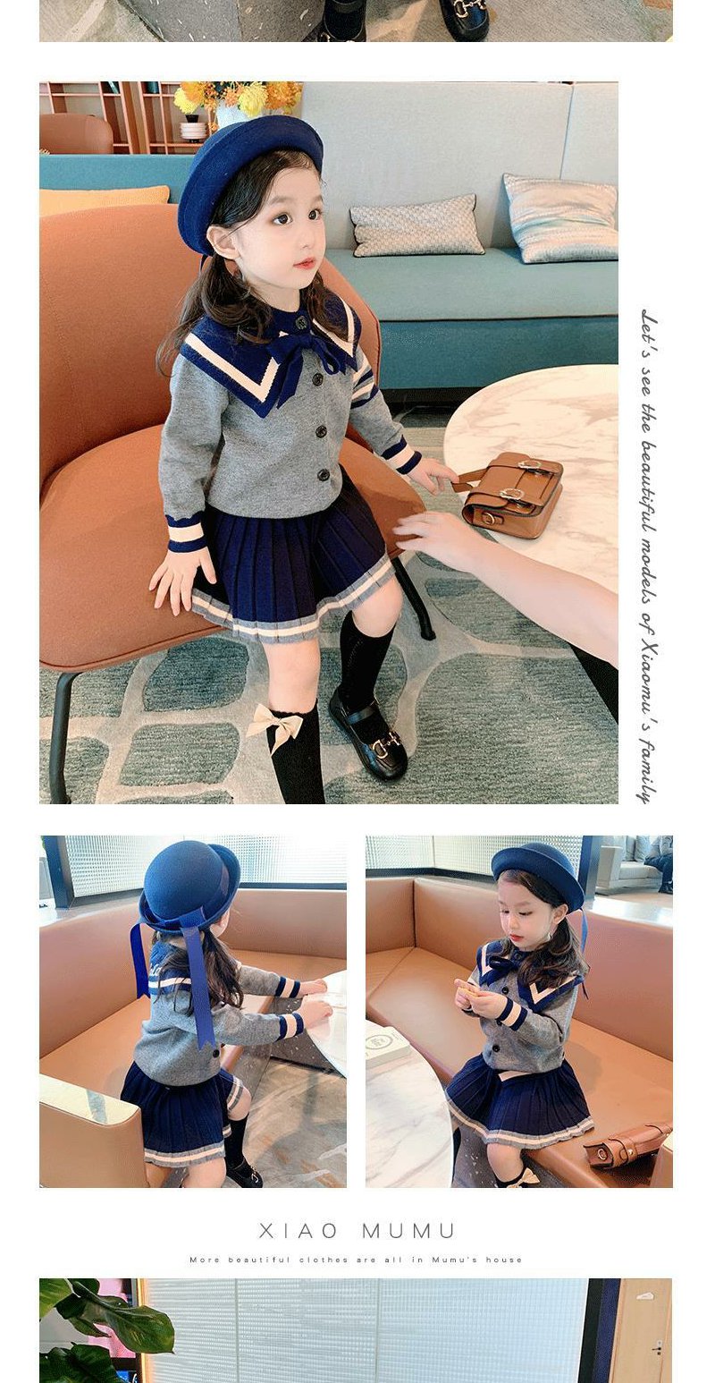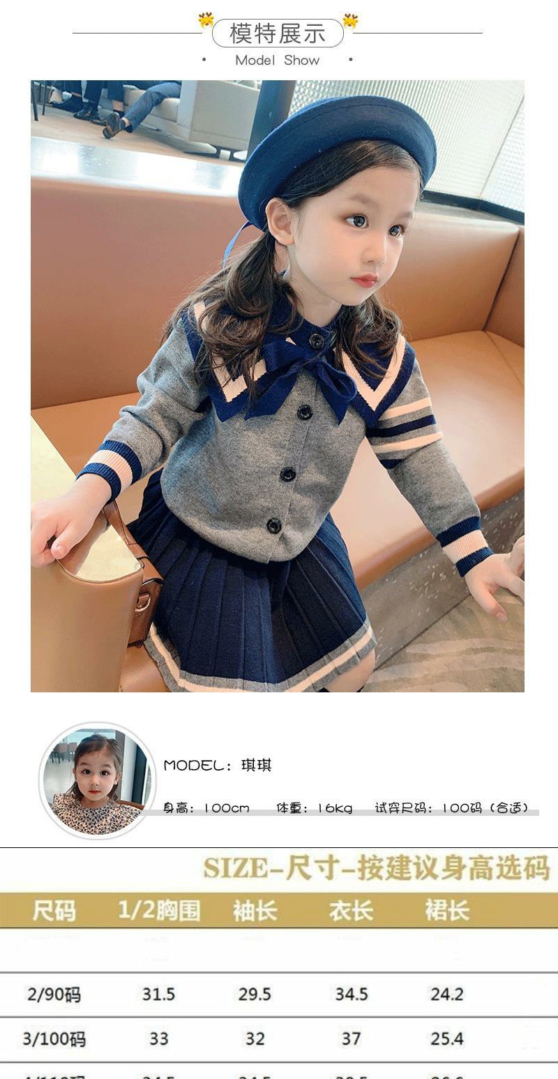 童装女童春装套装2022新款儿童学院风针织衫上衣毛衣半身裙两件套