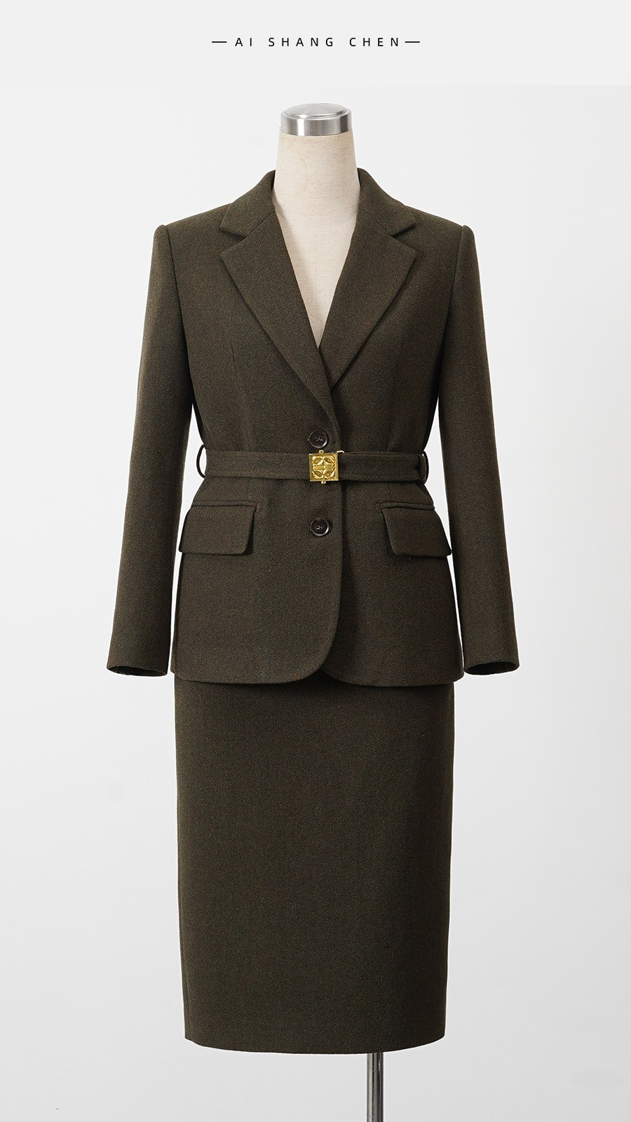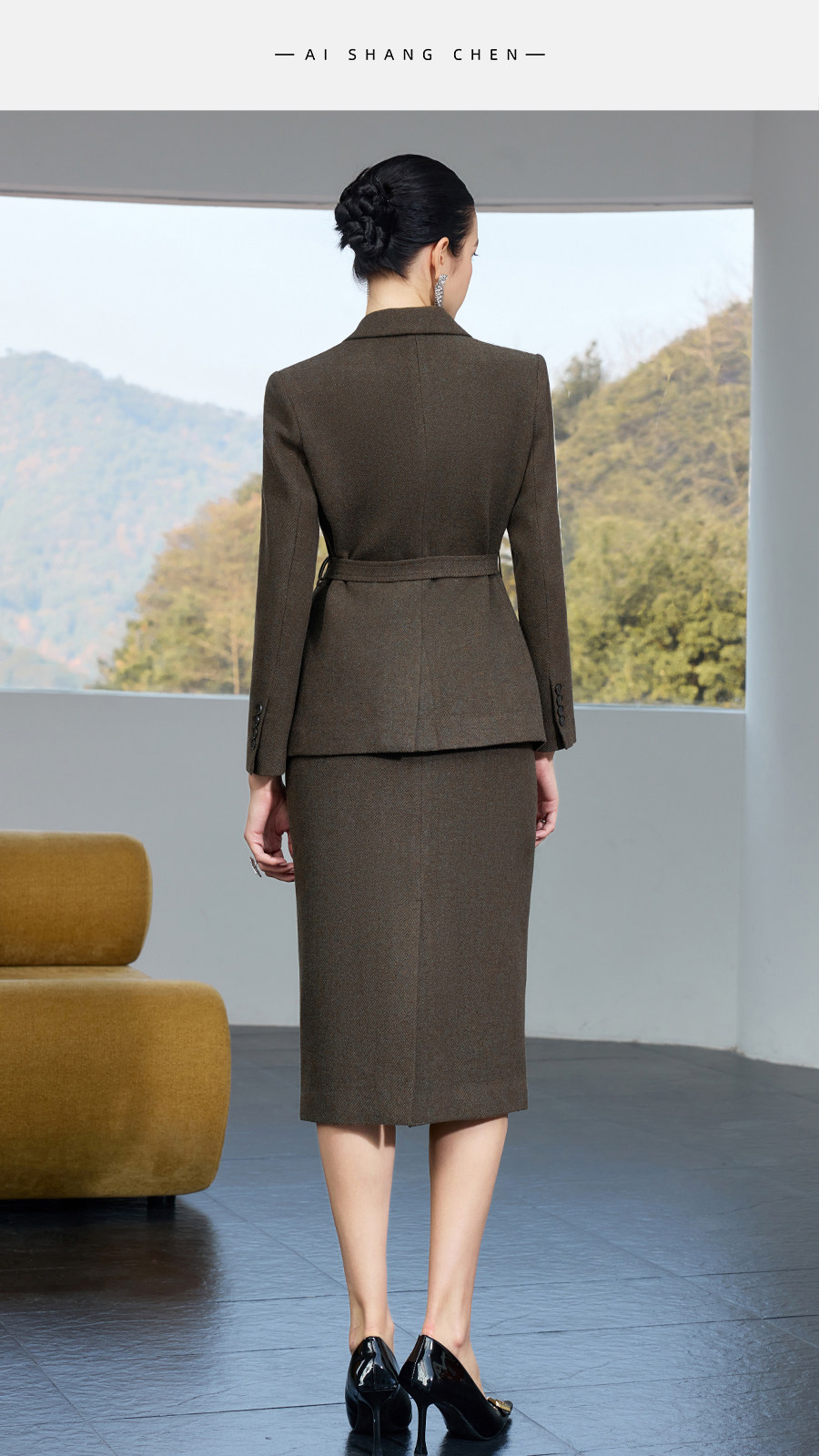艾尚臣商务风显白提气色通勤战衣女羊毛西装套装女秋冬性感职业装
