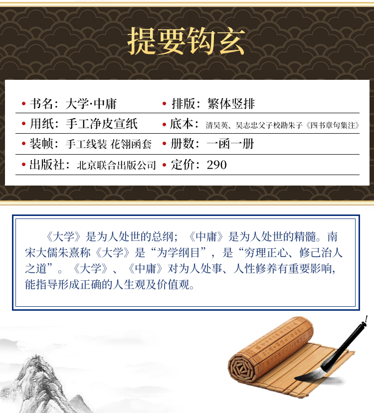 【崇贤馆藏书】《大学·中庸》 手工宣纸线装繁体竖排书(全一册)