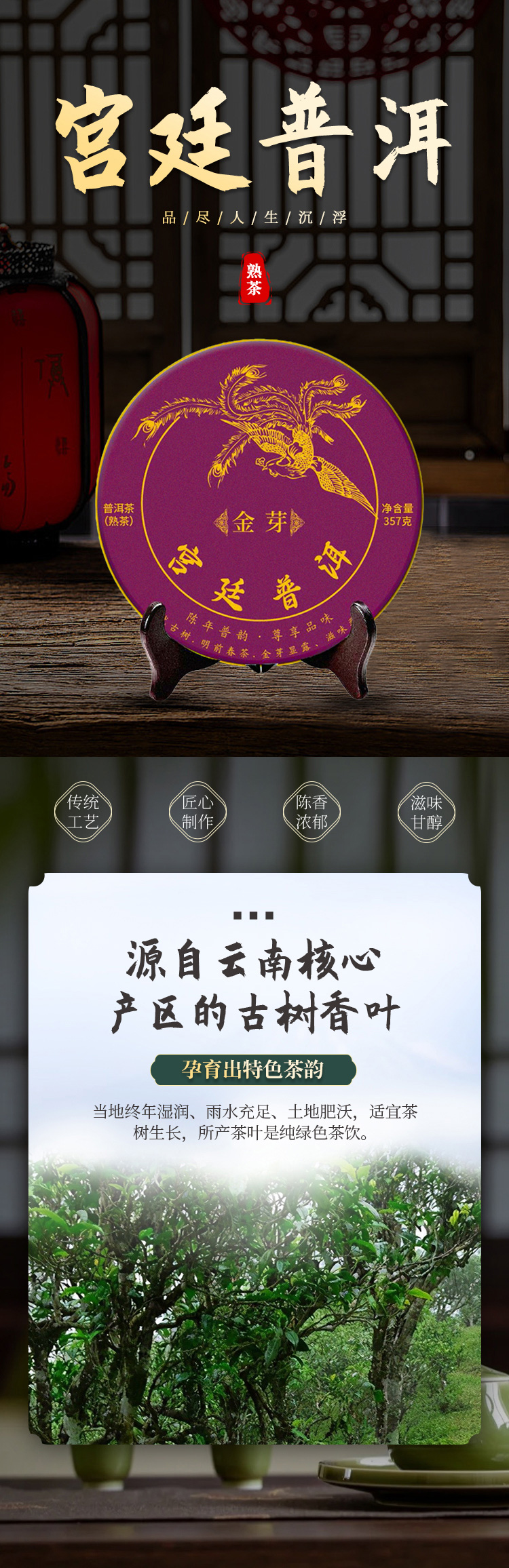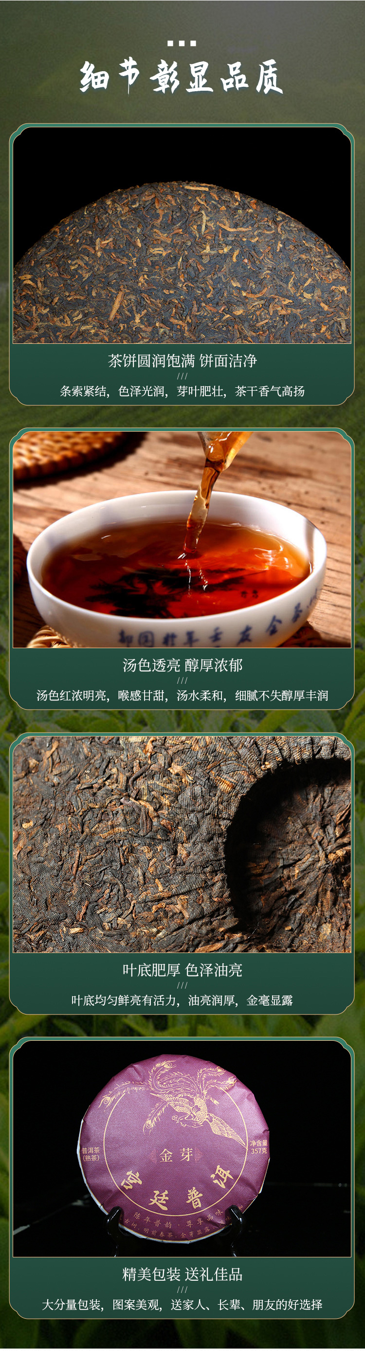 吉顺号2019年宫廷金芽普洱茶叶熟茶饼357克/饼