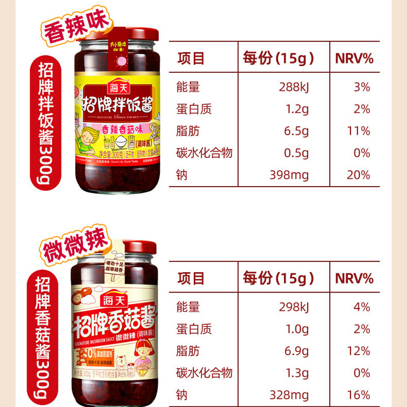 海天招牌拌饭酱300g香辣香菇拌饭拌面夹馍下饭菜酱料