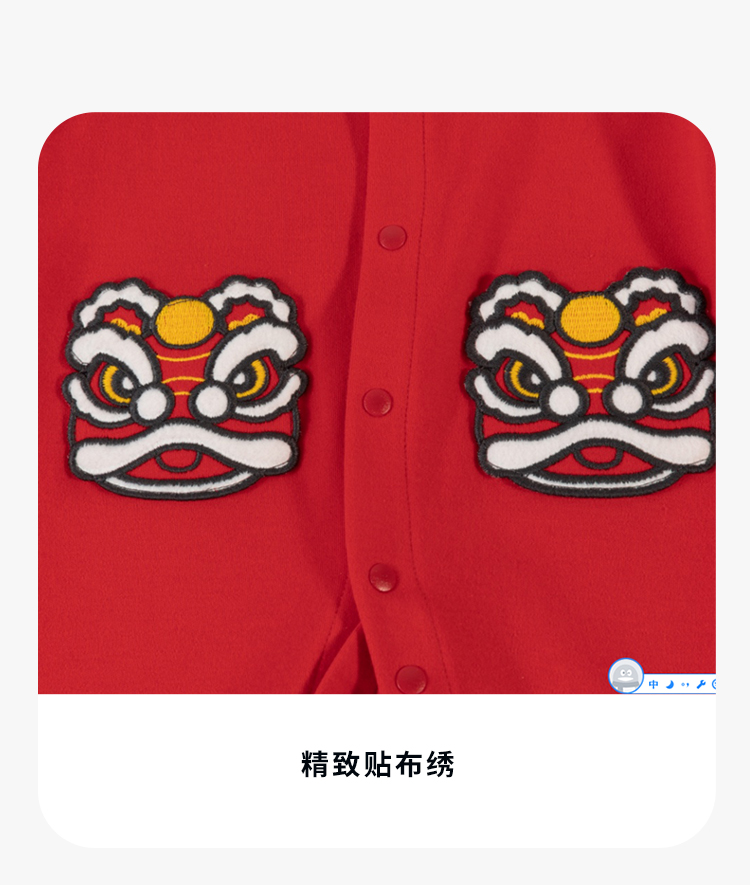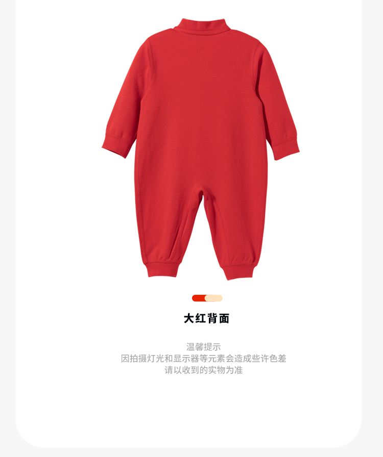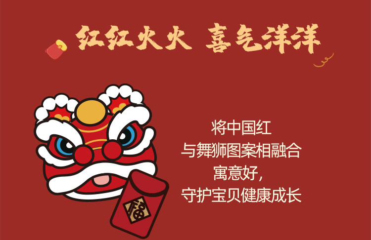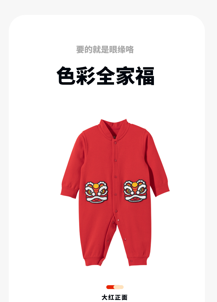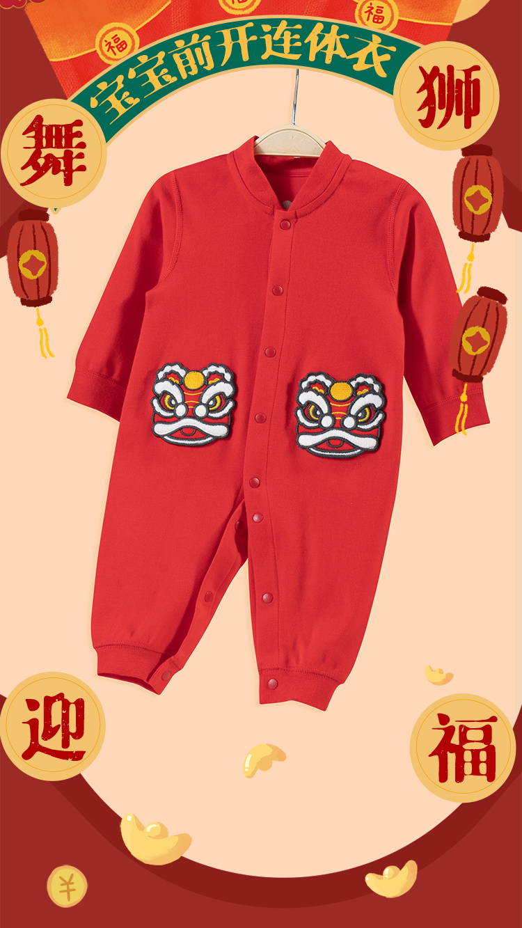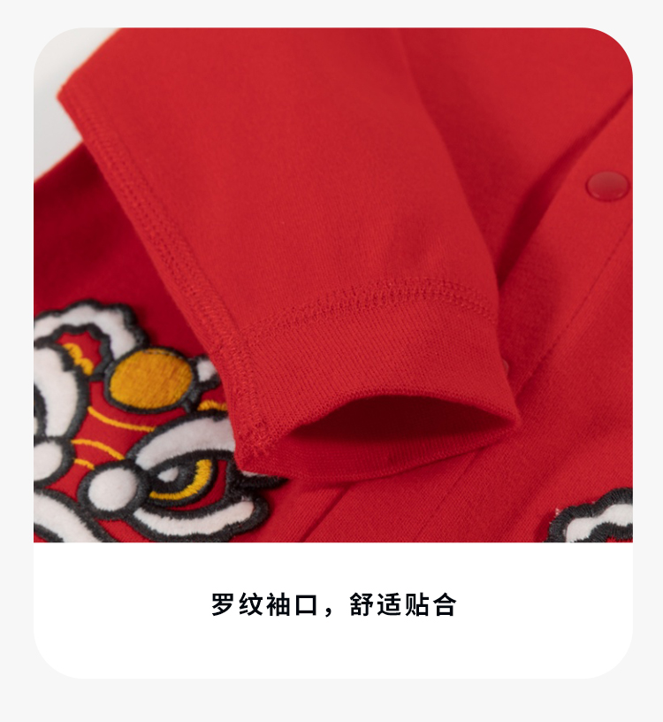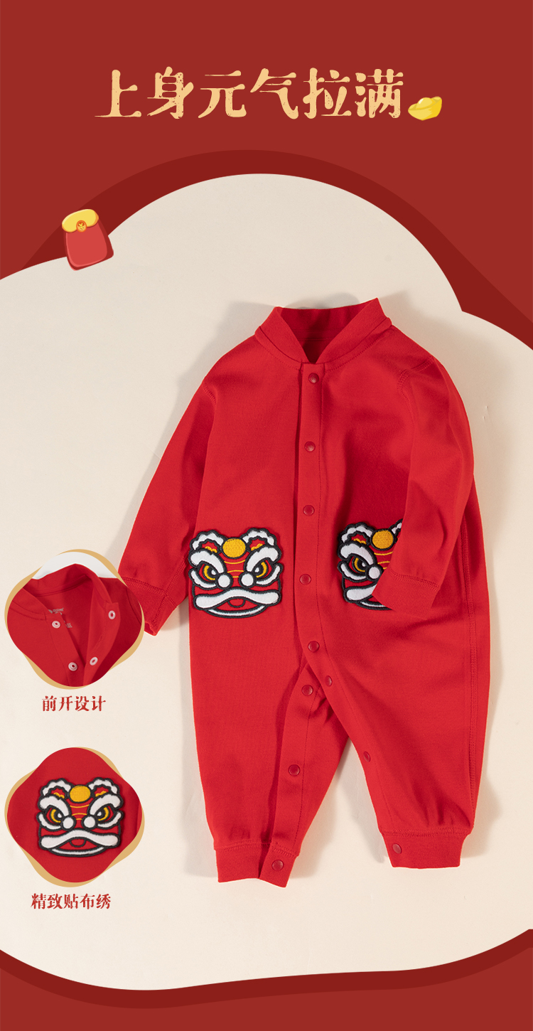 贝贝怡婴儿春秋前开连体衣婴童百天衣服新生儿中国红舞狮哈衣周岁服233L2086