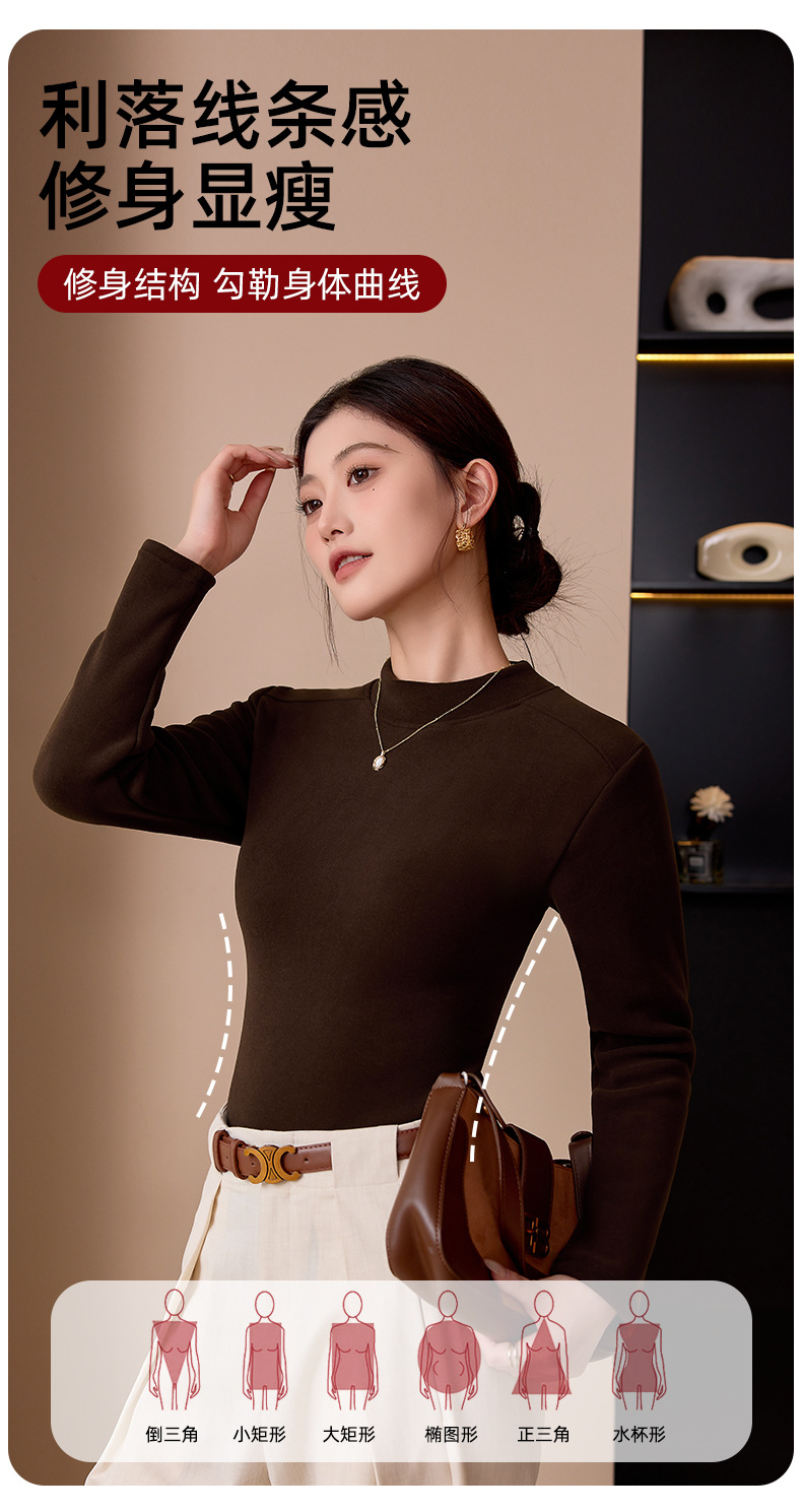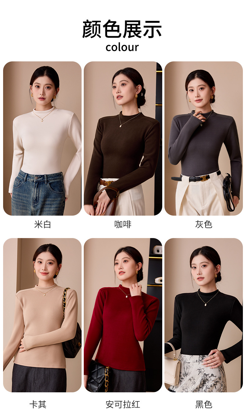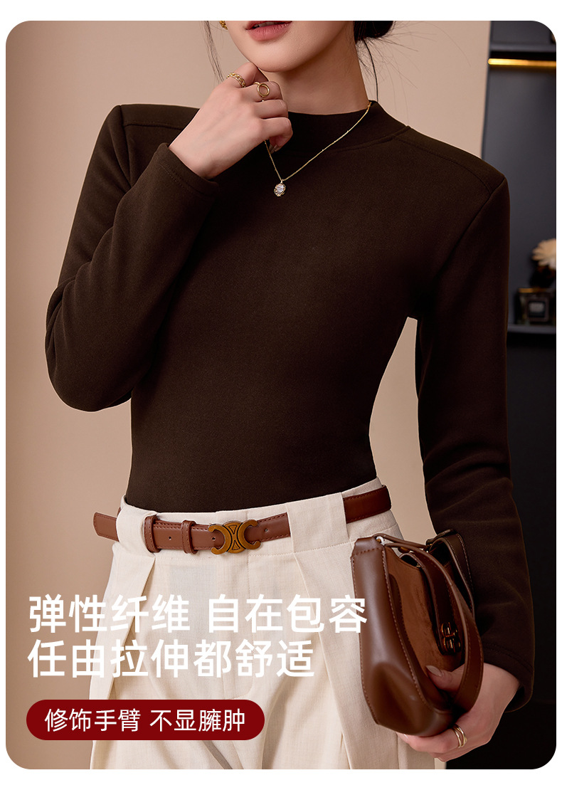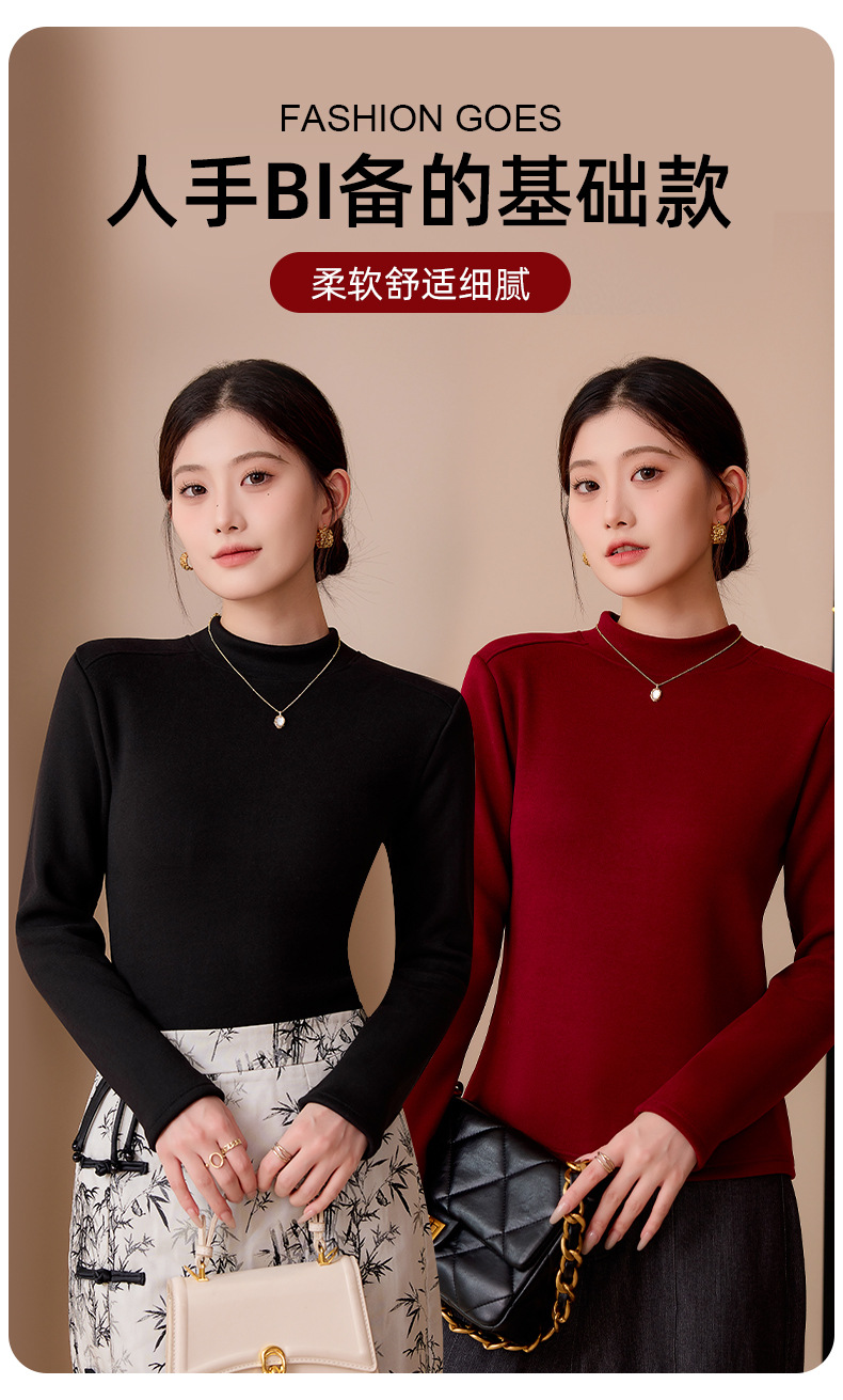 【79任选2件 加绒加厚 一件抵三件】秋冬季半高领打底衫女款安可拉红修身显瘦纯色加绒保暖衣