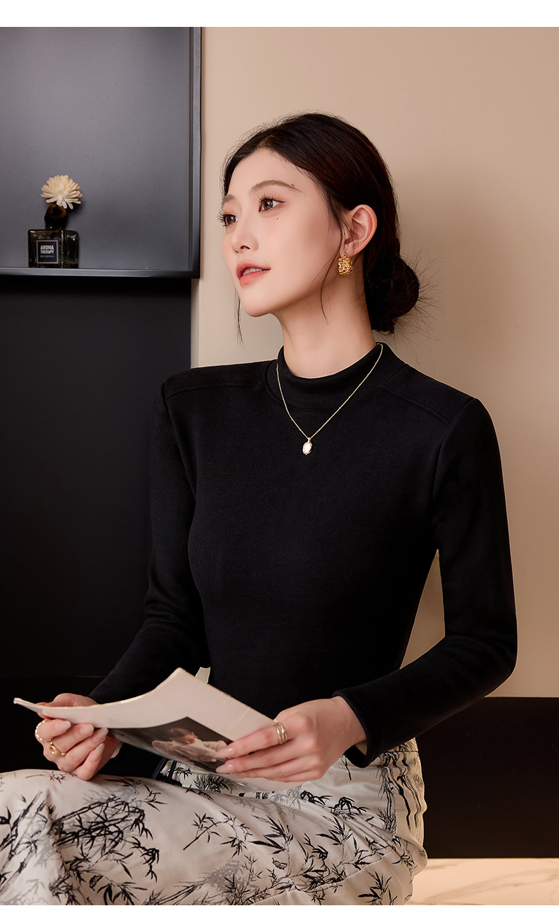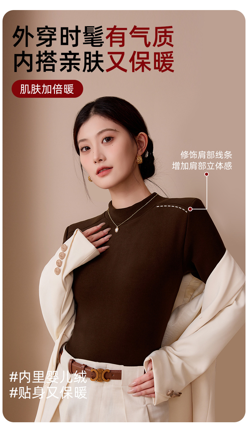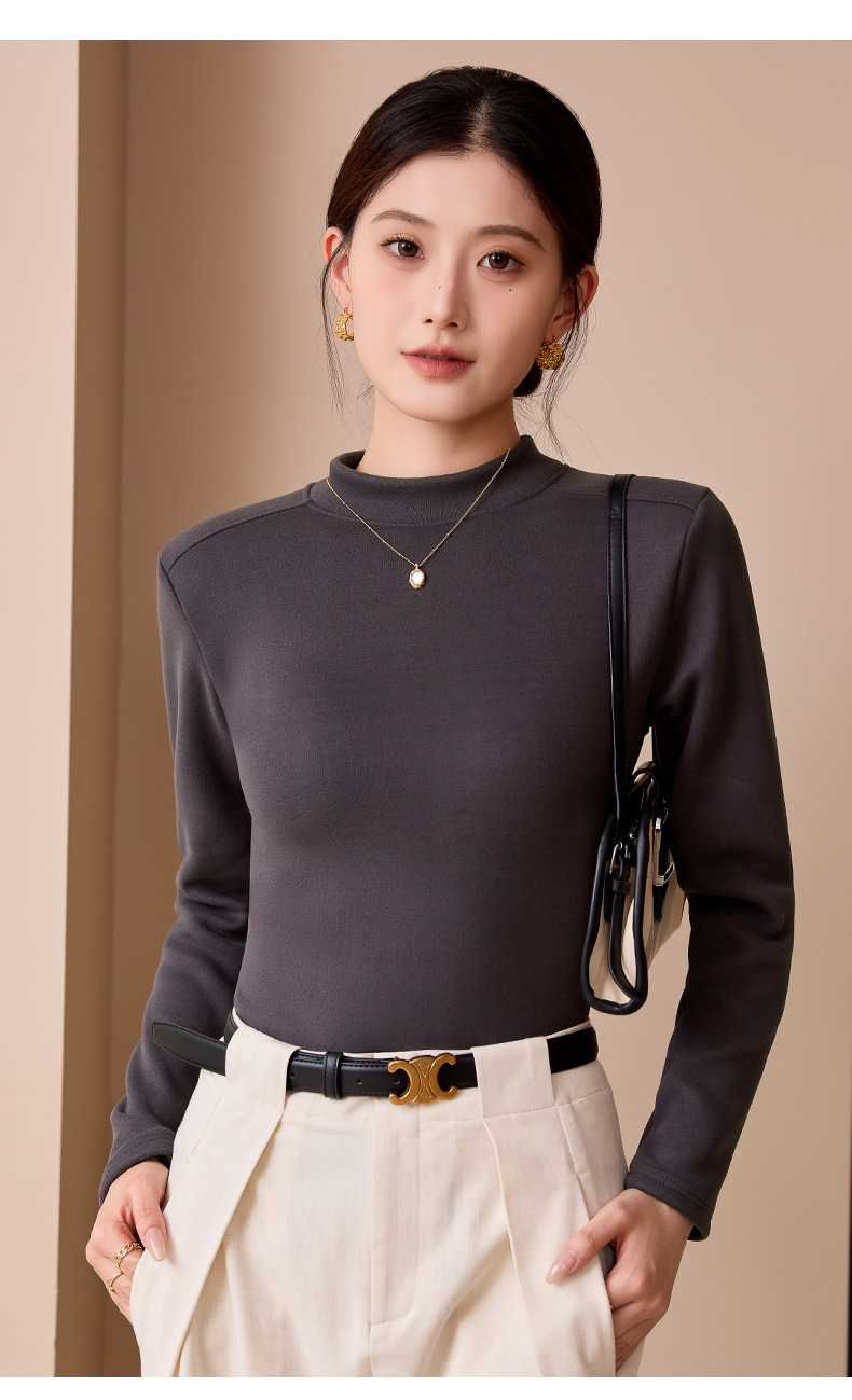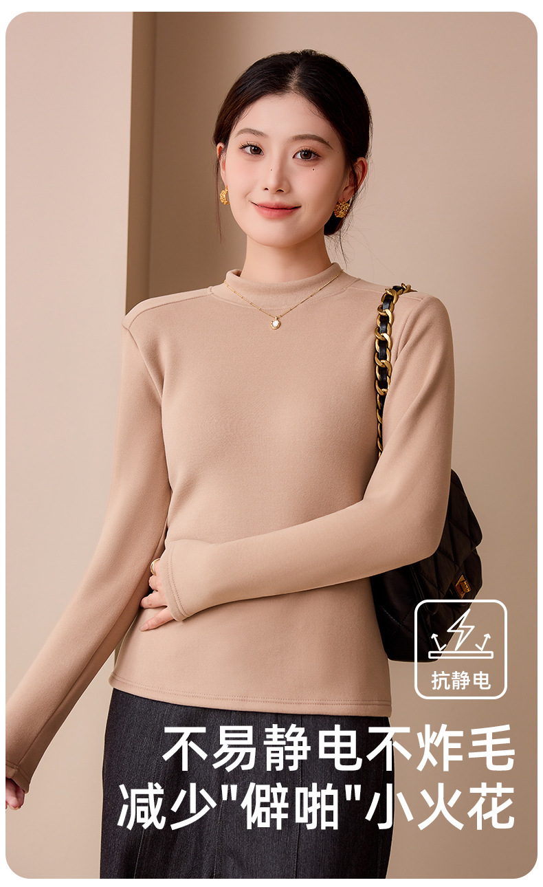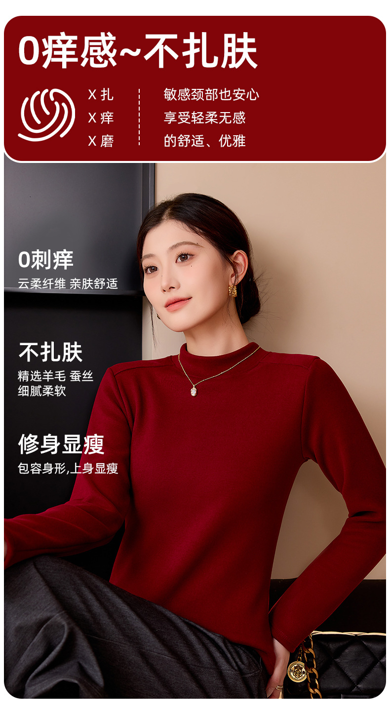 【79任选2件 加绒加厚 一件抵三件】秋冬季半高领打底衫女款安可拉红修身显瘦纯色加绒保暖衣