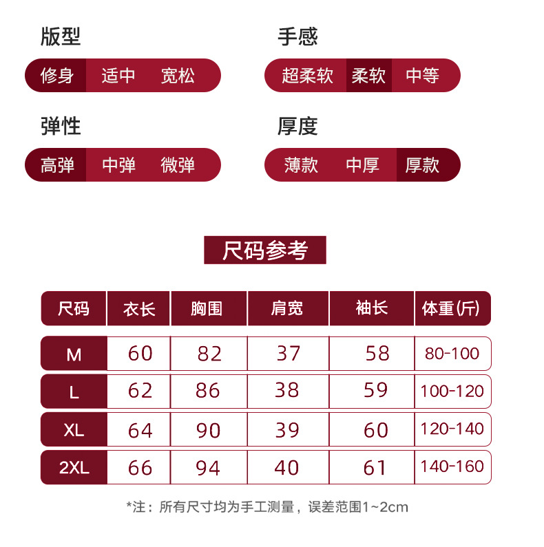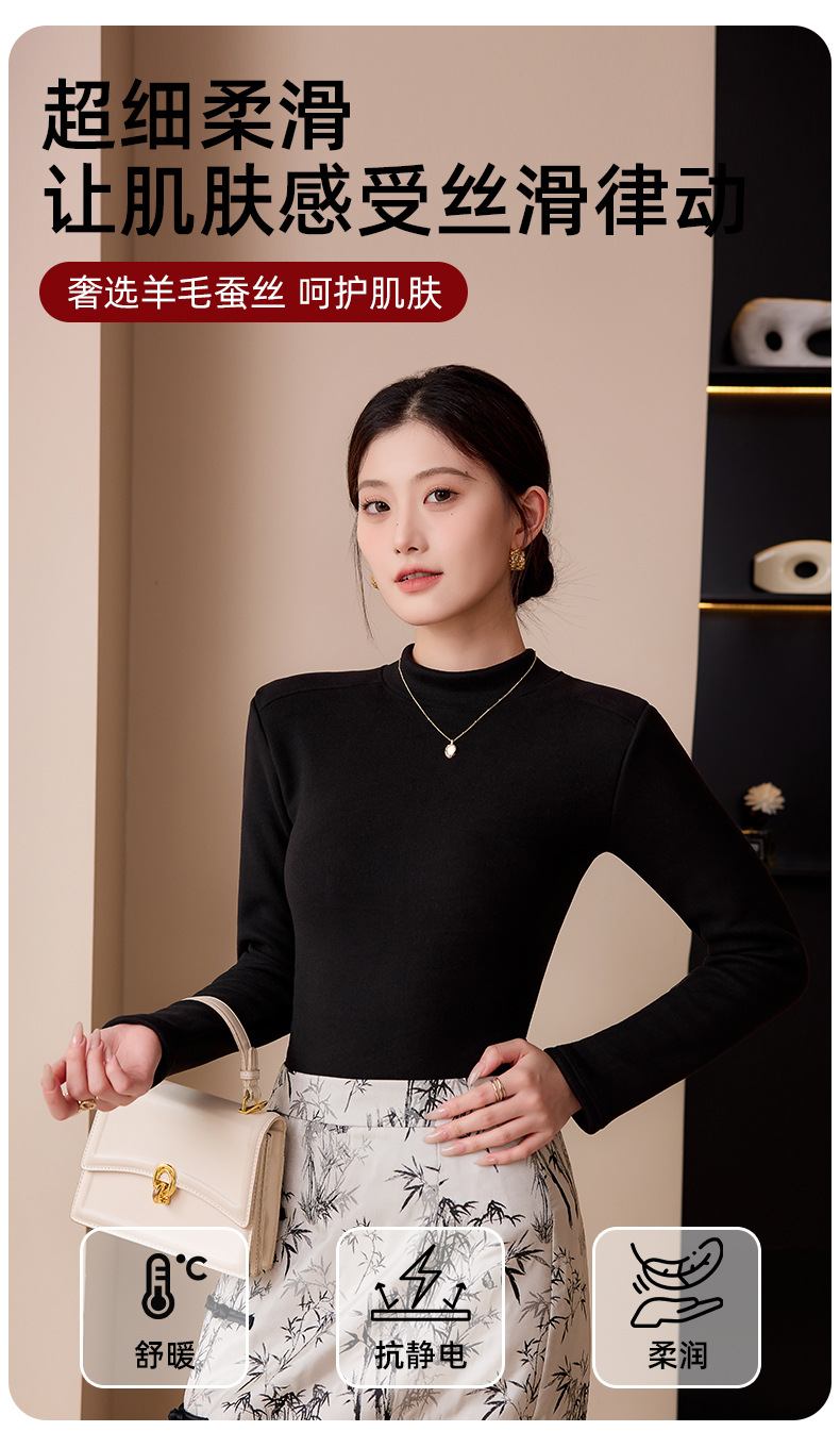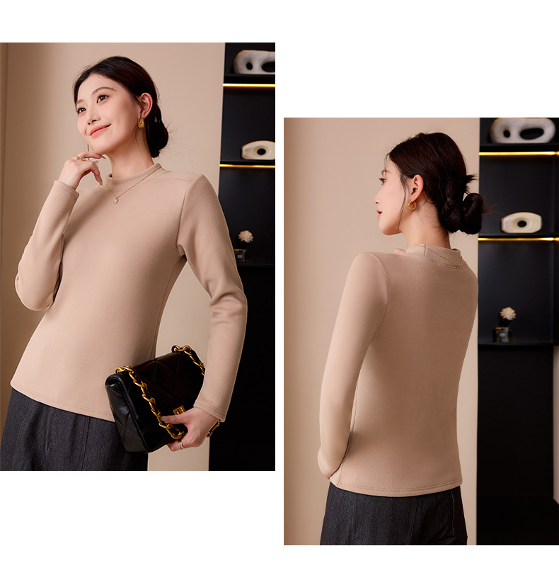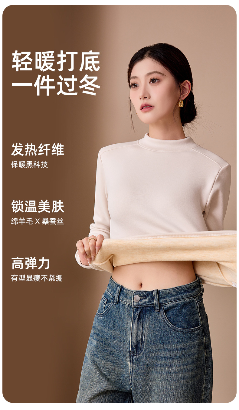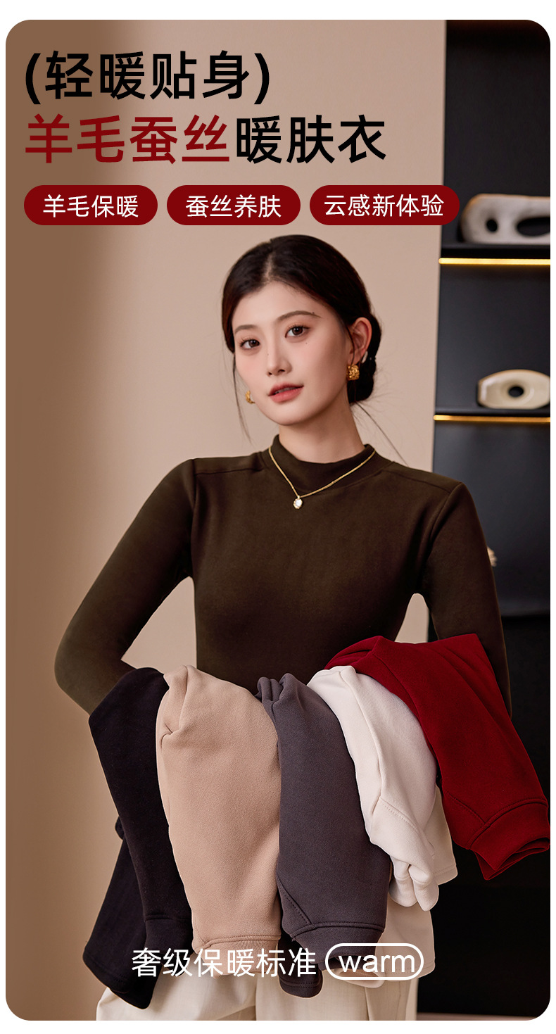 【79任选2件 加绒加厚 一件抵三件】秋冬季半高领打底衫女款安可拉红修身显瘦纯色加绒保暖衣