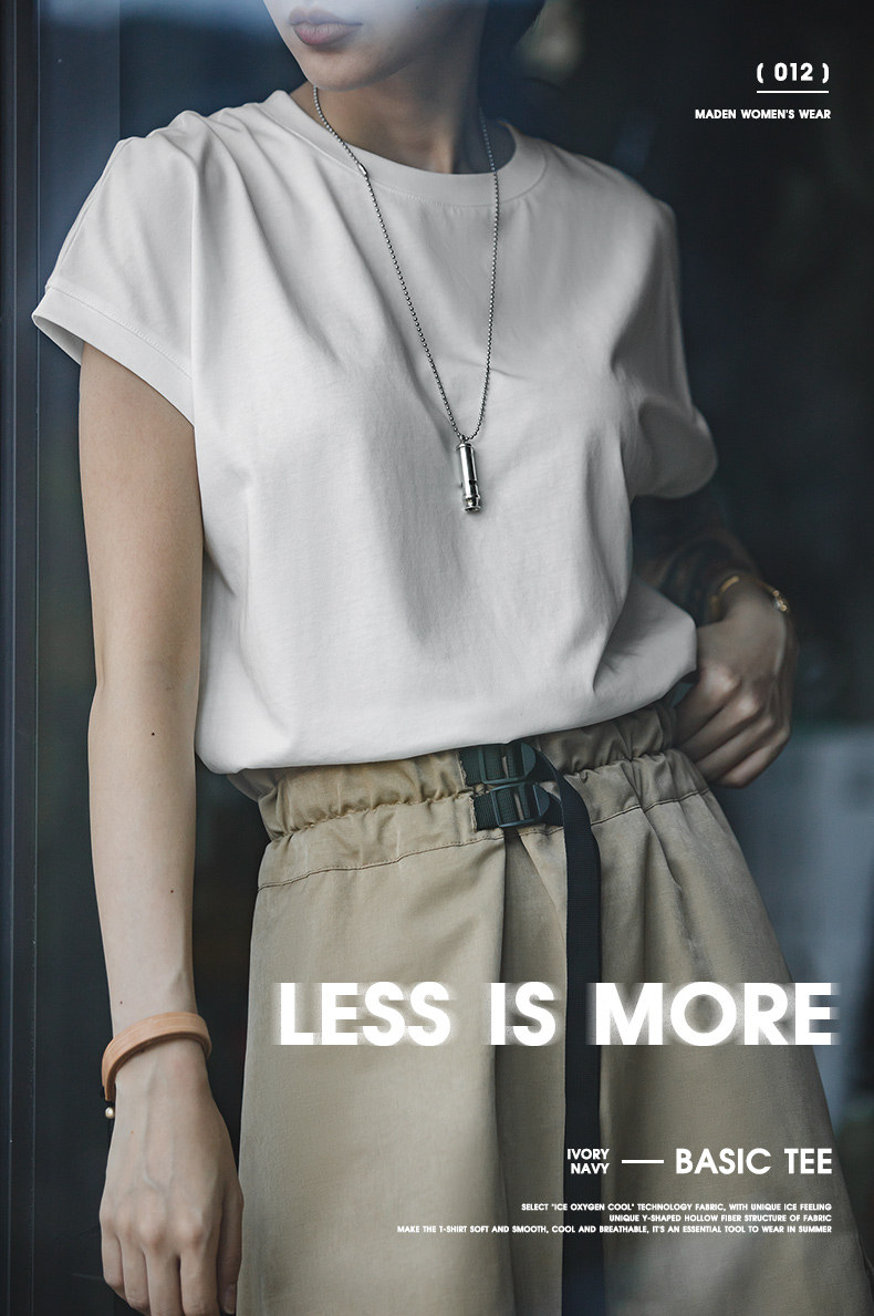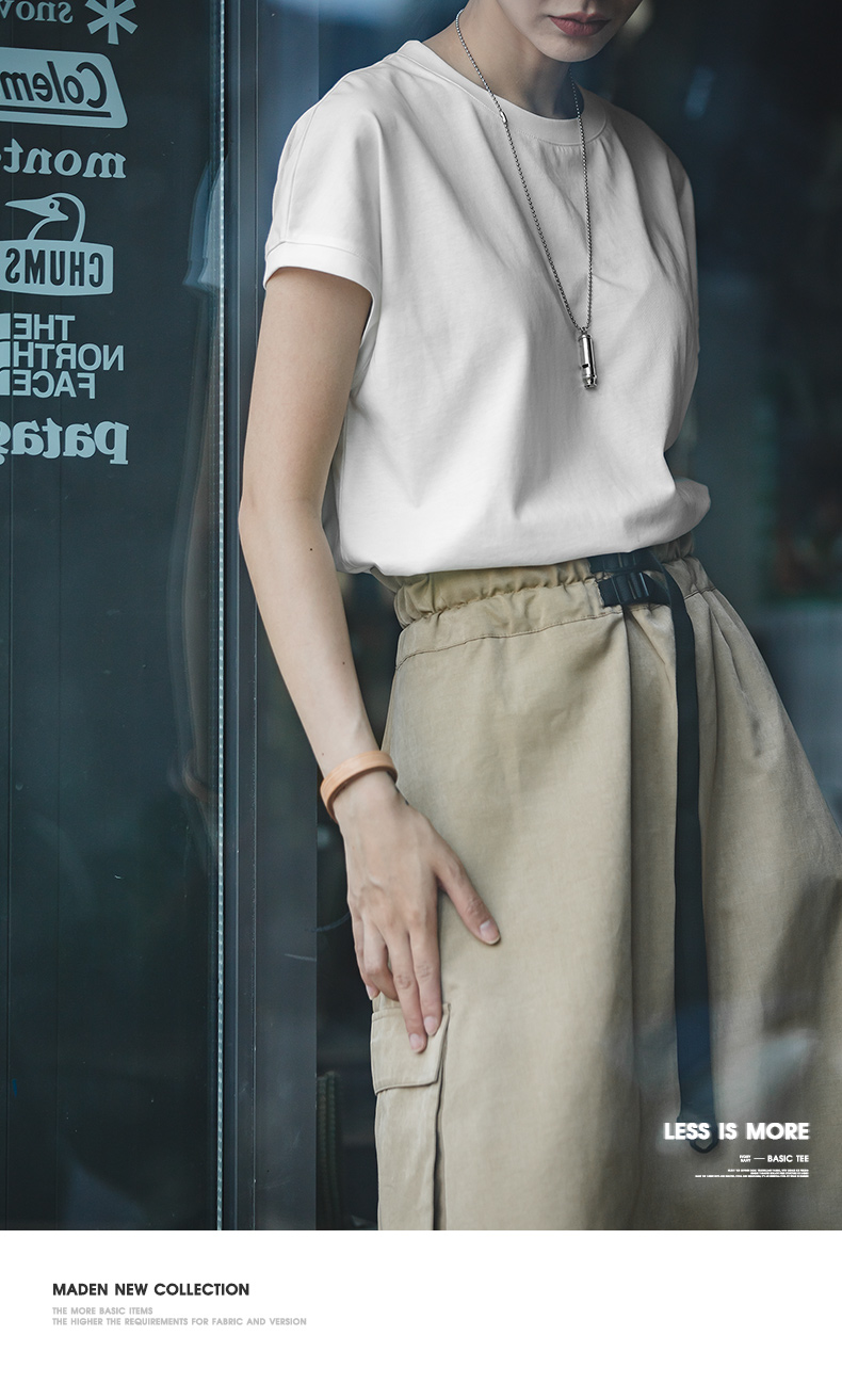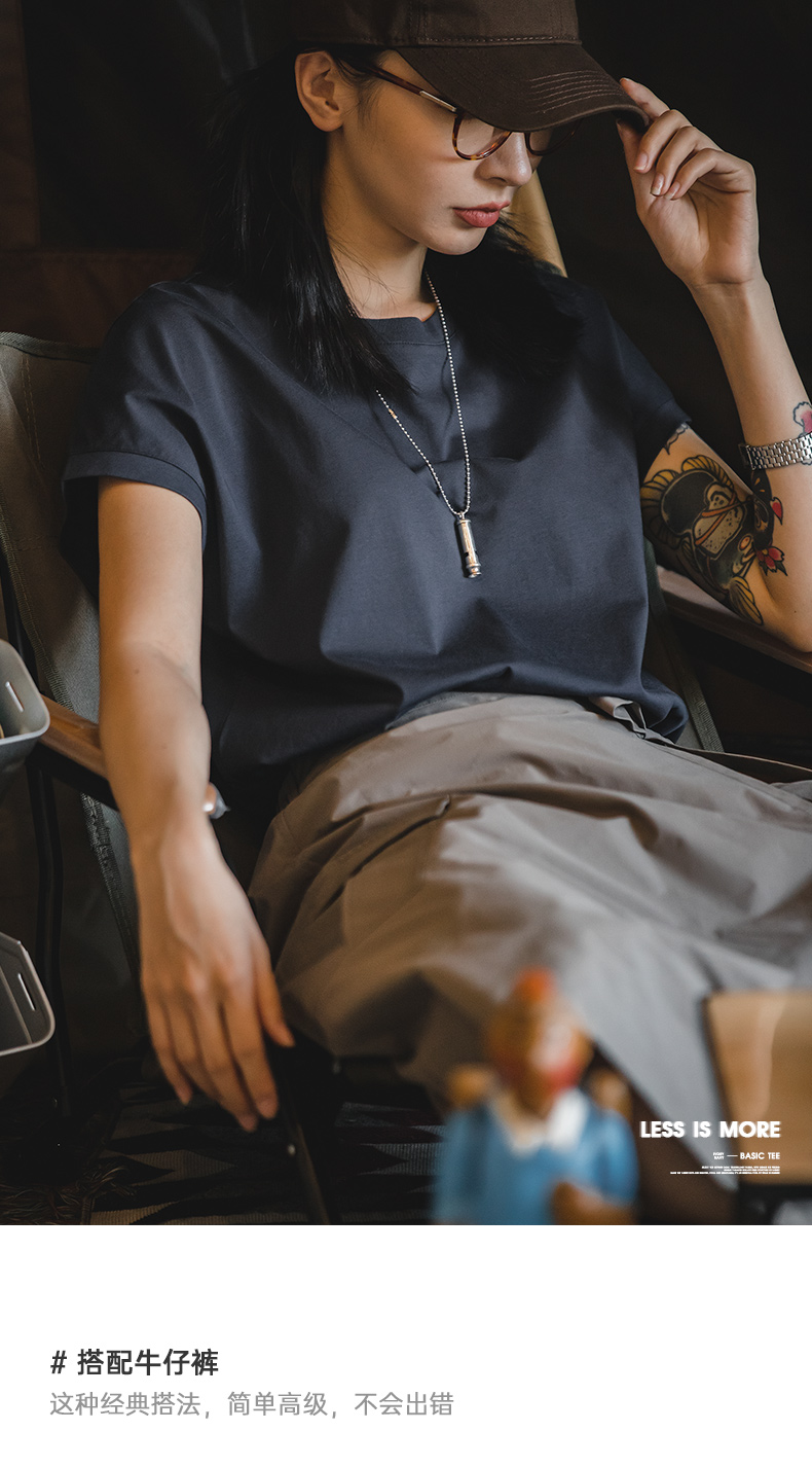 马登女装 冰丝上衣落肩基础短袖夏凉感打底衫薄款宽松圆领体T恤潮