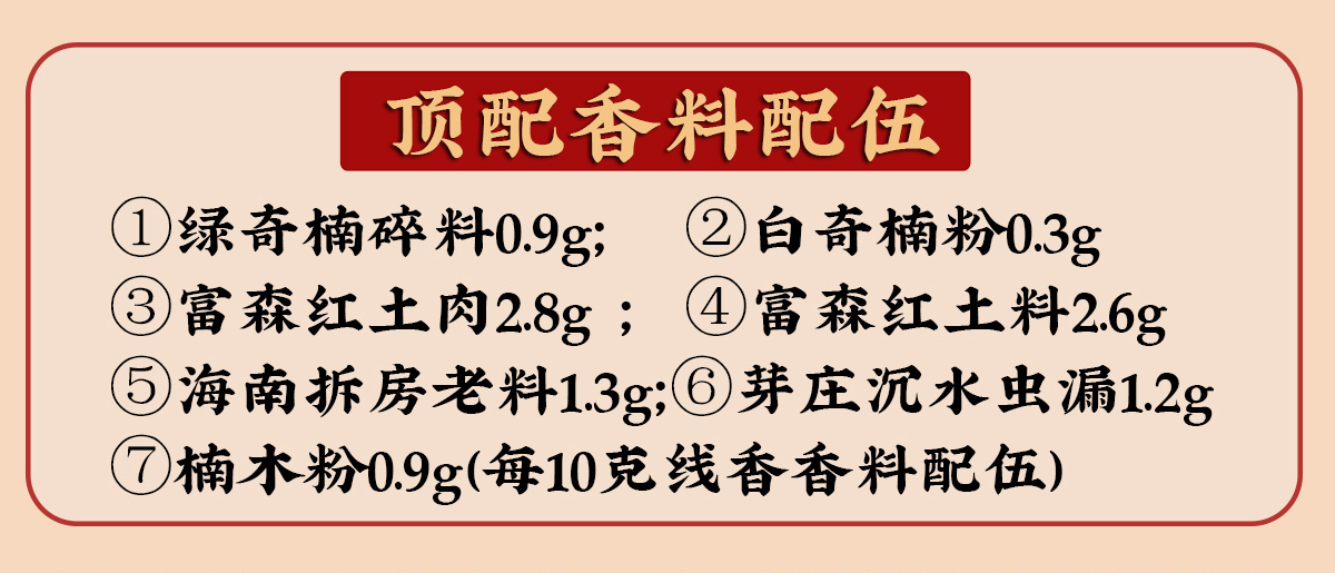 这款香,是调制成功的香品中,奇楠和红土比例最高的一款香,是难以复制的绝版私藏香。