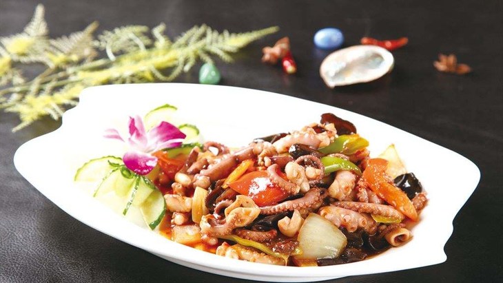 我们选用小船现捕的八爪鱼,在它还没死透的时候就开始定重装盘,然后直接急冻锁鲜,期间一滴水都不加。