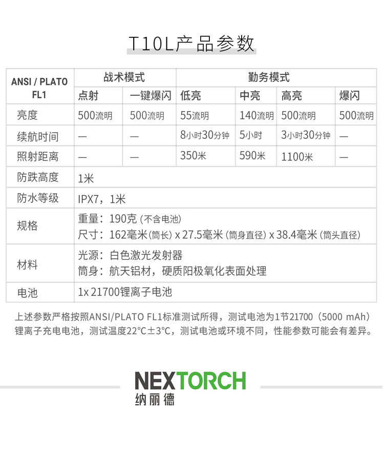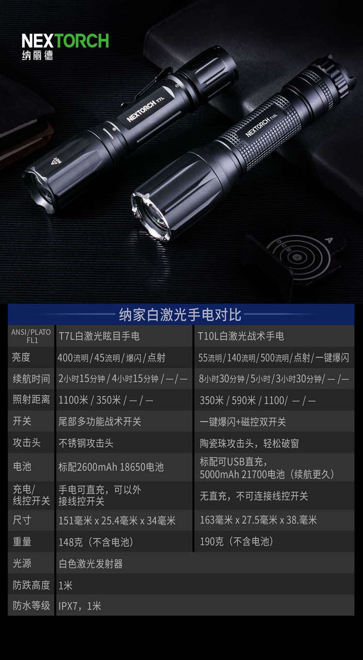 纳丽德(NEXTORCH)T10L白激光远射手电筒