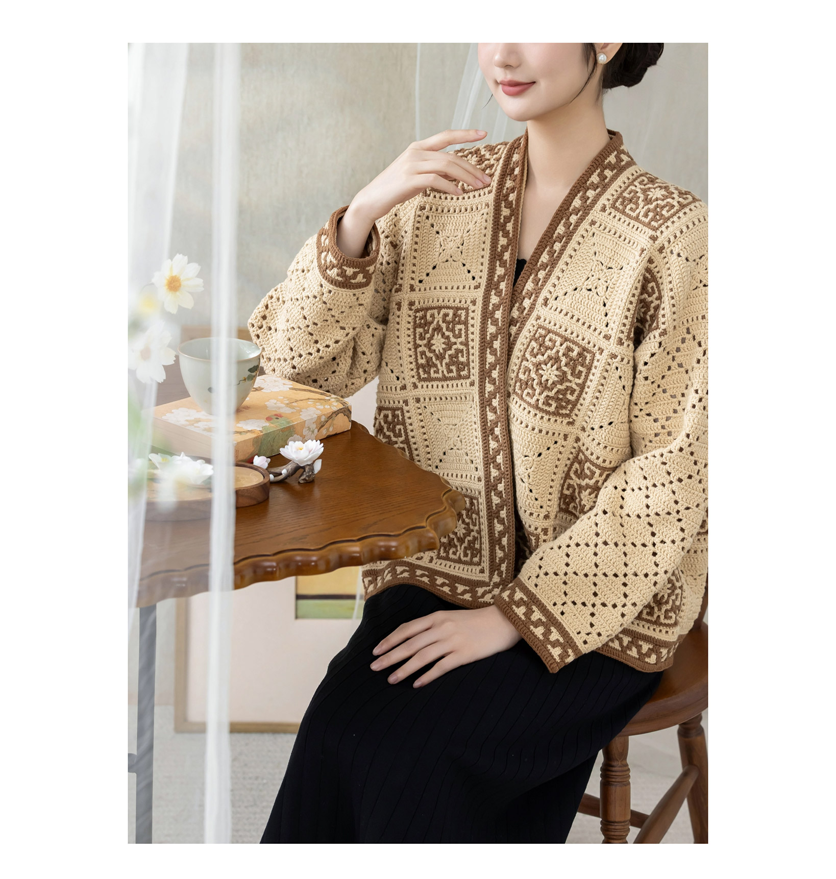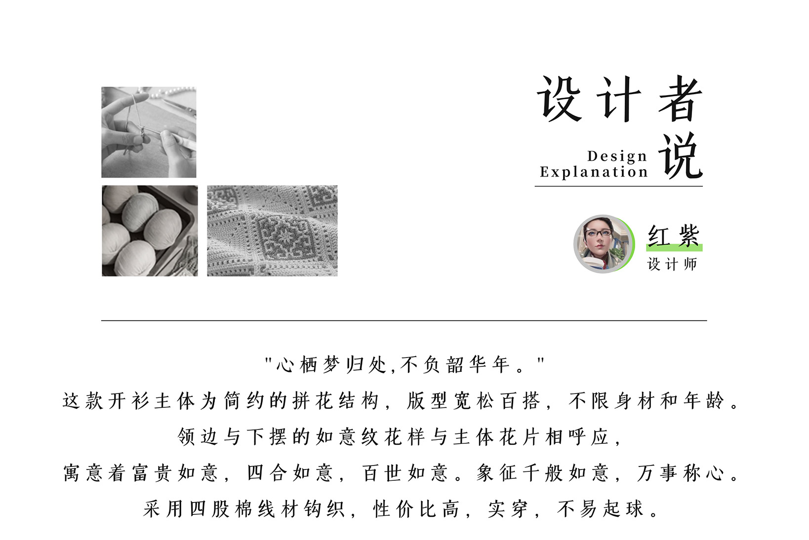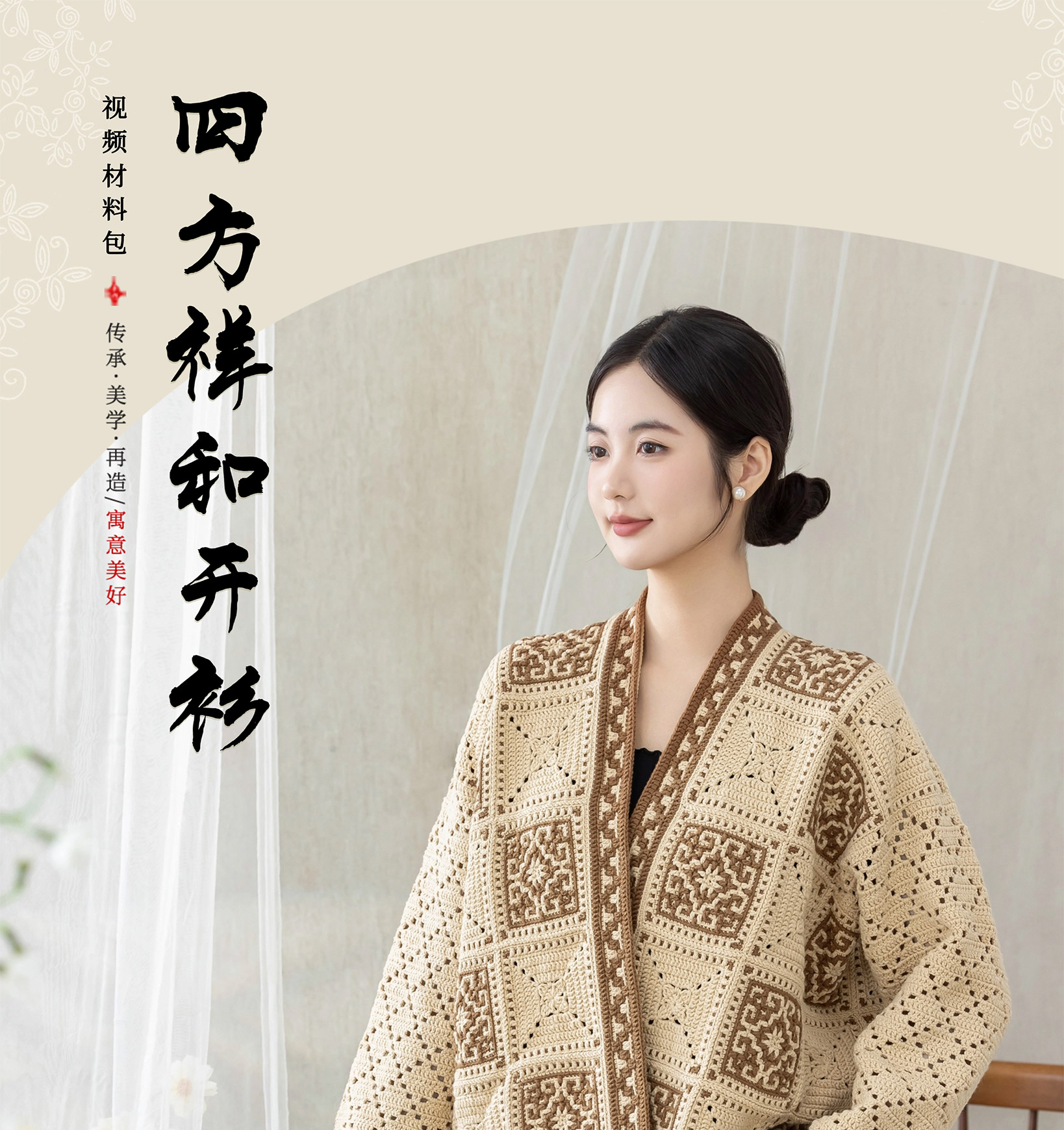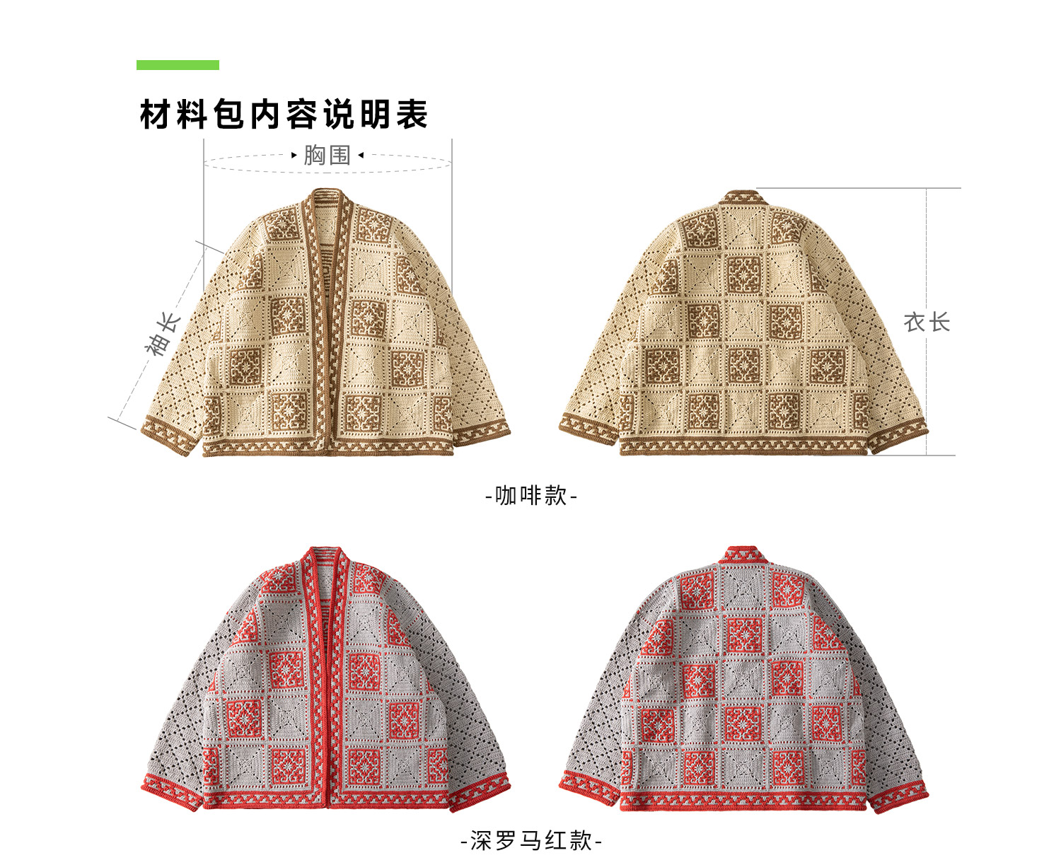 苏苏姐家四方祥和开衫手工diy钩针编织4股牛奶棉毛线团材料包