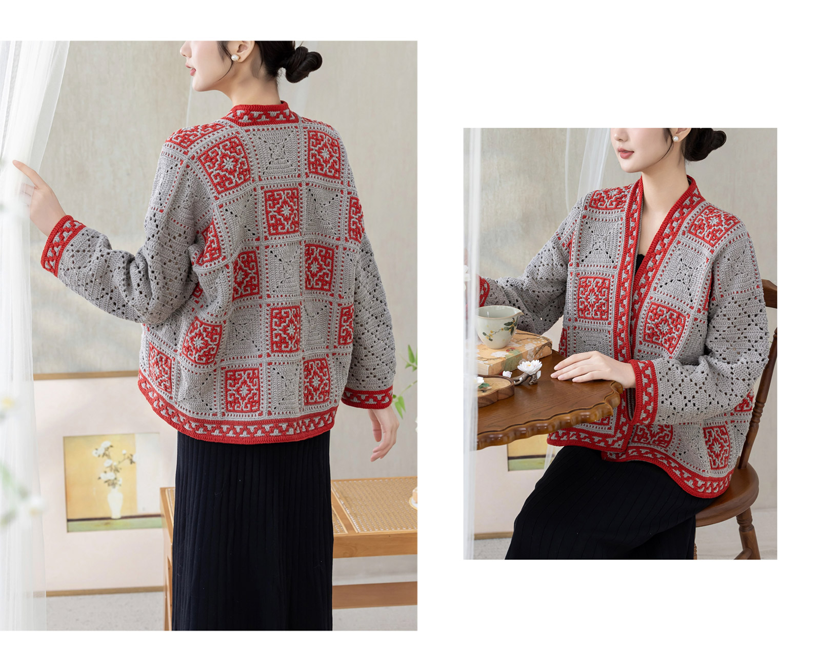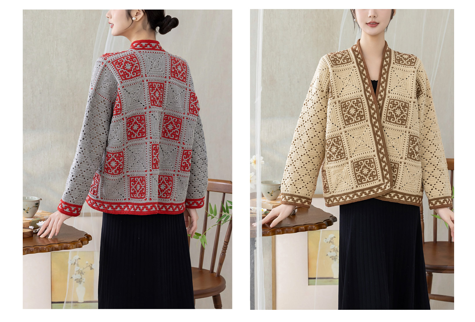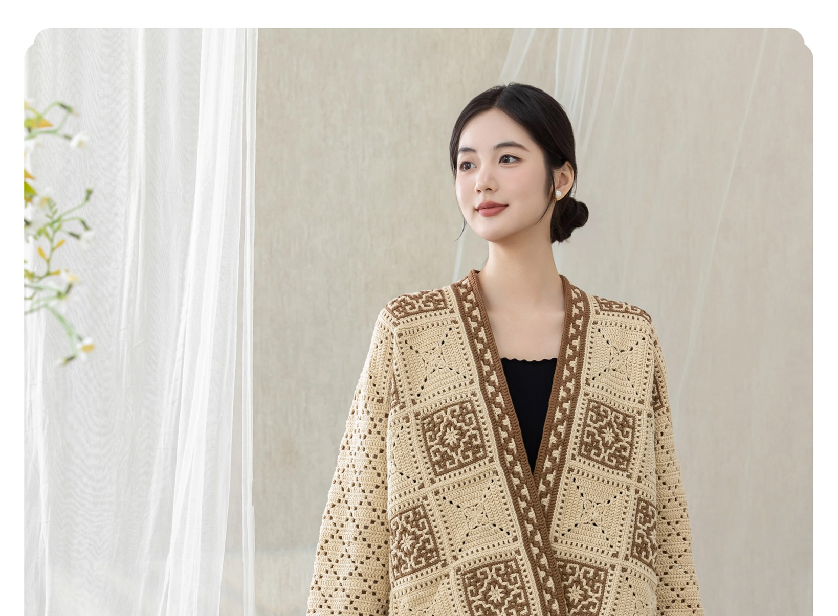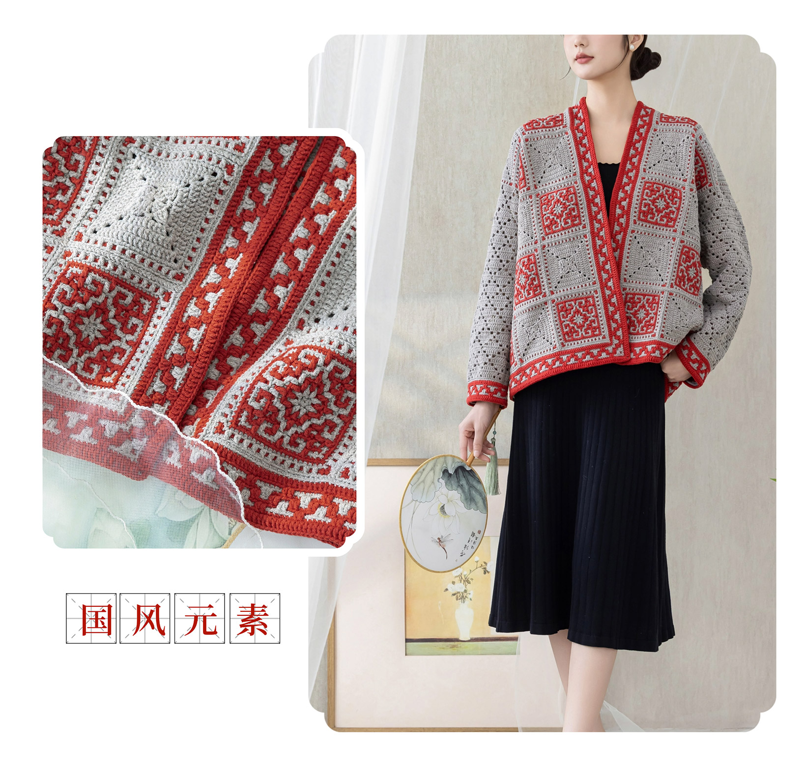苏苏姐家四方祥和开衫手工diy钩针编织4股牛奶棉毛线团材料包