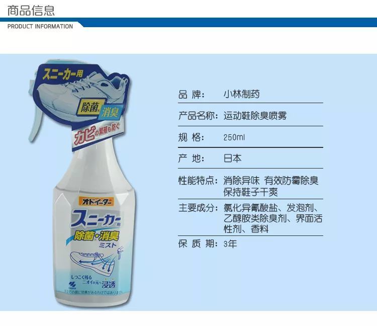 小林制药足部运动球鞋柜脚汗除臭足舒爽清新剂除异味防臭喷雾250ml
