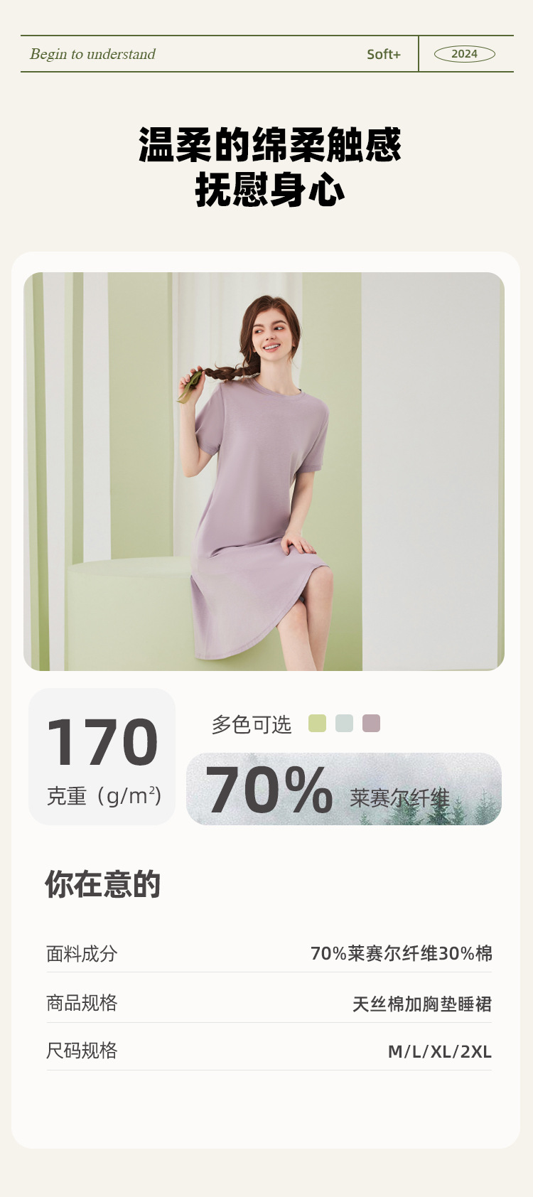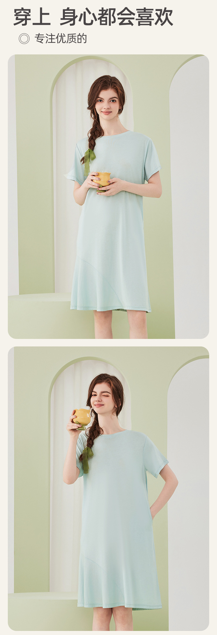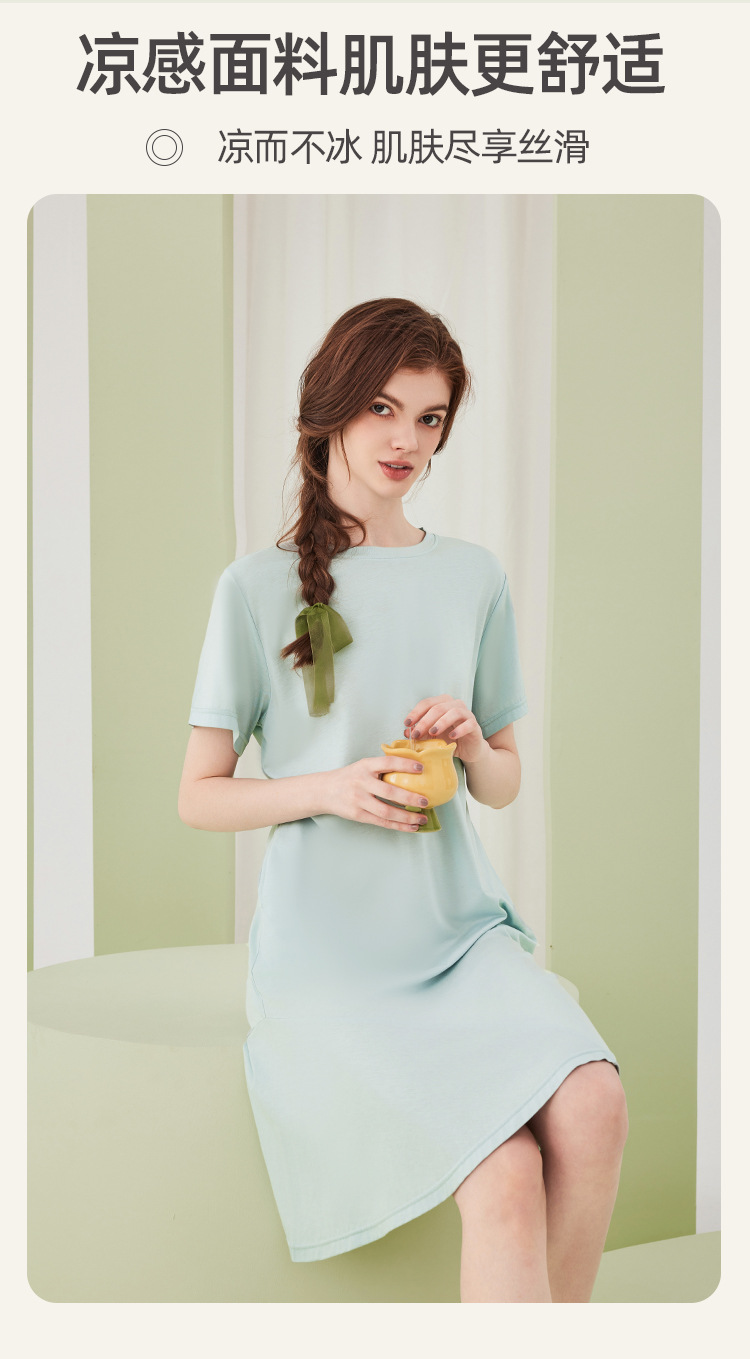 莱赛尔天丝棉薄款女士睡裙带胸垫夏季高级感凉感睡衣裙女士家居服