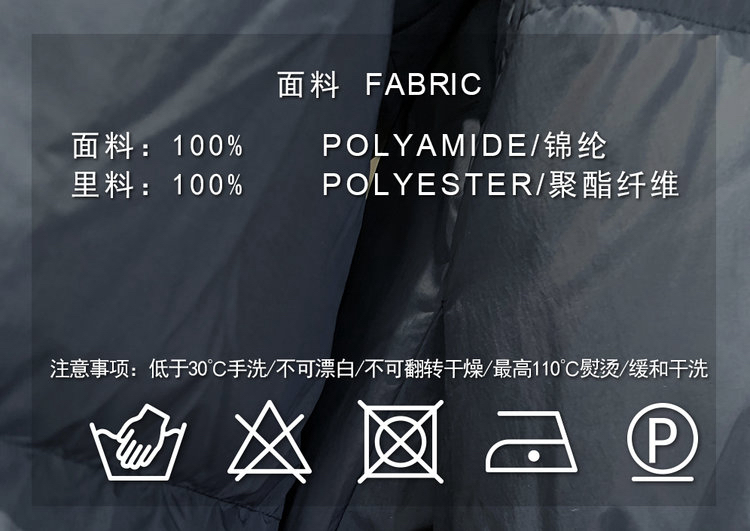 高品质面料,耐穿又舒适,摸起来手感顺滑,非常耐穿。这种面料有很好的防风性能,能有效抵御寒风的侵袭。