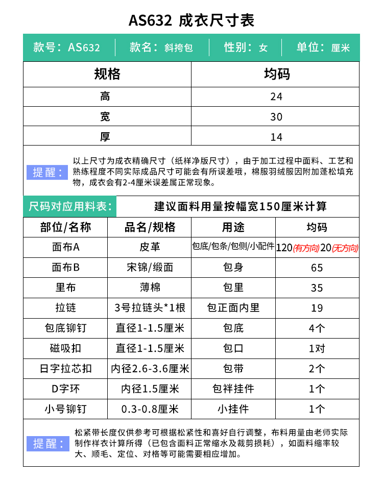 裁缝学苑AS632龙须包宋锦包包纸样女装单肩带斜跨包服装打板