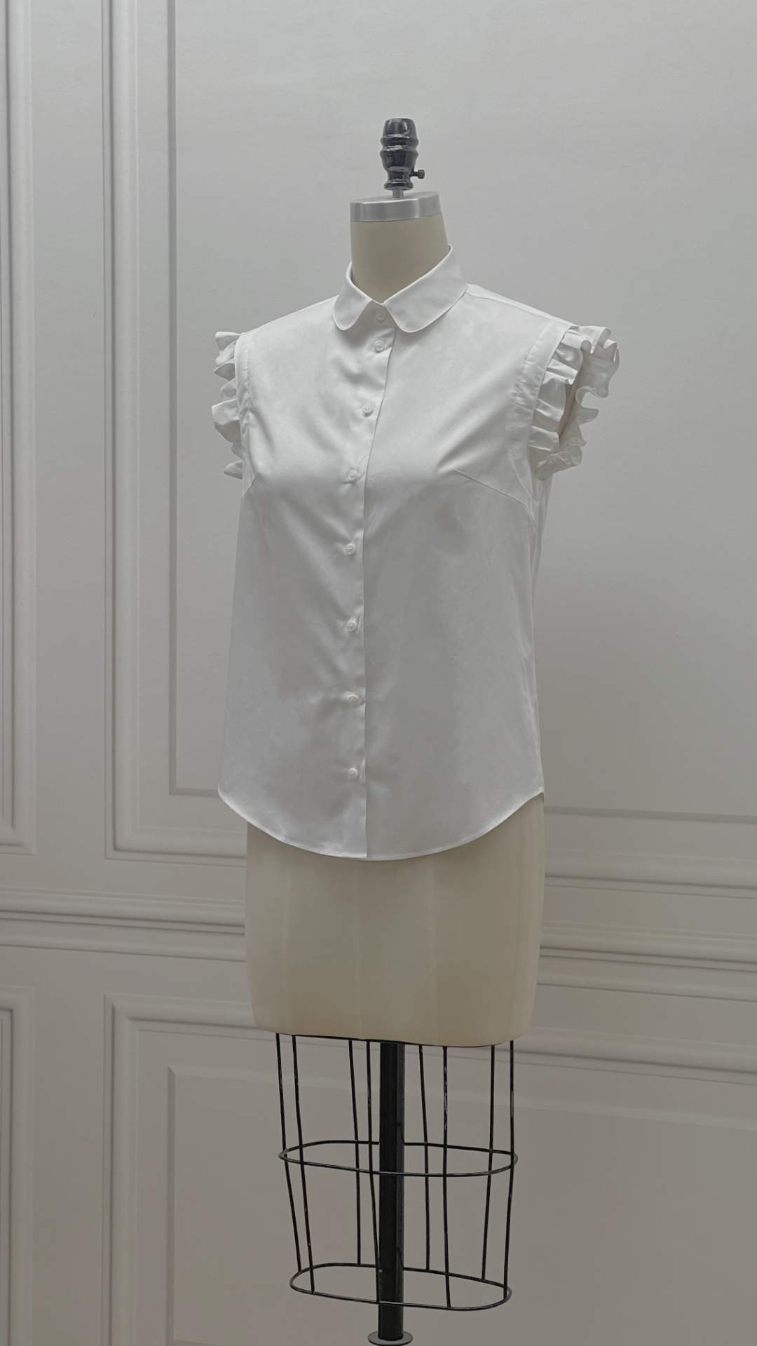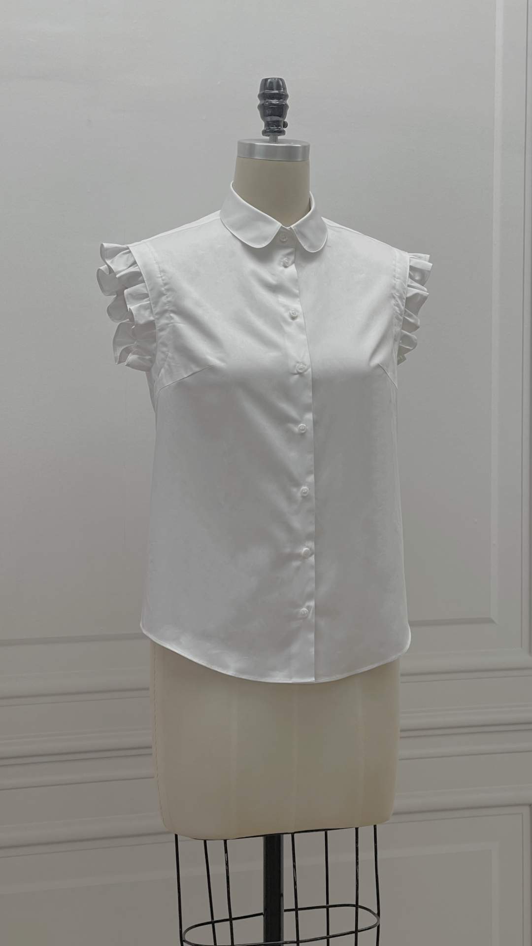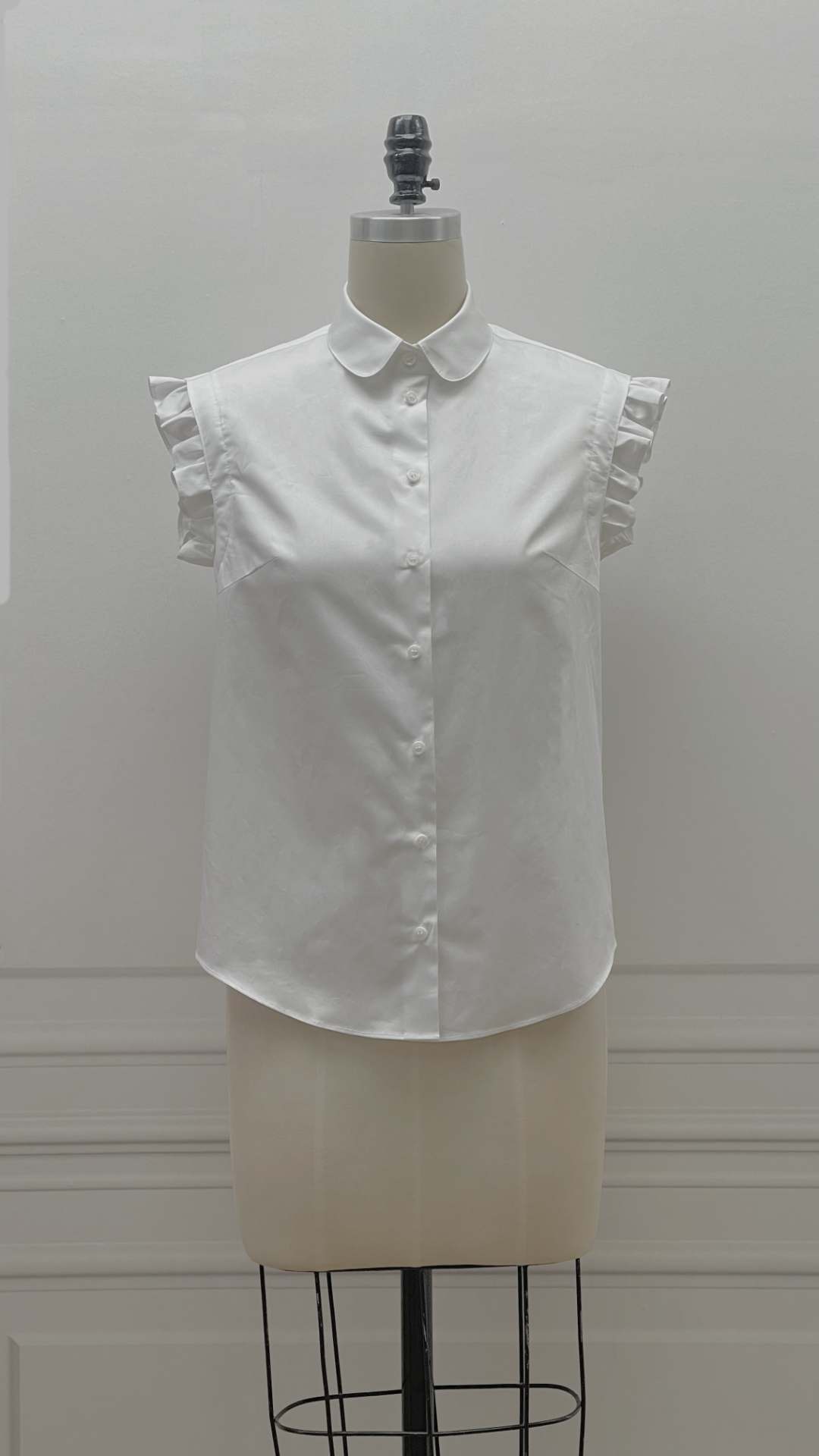 定制-法式复古-文艺清新-荷叶边无袖 气质纯色 夏季衬衫 2202010