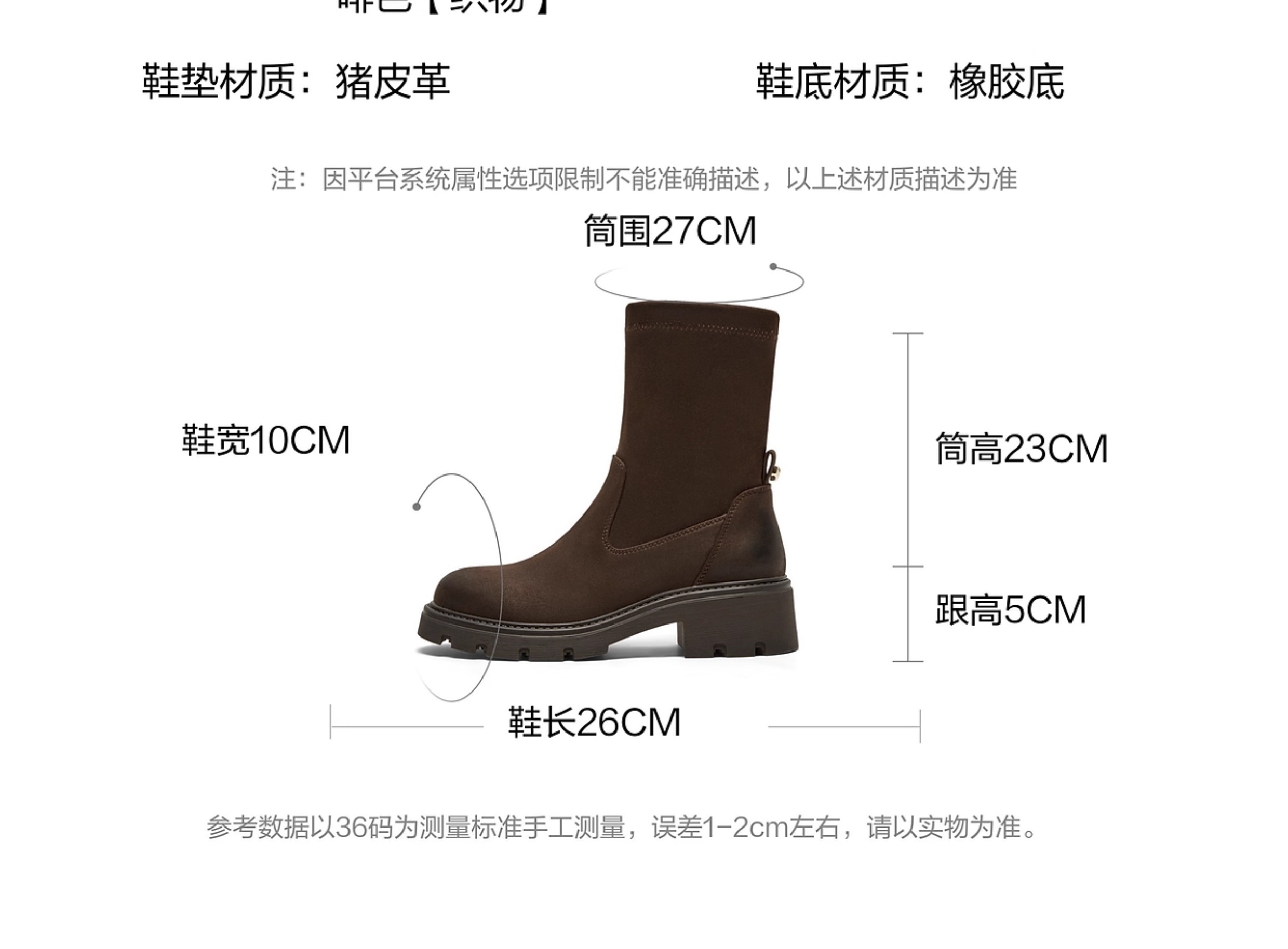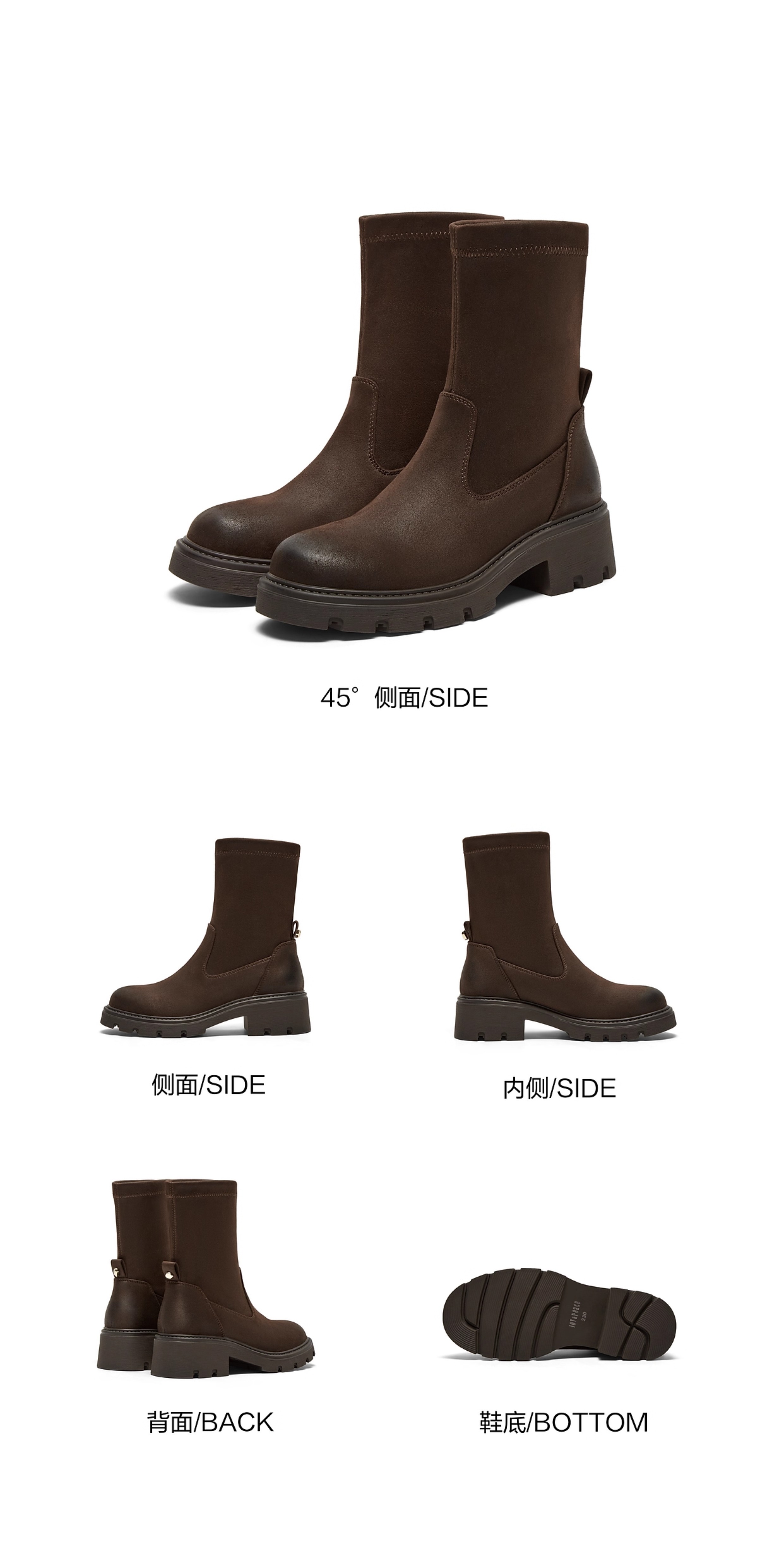 BF楼真美诗2025新冬款复古显瘦弹力瘦瘦厚底时装短靴女1783ADZ5吊牌价1698折后价1398