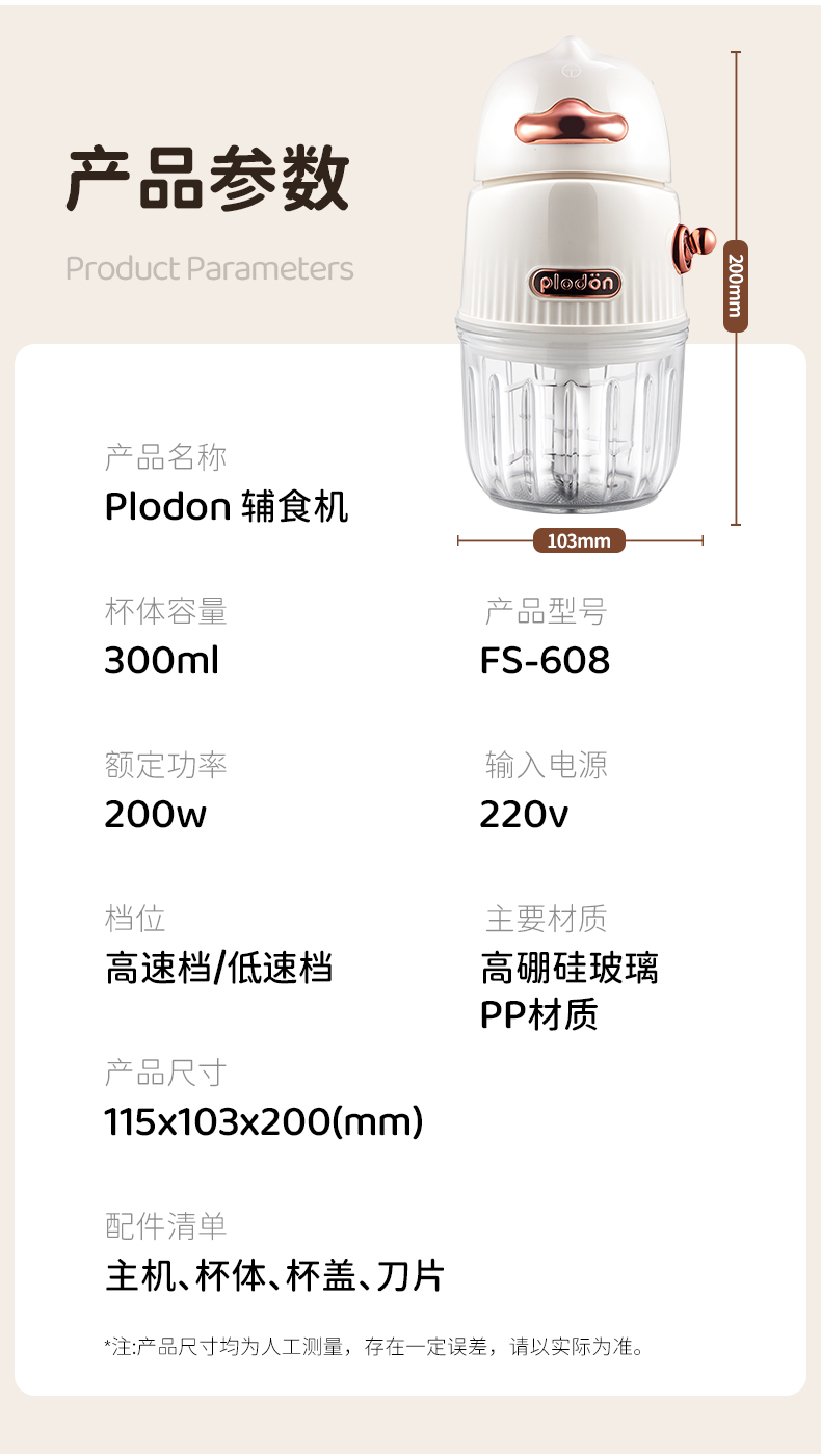 浦利顿小白鸭双档辅食机PLD-FS-650