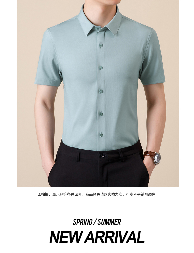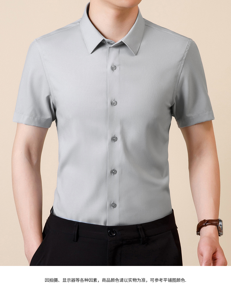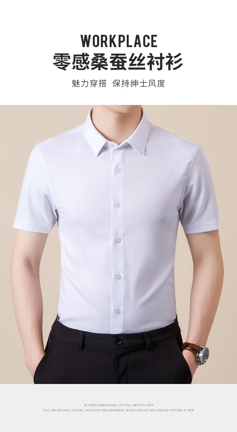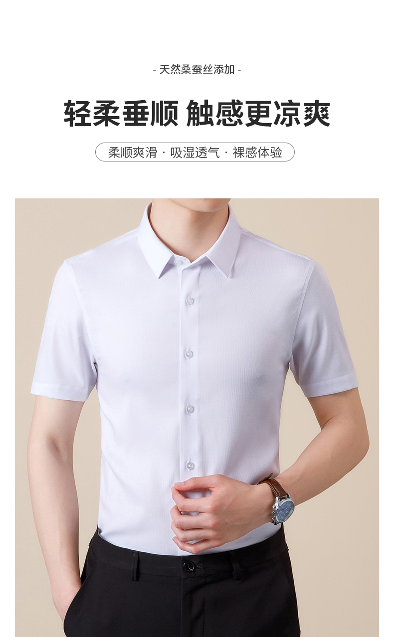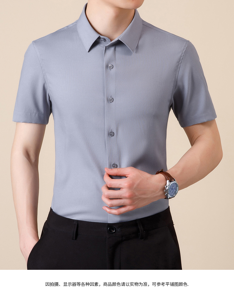 【含蚕丝】罗蒙春秋男士经典纯色短袖衬衫时尚百搭休闲简约通勤职业上班男衬衣