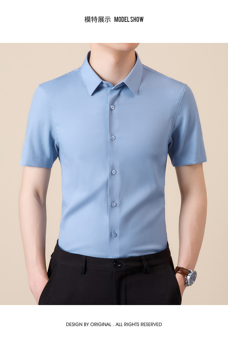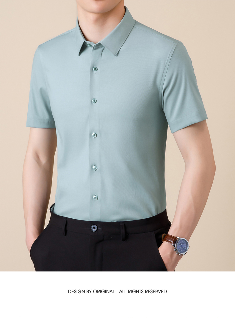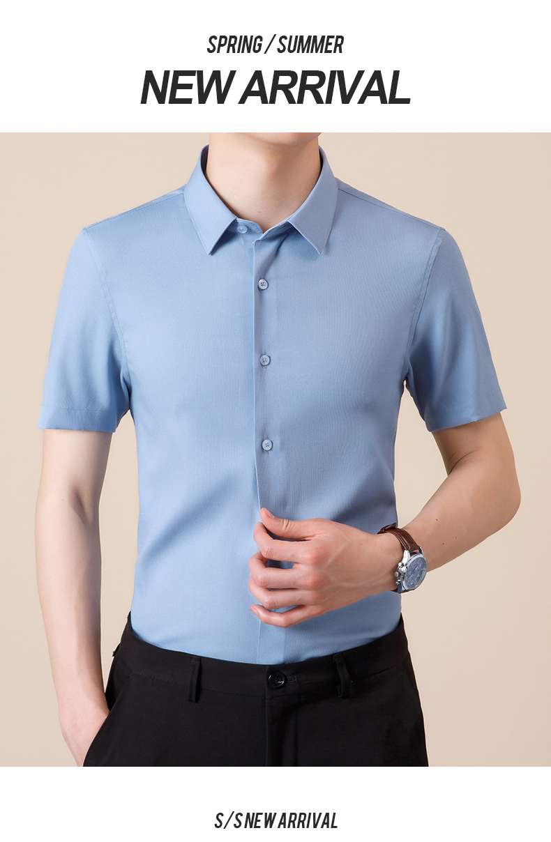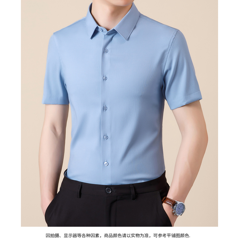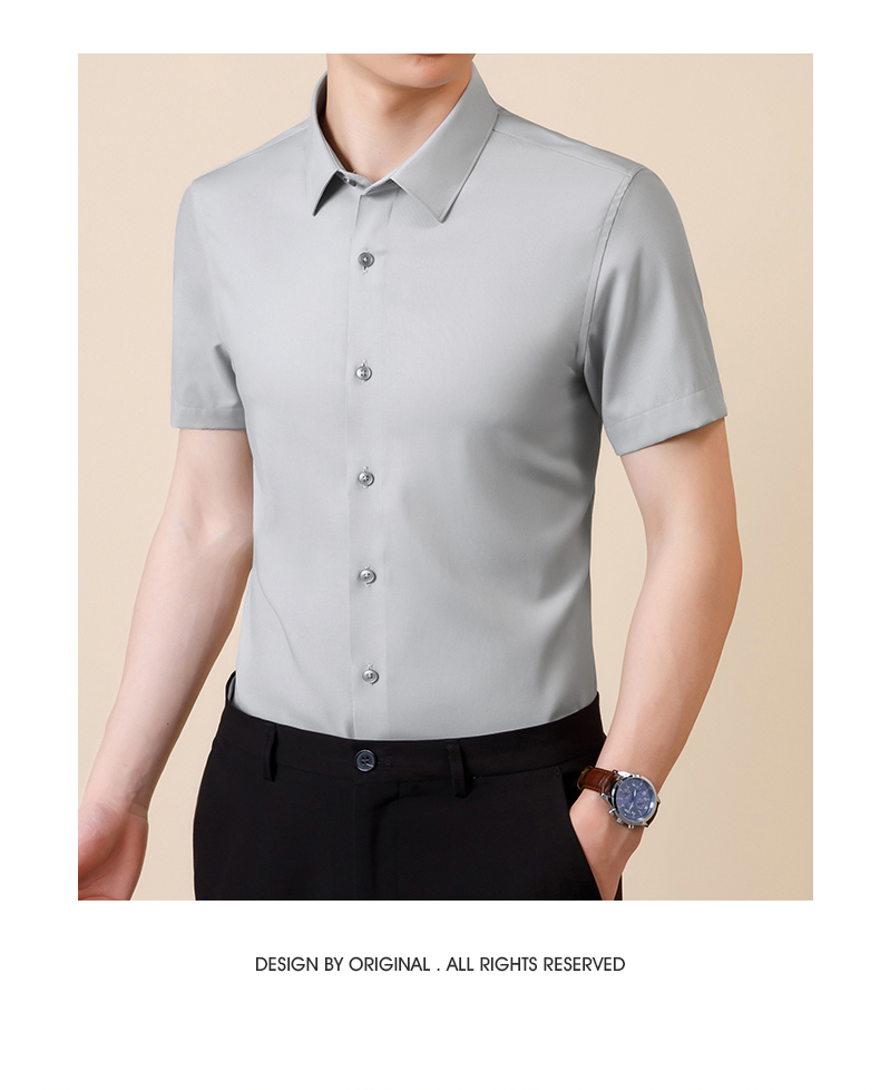 【含蚕丝】罗蒙春秋男士经典纯色短袖衬衫时尚百搭休闲简约通勤职业上班男衬衣