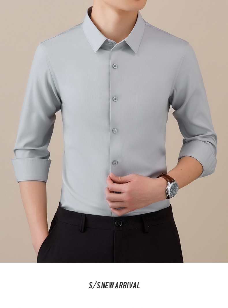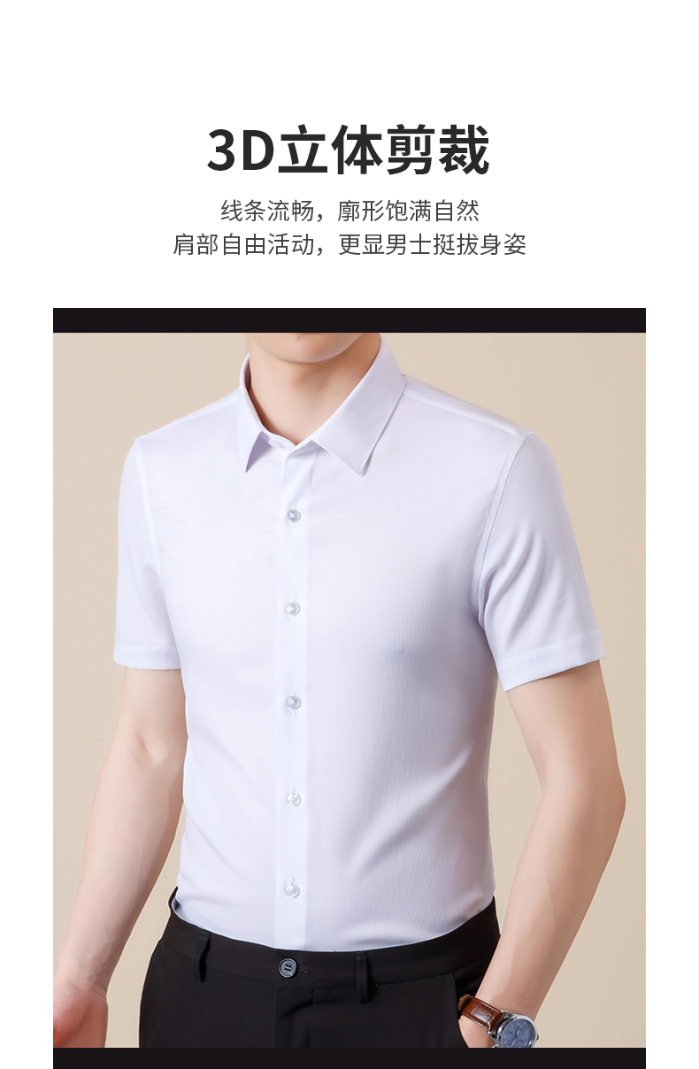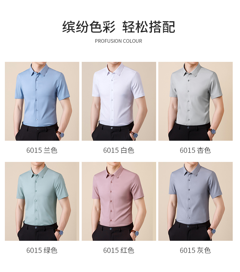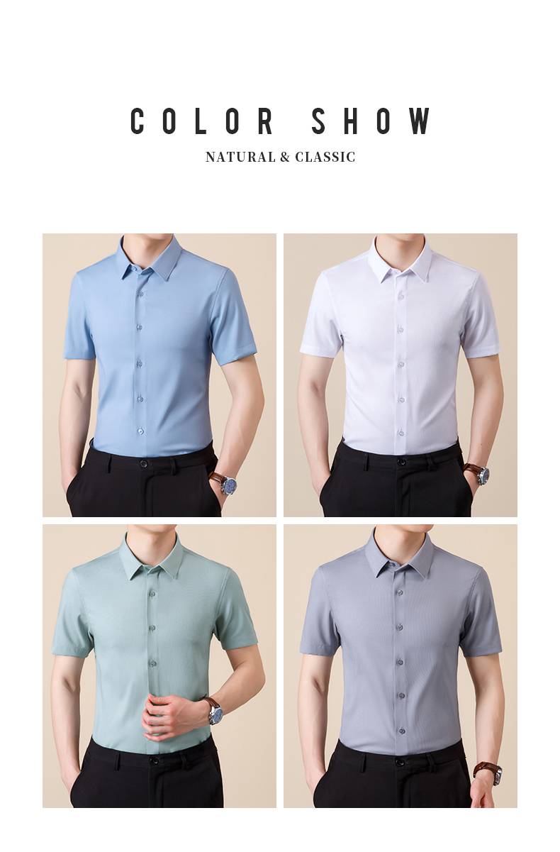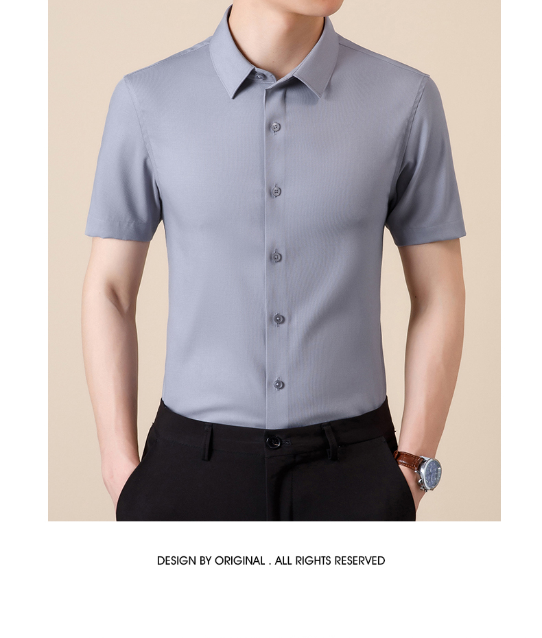 【含蚕丝】罗蒙春秋男士经典纯色短袖衬衫时尚百搭休闲简约通勤职业上班男衬衣