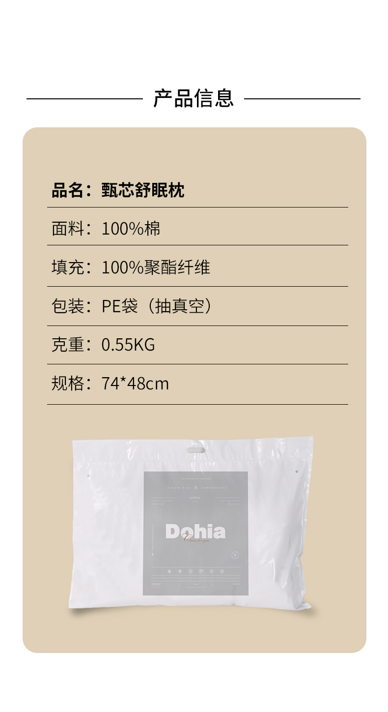 多喜爱 甄芯舒眠枕【全棉面料】【A类标准】有效抑菌 柔软蓬松