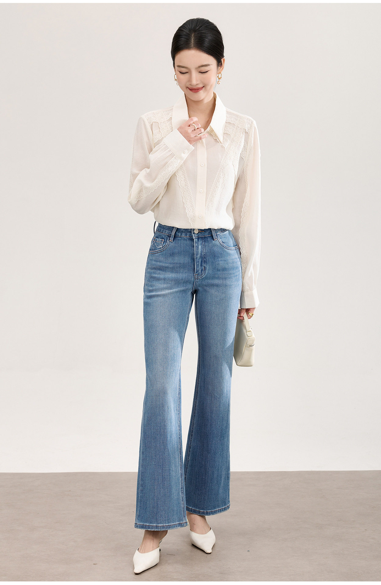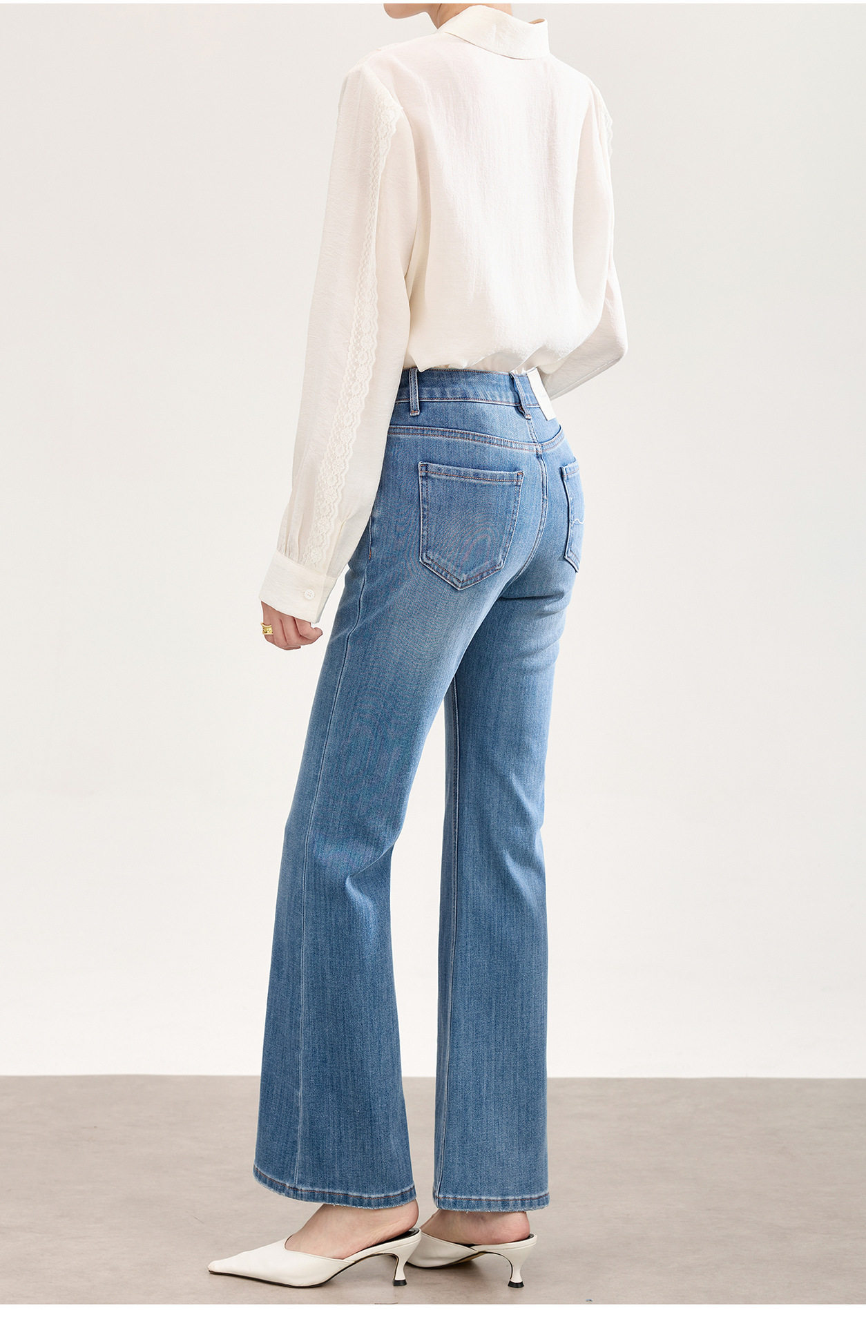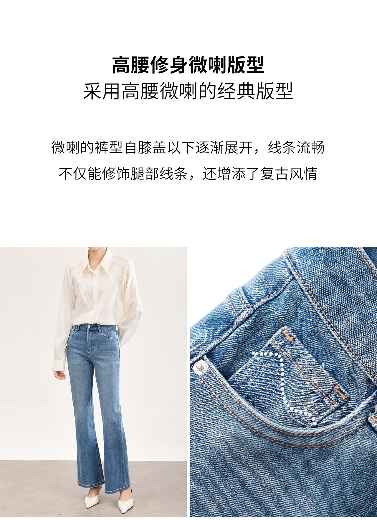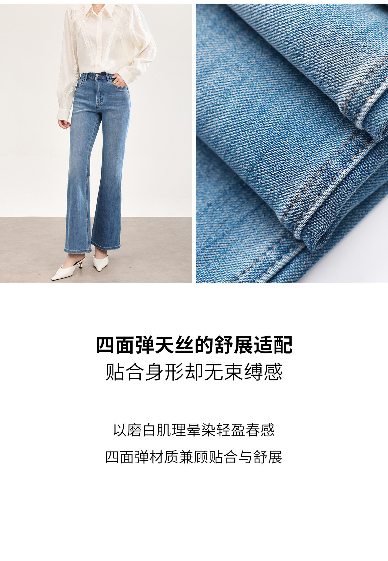 「高货wl」全新升级【铂金会员266/天猫359/差价93】(01002)洛诗琳2026春季新款高品质四面弹修身磨白天丝棉微喇牛仔裤