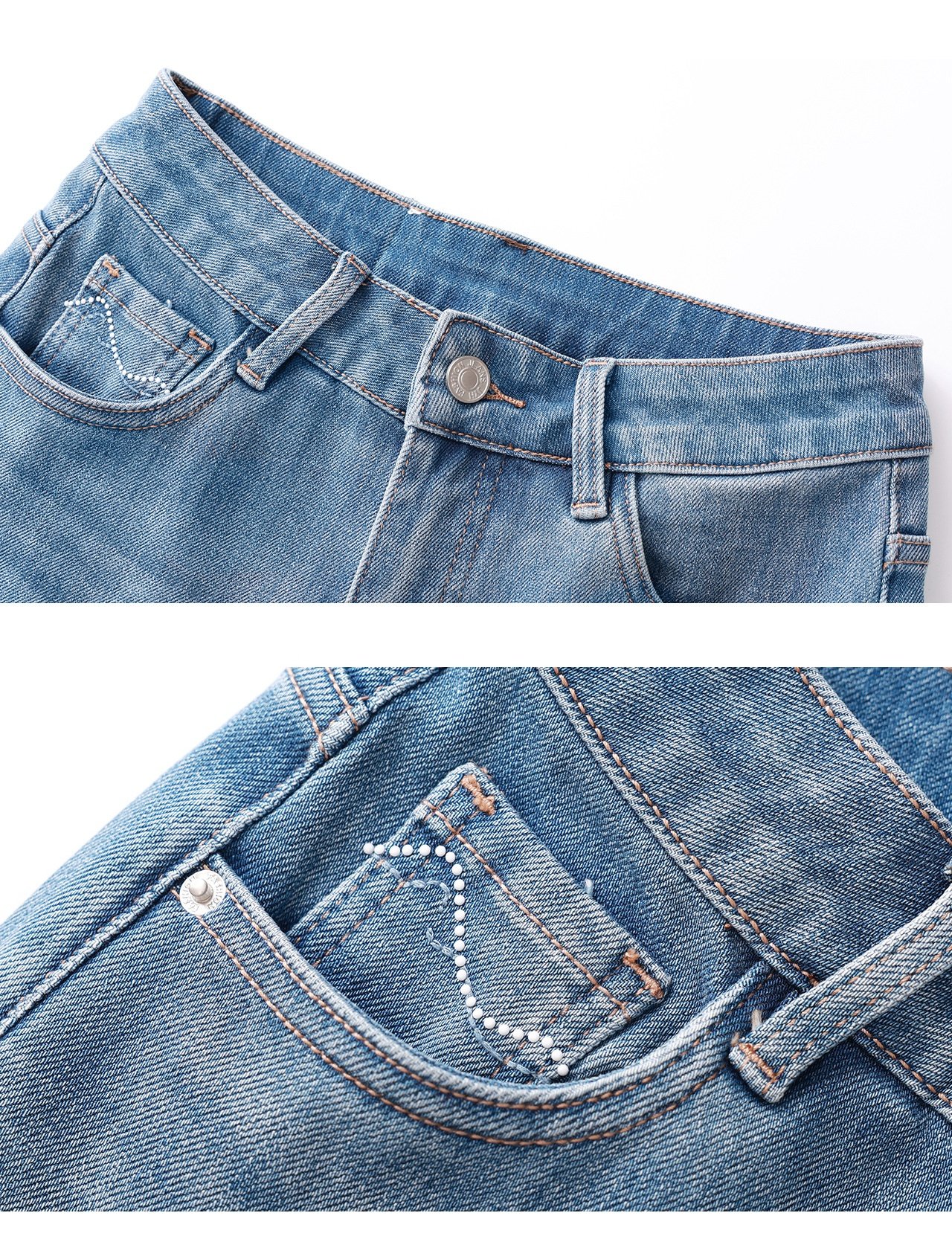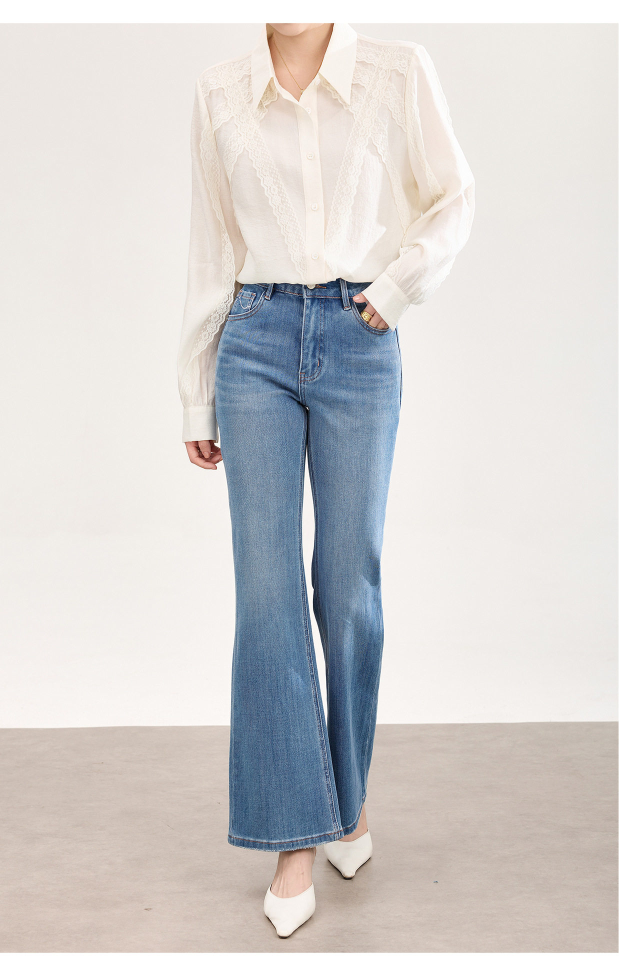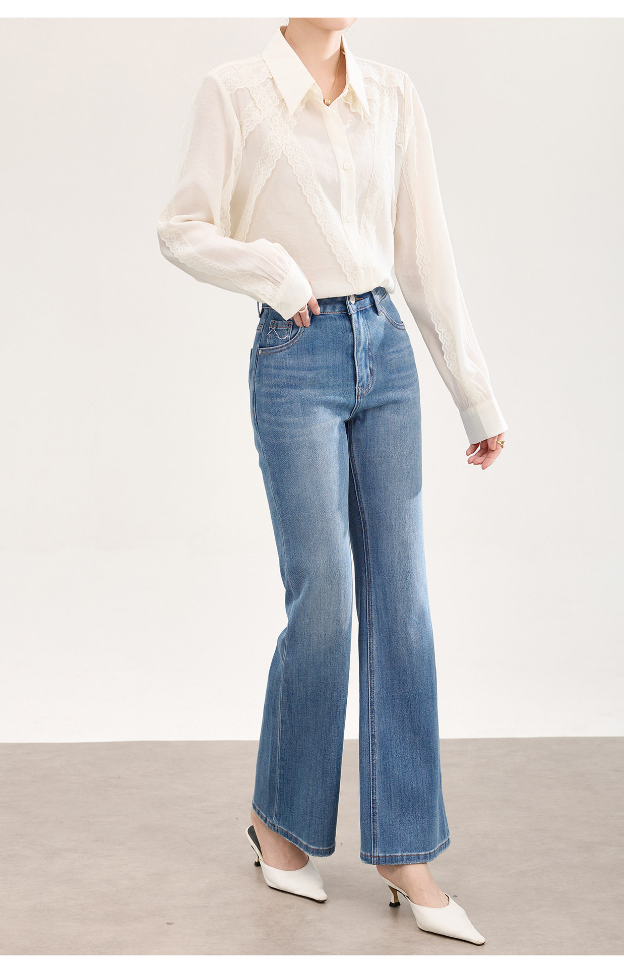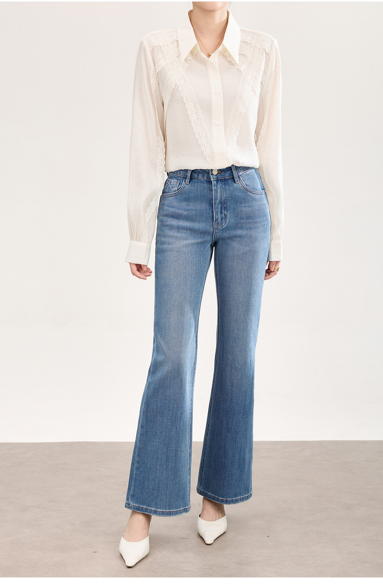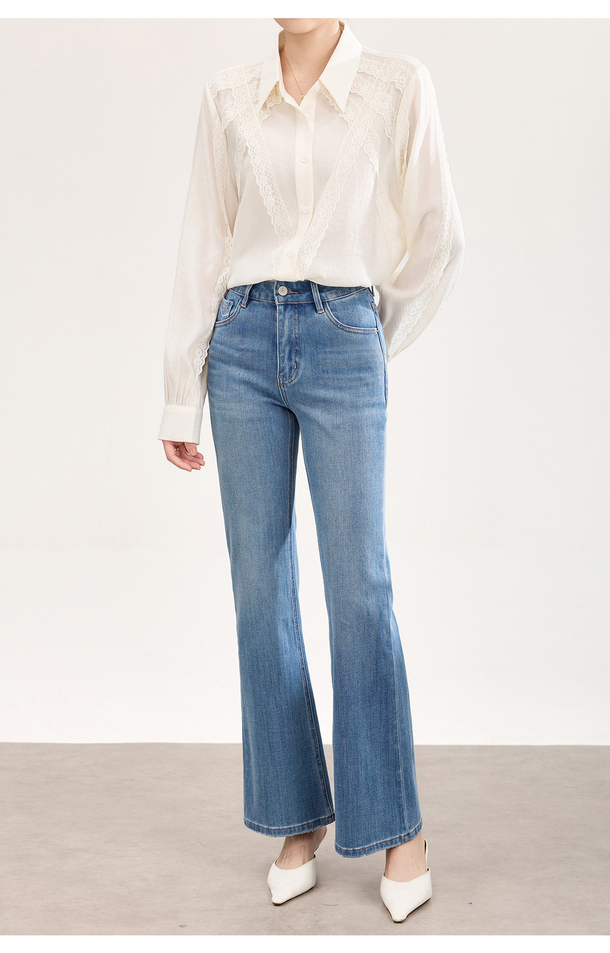 「高货wl」全新升级【铂金会员266/天猫359/差价93】(01002)洛诗琳2026春季新款高品质四面弹修身磨白天丝棉微喇牛仔裤